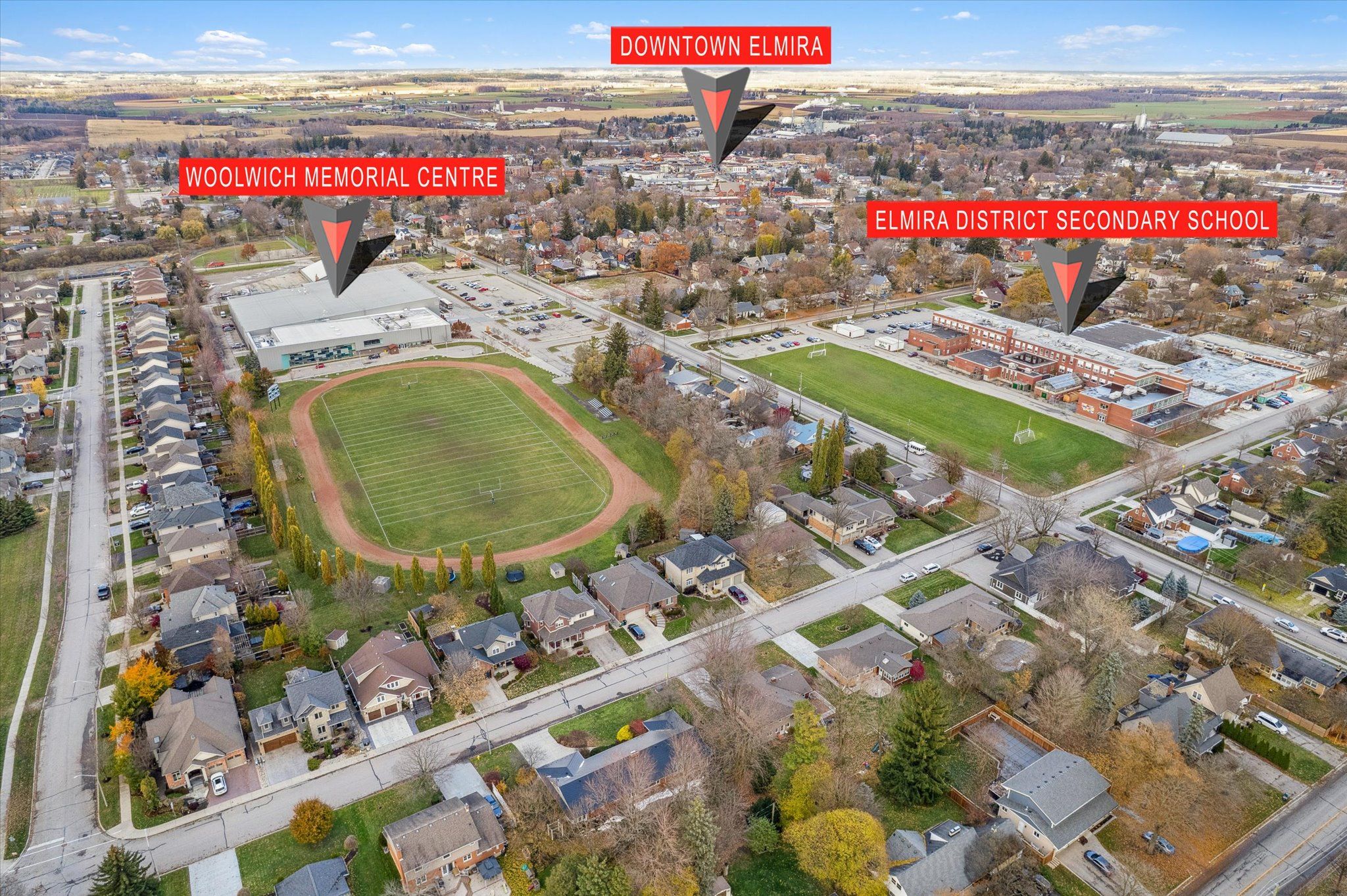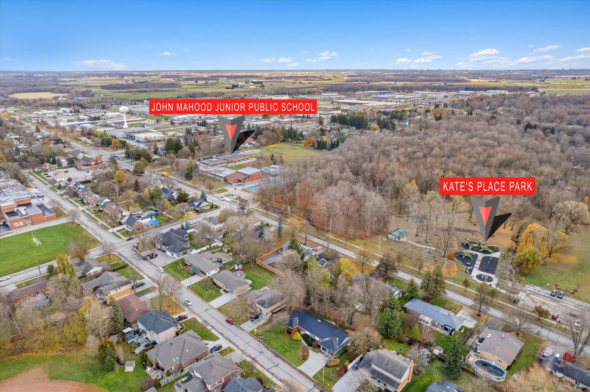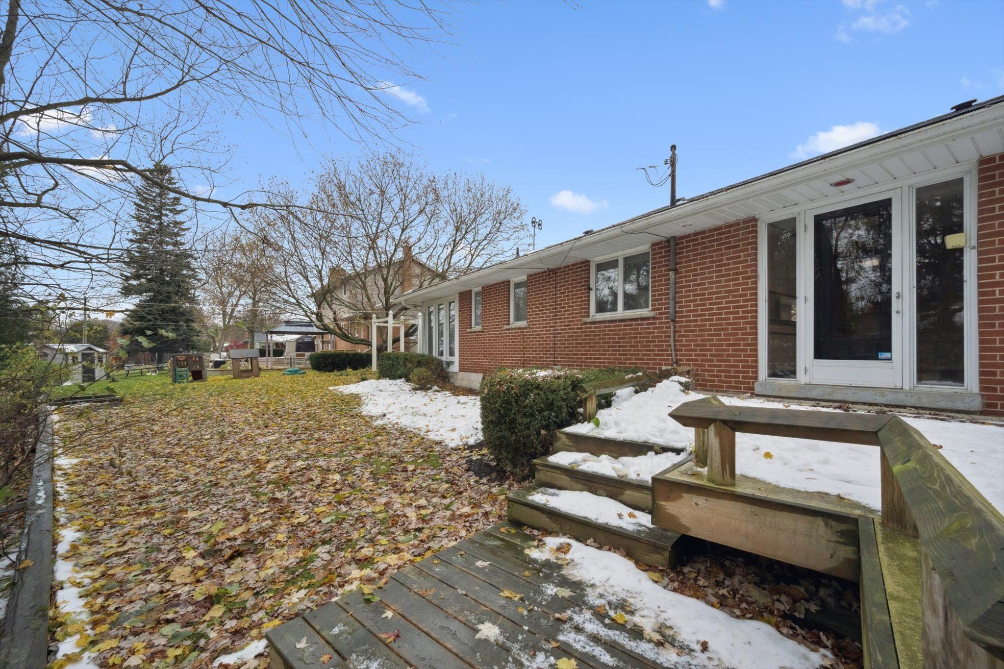Spacious all-brick bungalow in the heart of elmira. Set on a quiet, tree-lined street in elmira's welcoming community, this beautifully maintained all-brick bungalow offers the perfect mix of charm, space, and opportunity. Situated on a generous . 39-acre lot with 138 feet of frontage, this custom-built home has been lovingly cared for and is available for the very first time. Offering nearly 2,500 square feet on one level, this bright and open residence features 4 bedrooms, including a 3-piece ensuite, making it an ideal fit for a growing family or anyone seeking single-floor living. A large, inviting foyer welcomes you into the mid-century inspired layout, where the sunken living room impresses with oversized windows and a cozy wood-burning fireplace-a perfect gathering spot. The adjoining formal dining room adds an elegant touch for entertaining. At the heart of the home, the spacious family room with a 2nd fireplace and opens directly to the deck and private backyard, surrounded by mature trees for a serene, forest-like feel. The kitchen is functional as-is or ready for your personal updates and design vision. Additional features include a main-floor mudroom with laundry, a bright sunroom addition, and a massive unfinished basement with walk-up access to the garage-ideal for future development, an in-law suite, or extra living space. There's no shortage of storage. Located in a sought-after neighbourhood, you'll enjoy close proximity to schools, the community centre, kate's place park, local shops, and scenic trails-the best of small-town living just minutes from the city.