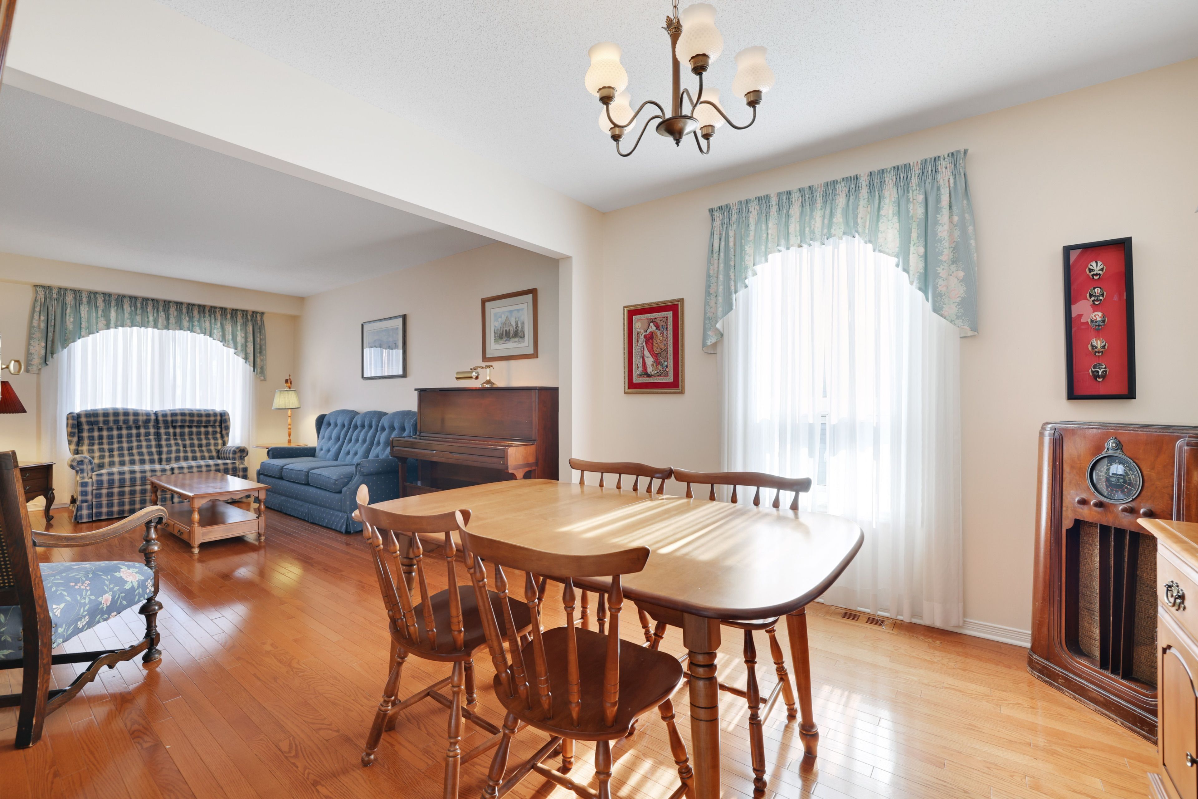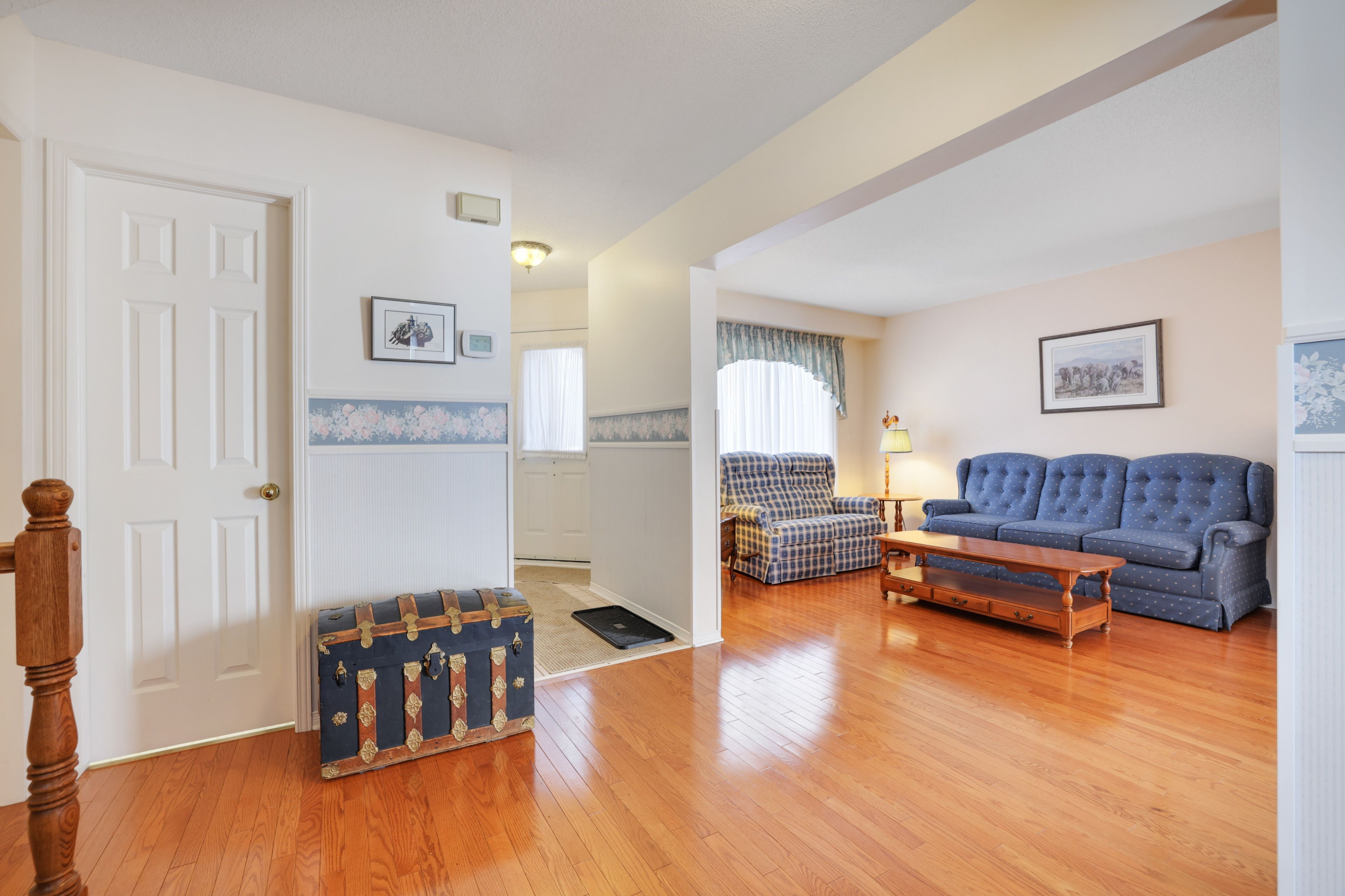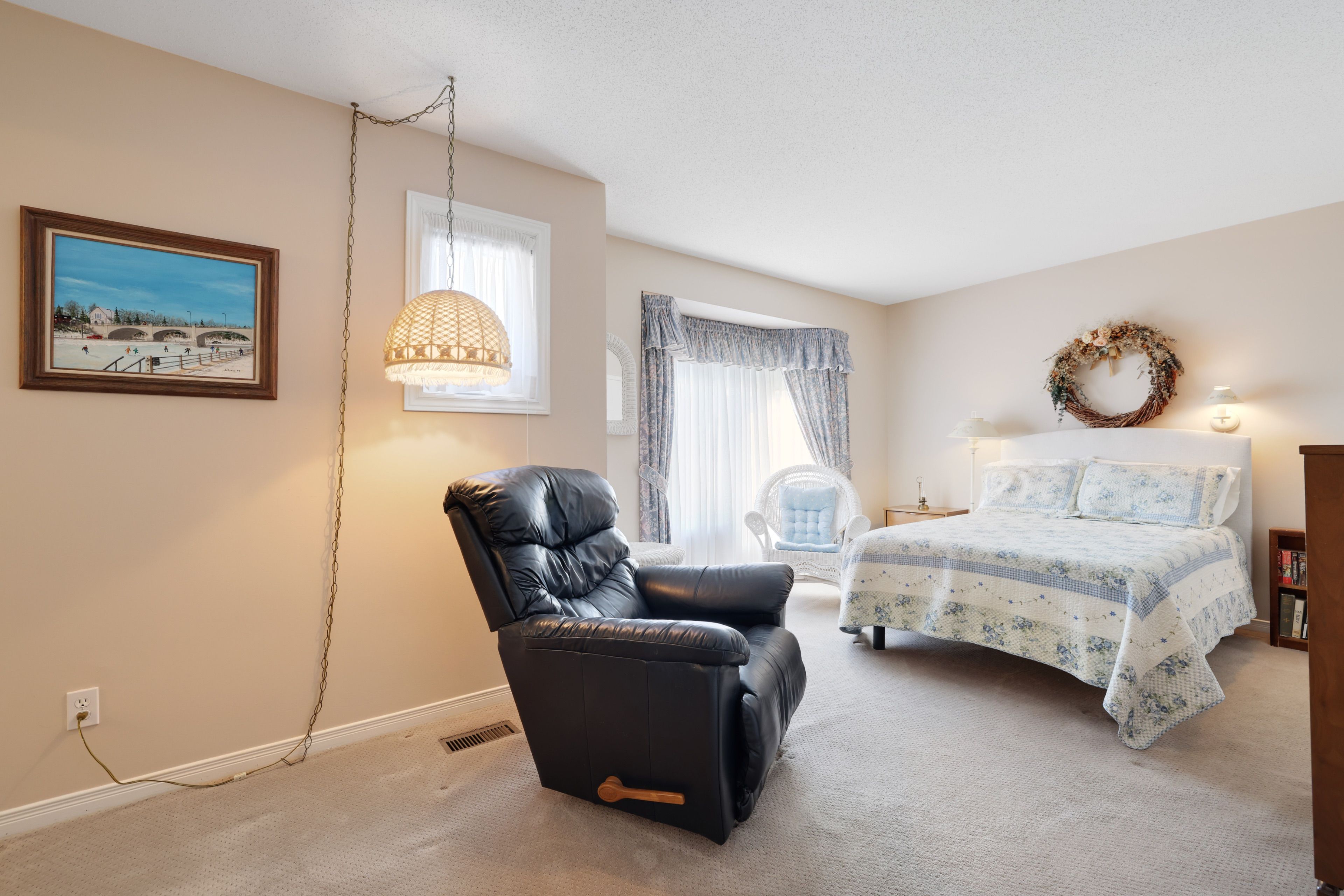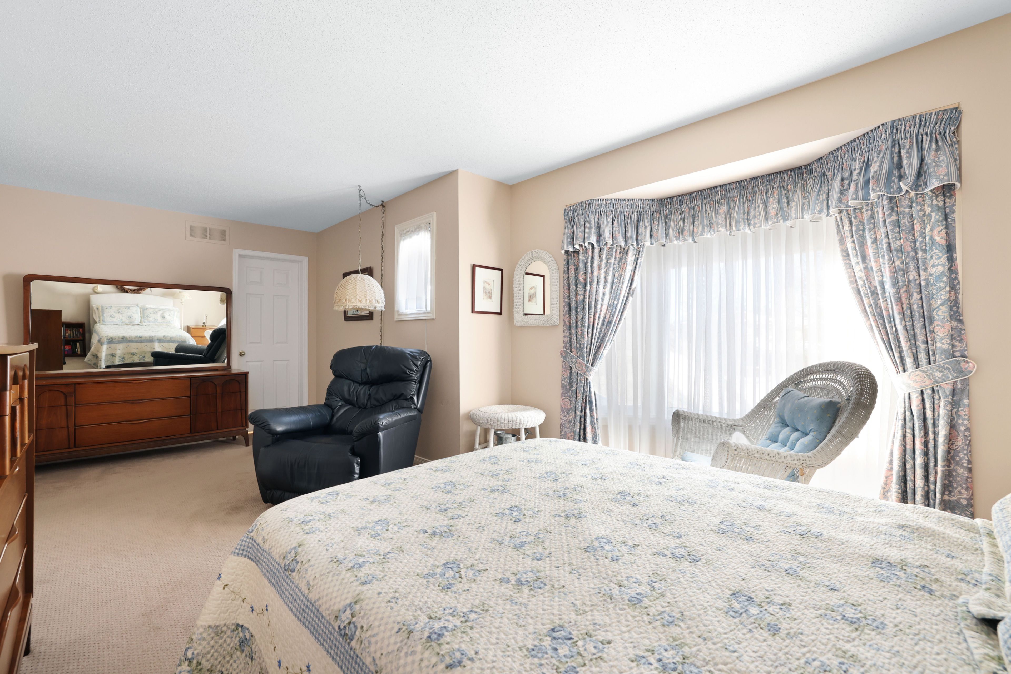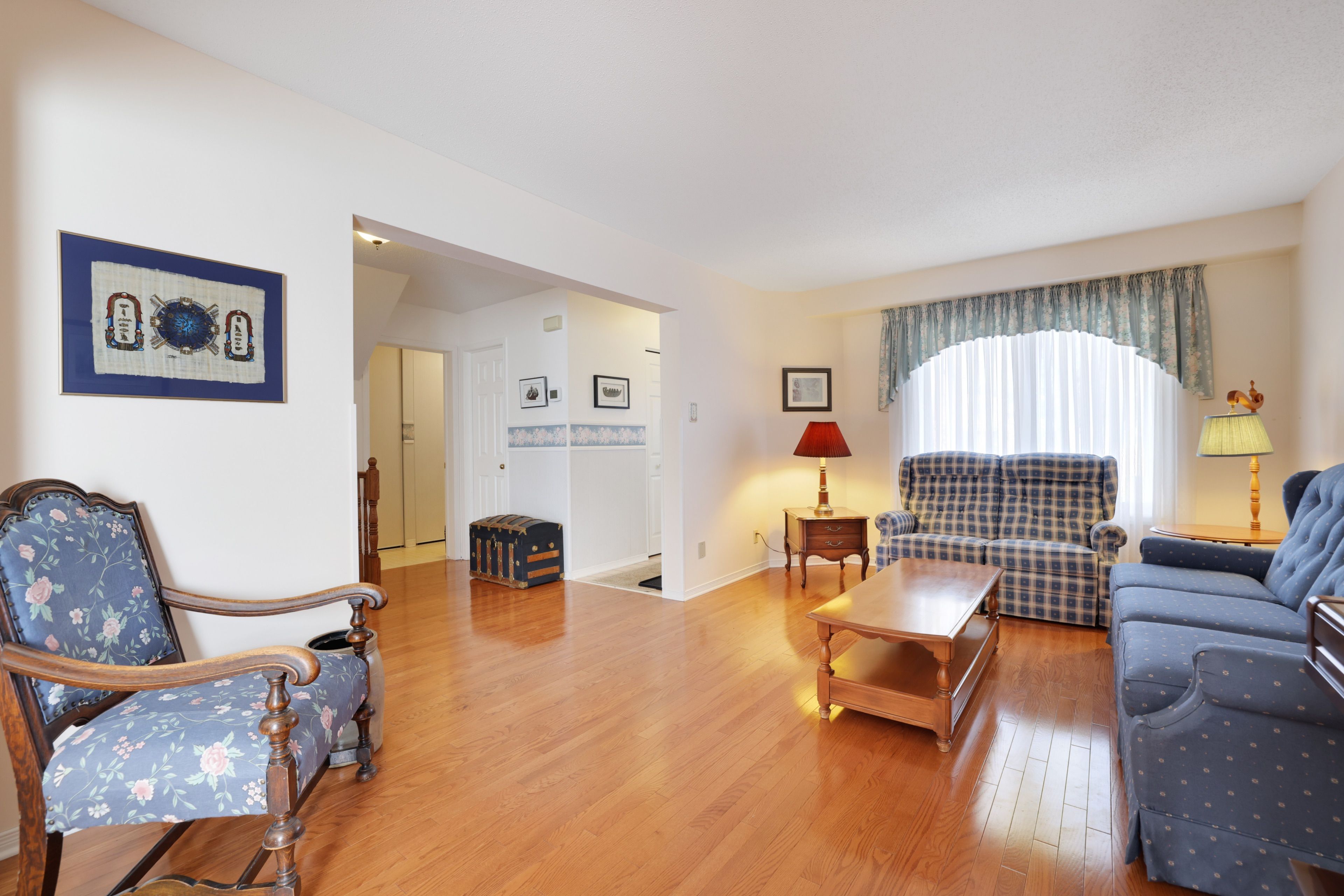 • Bright interior with large windows letting in natural light.