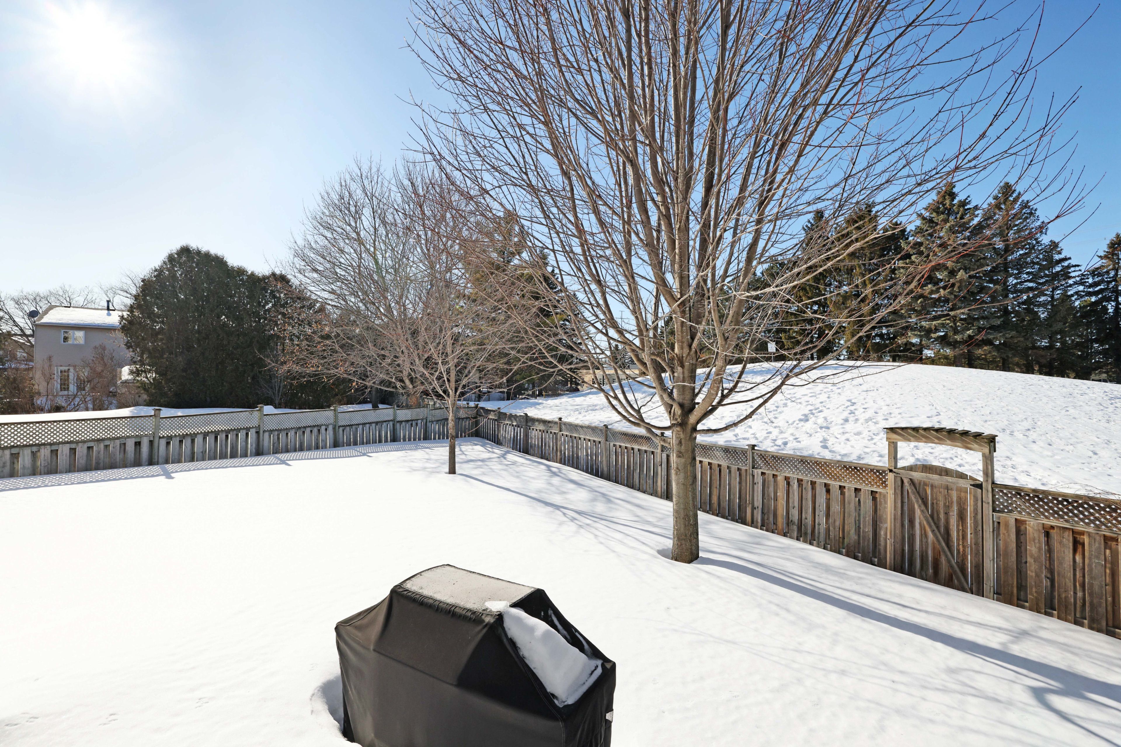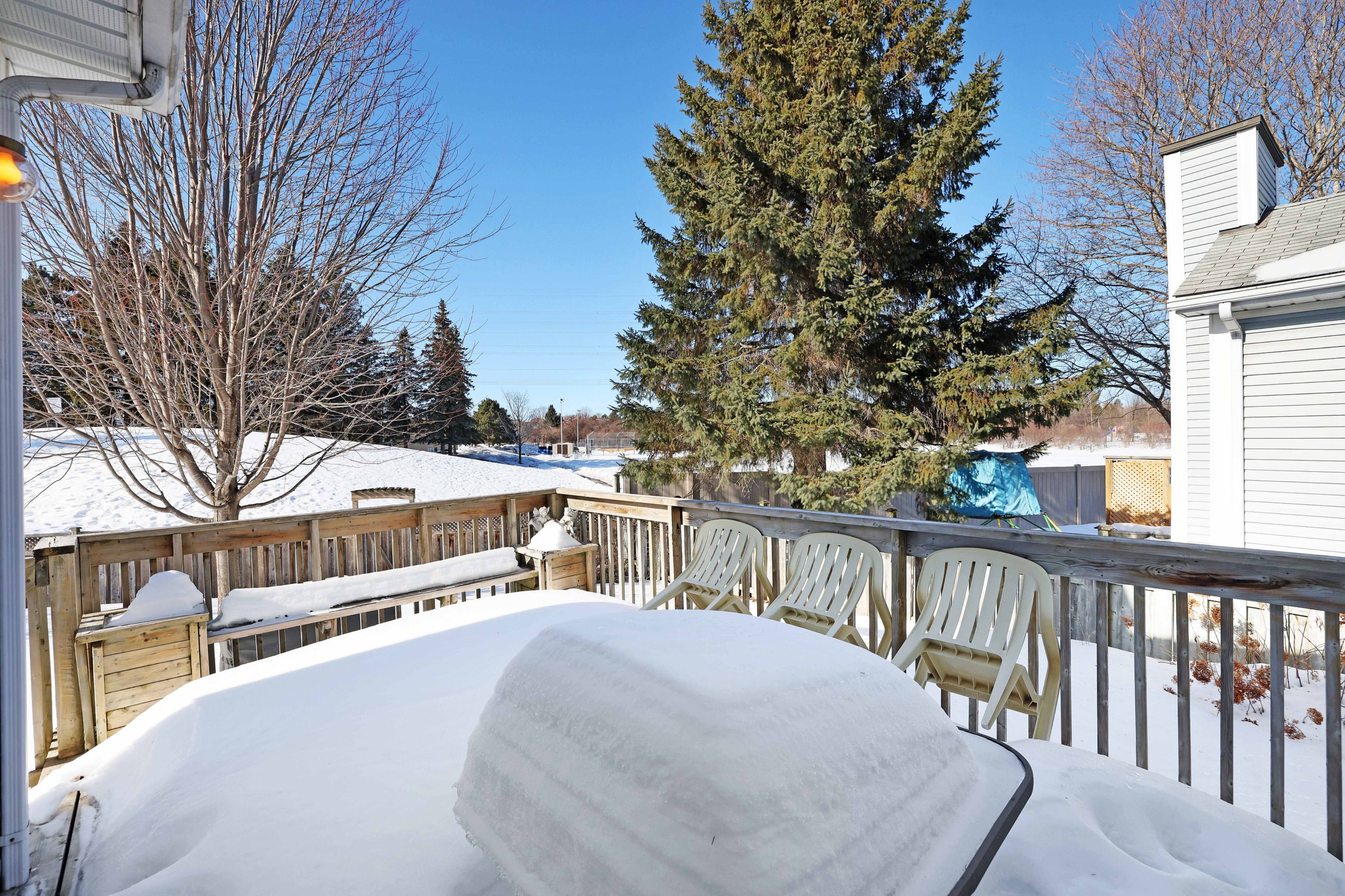 • Large pie-shaped backyard with a sunny deck for relaxation.