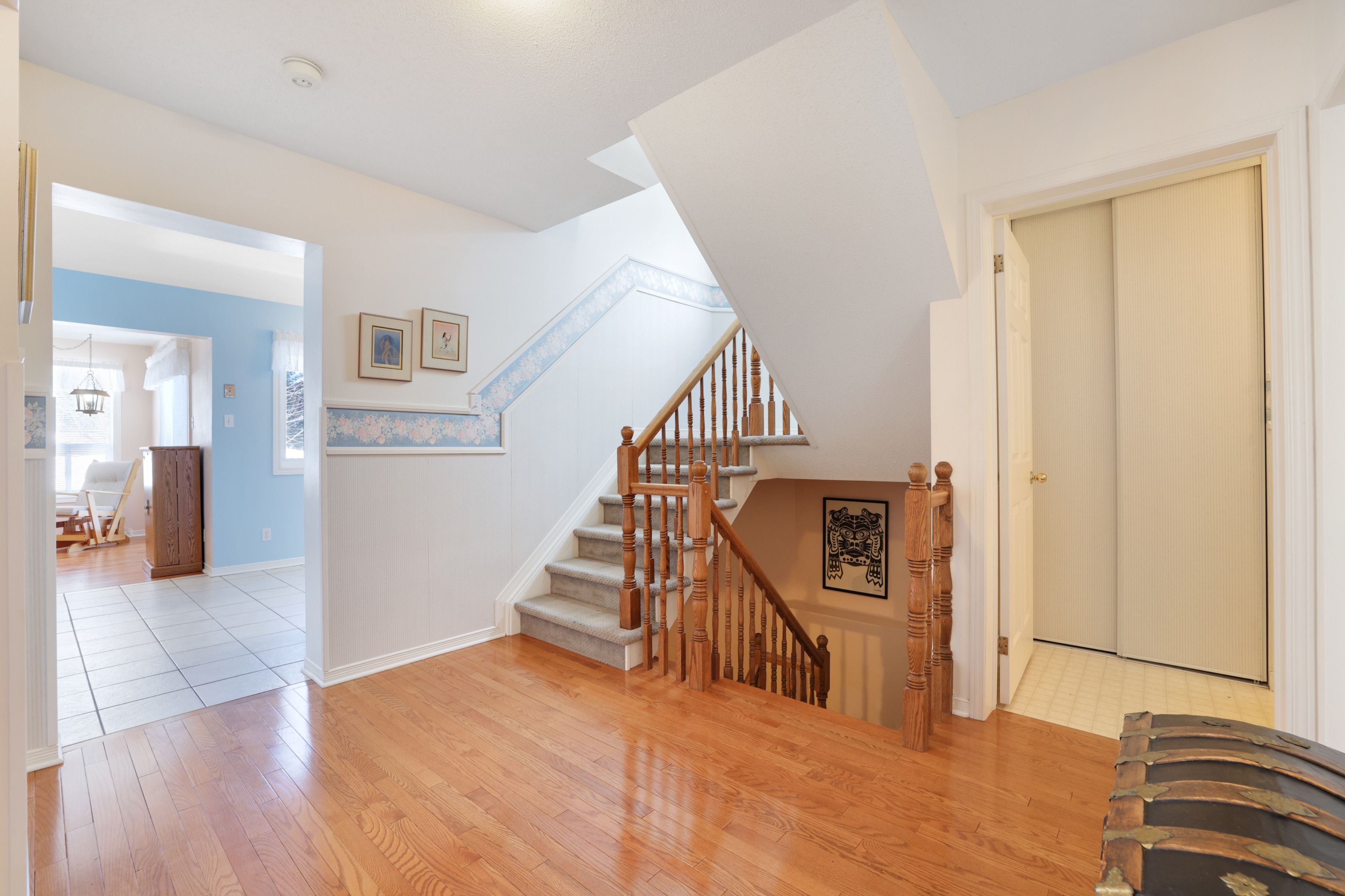 Excellent location for your family home. This very well maintained 3 bed 2 1/2 bath 2 storey home is situated on the curve of a quiet crescent, steps to bluegrass park, backing onto bridlewood elementary school and the park. Classic red brick facade with front door tucked into a sheltered corner is a welcoming entrance. Foyer leads to a main landing hall with access to living, dining & kitchen. Living & dining are open to one another for perfect entertaining space. The kitchen with ample cabinet space & solid surface counters is adjacent to the main floor family room which has access to the deck & backyard via patio doors. A 2 piece bathroom on the main level offers convenience for guests & every day living. There are hardwood floors & tile throughout this main level. Second level has a very large primary bedroom with a 4 piece ensuite, two additional bedrooms, and the main 4 piece bathroom. This bright home has large windows to bring in the natural light. Unspoiled basement is up to your imagination. Fenced, large pie shaped backyard has a sunny westerly view from the deck & the yard. Private views of the tree line behind the school & to the park. Your family will love the limited traffic on this crescent. Roof 2006, patio door 2010, windows vinyl clad 2011, furnace & ac 2011, hrv 2016, hwt (rental) 2022. Open house sunday 8th march 2-4pm.