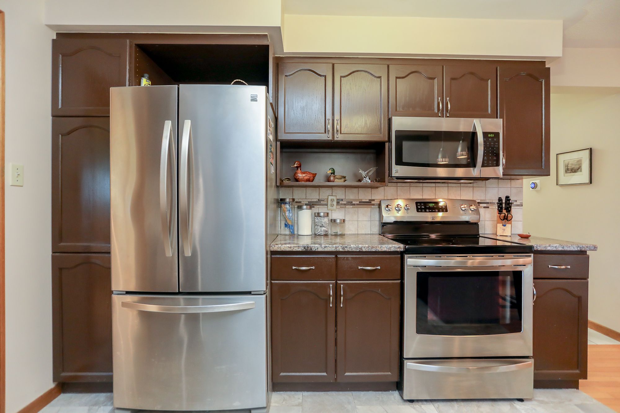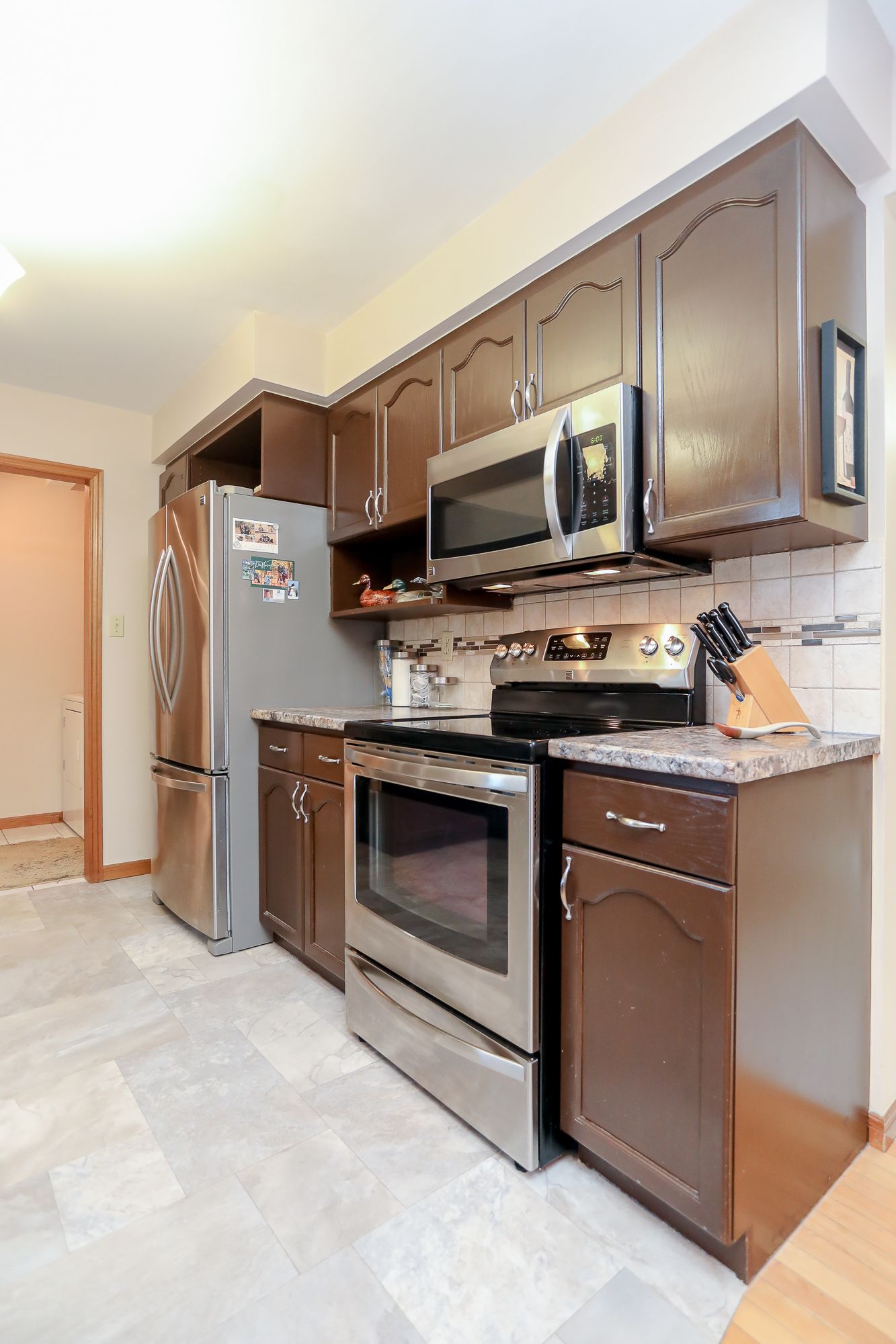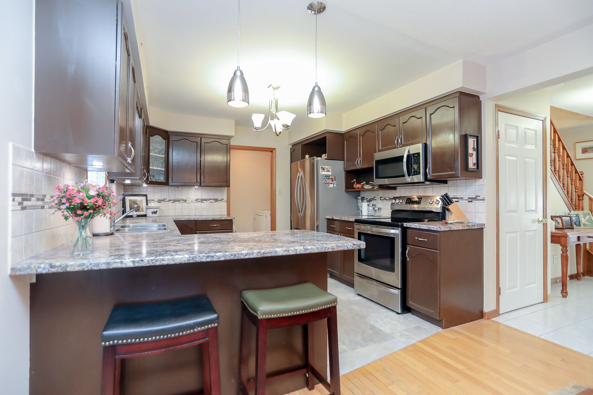 • Spacious eat-in kitchen with stainless steel appliances and ample cupboard space.