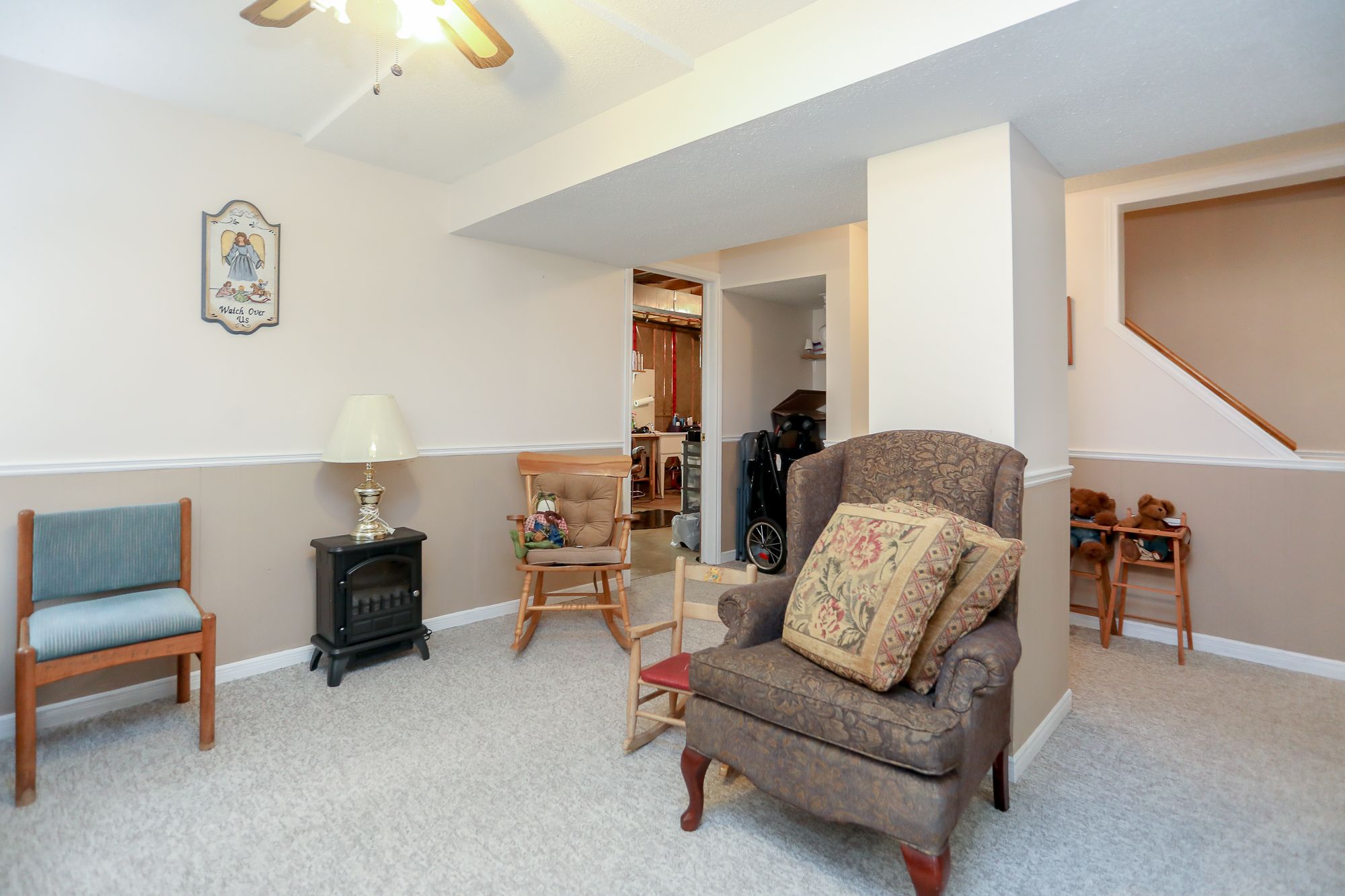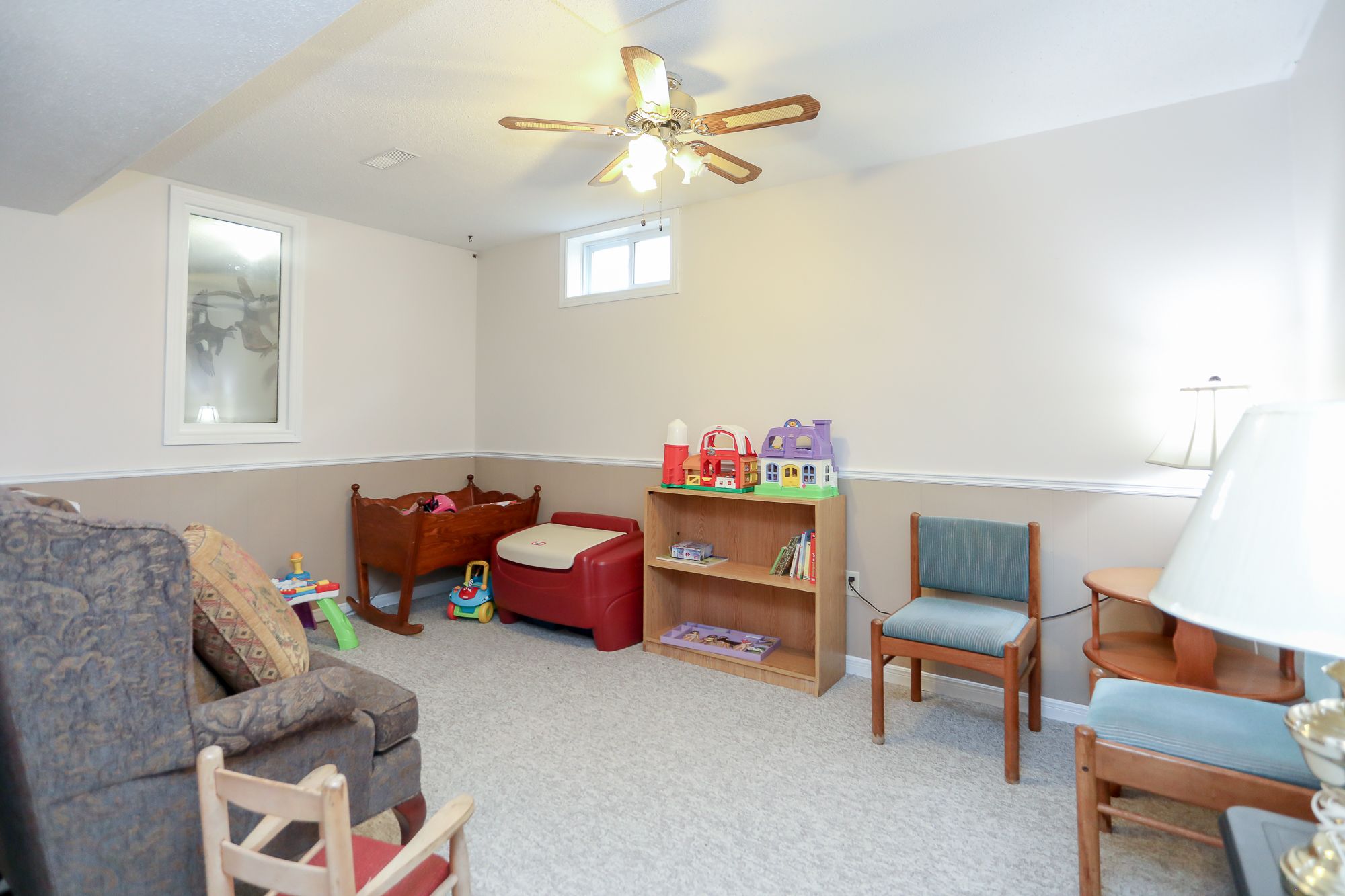 • Lower level includes family room and potential games room.