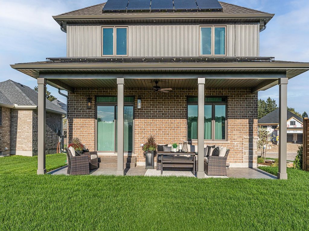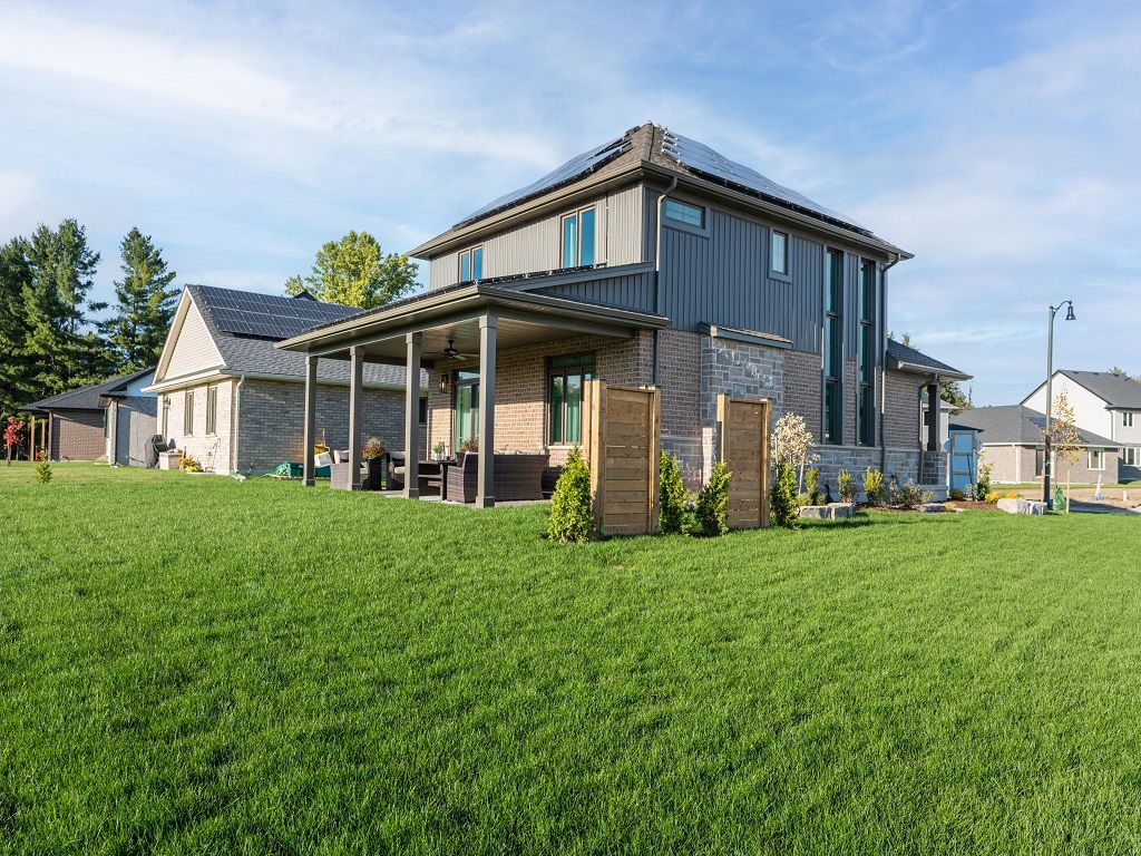 This doug tarry built net zero, all electric home, will wow you with stunning craftsmanship & energy efficiency features including solar panels. A net zero home is a house that produces as much energy as it consumes on an annual basis. That means over the course of a year, the home's energy production equals or exceeds its energy consumption. At 2,123 sq. Ft. This 2-storey home with completed lower level is designed with family in mind. The open concept main floor features a generous great room and dining area, and beautiful custom kitchen cabinetry and quartz countertops. The bold fireplace in the great room complements the modern but classic finishes. And step outside to the beautiful covered area complete with stamped concrete pad. The custom oak staircase with large windows leads you to the upper level, with 3 spacious bedrooms, 2 bathrooms and laundry closet. The basement is also finished with a full rec room and wet-bar perfect for entertaining. No detail is overlooked in this former model. Doug tarry is making it even easier to own your home! Reach out for more information regarding home buyer's promotions!!! Welcome home!