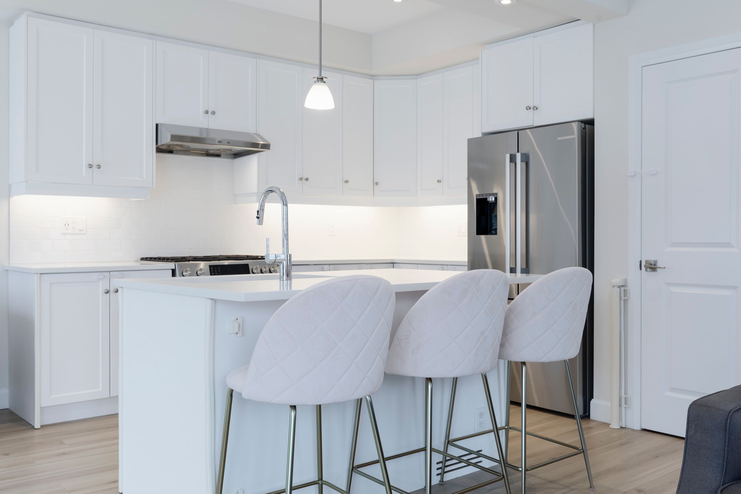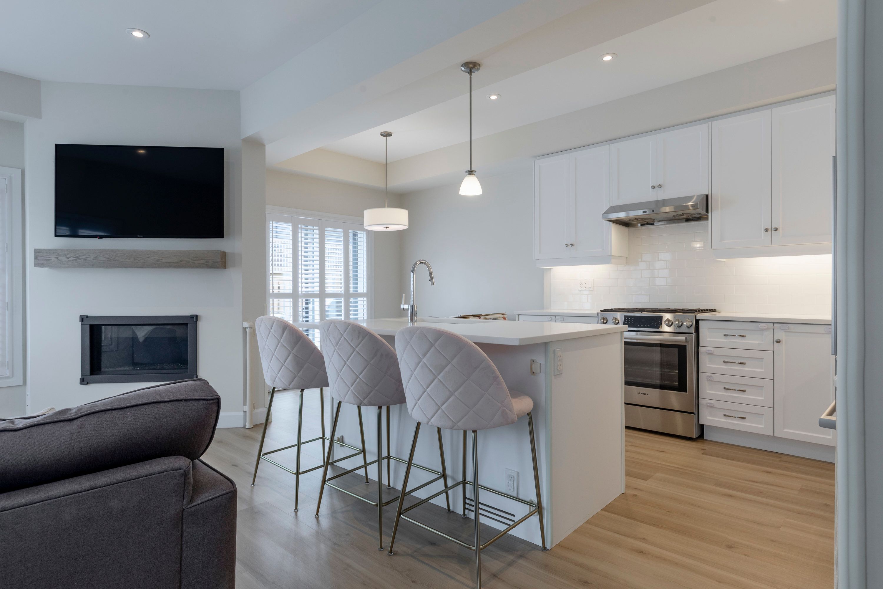 • Modern finishes include high-end appliances and elegant cabinetry.