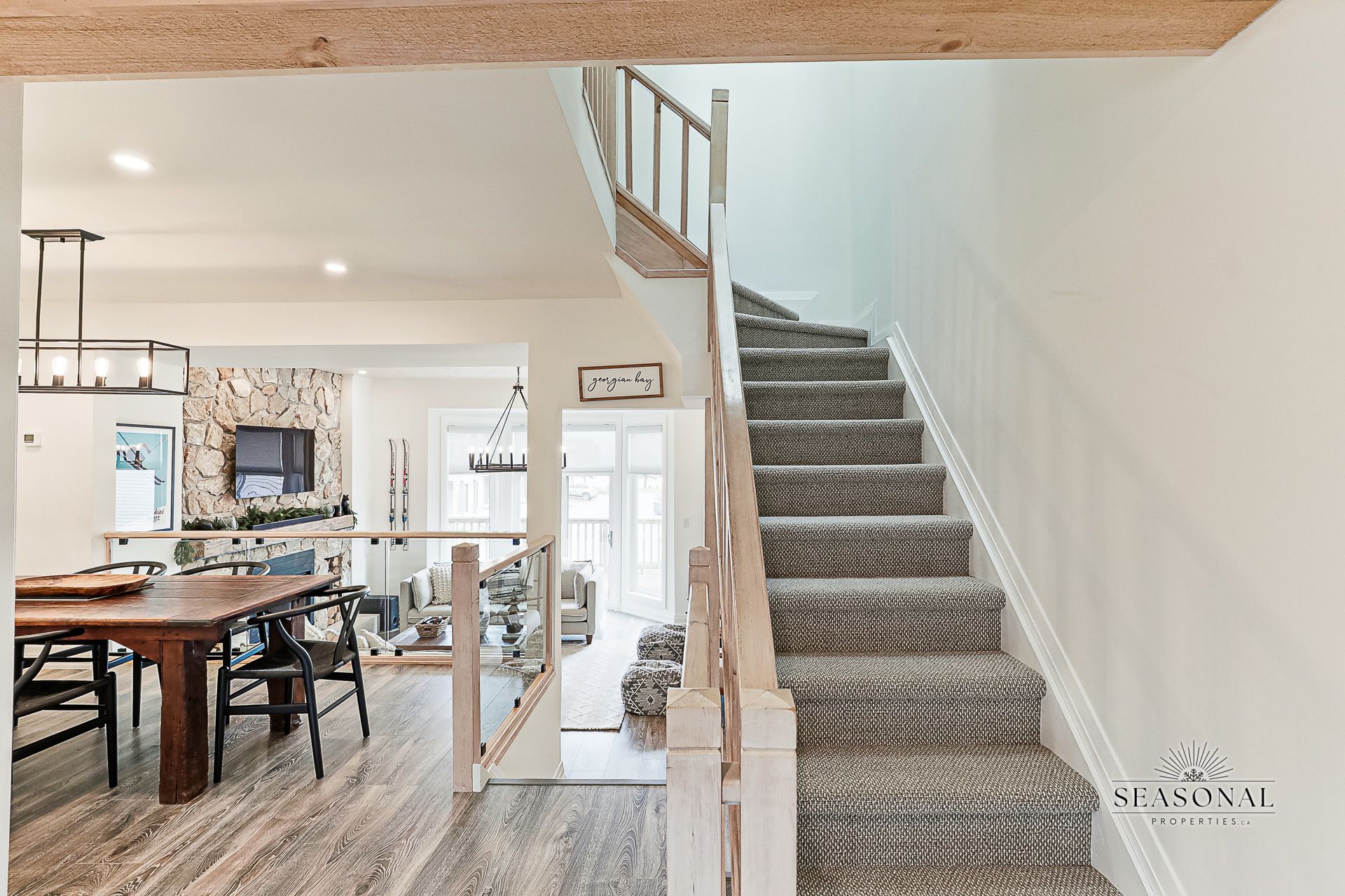 Waterfront furnished seasonal lease at dockside village. Set within the sought-after dockside community along collingwood's vibrant waterfront, this beautifully appointed three-bedroom townhome offers a seamless blend of coastal charm and modern seasonal living. Just steps from georgian bay, marinas, and scenic trails, this residence delivers an effortless lifestyle where morning walks along the shoreline and evenings in downtown collingwood become part of everyday life. Inside, the fully renovated open-concept design welcomes natural light throughout the main living space. High-end finishes define the home, including a stunning gas fireplace with a stone surround, wood ceilings with potlights, and a modern glass-railing staircase. The thoughtfully designed kitchen features new countertops and flows into the dining area-ideal for relaxed entertaining after a day exploring the mountains or bay. Modern convenience is a priority here, featuring a newly installed electric vehicle (ev) charger, ensuring your car is ready for every excursion across the region. The lifestyle at dockside is further enhanced by exceptional amenities, offering residents exclusive access to a private beach, professional-grade tennis courts, and a refreshing saltwater pool. With the addition of brand-new air conditioning, updated flooring, and designer lighting, every detail has been curated for comfort. Positioned minutes from blue mountain village and a thriving culinary scene, this residence allows guests to live like locals while embracing the rhythm of the region. This premium seasonal lease is offered at an all-inclusive list price, covering all utilities for a worry-free stay. The property is available for the spring, summer, or fall seasons. Lease terms require 50% of the total lease due upon signing, with the remaining 50% due prior to move-in. $3,000 damage/last cleaning deposit. Experience collingwood through a lens of comfort and elevated seasonal design.