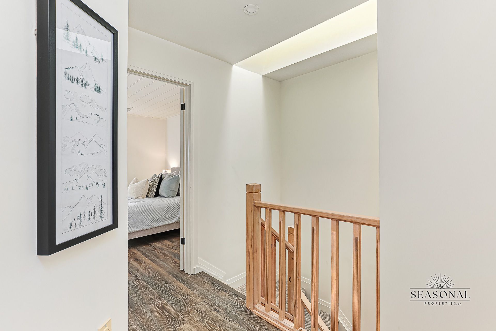 • High-end finishes include a gas fireplace and modern glass-railing staircase.