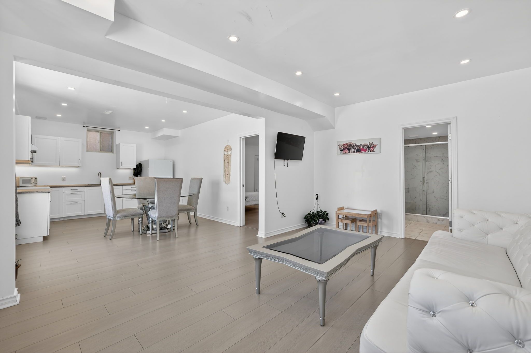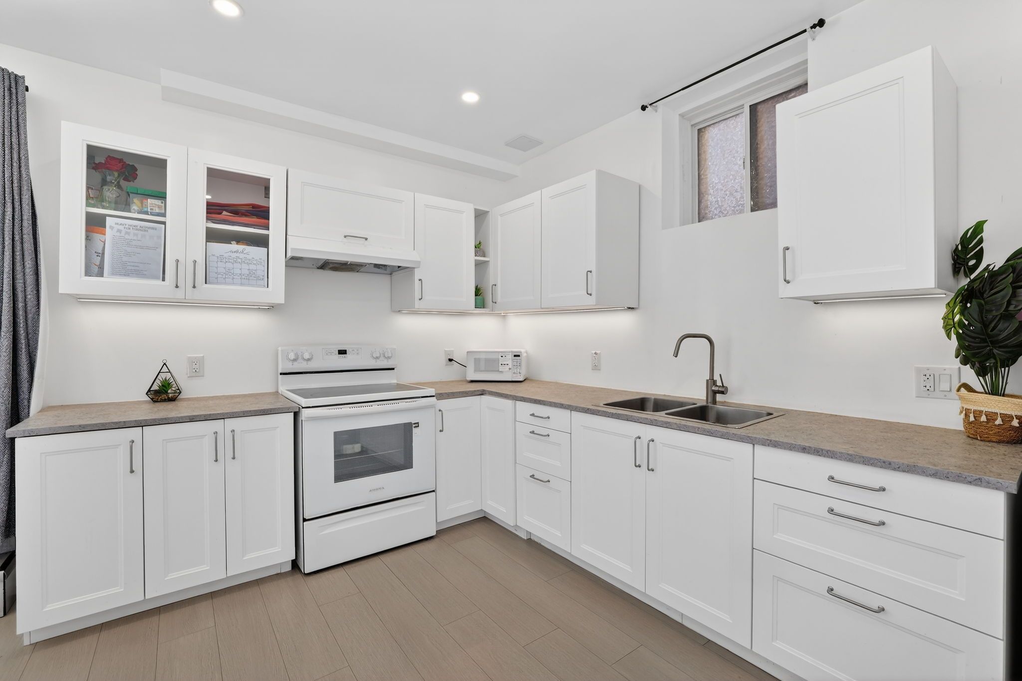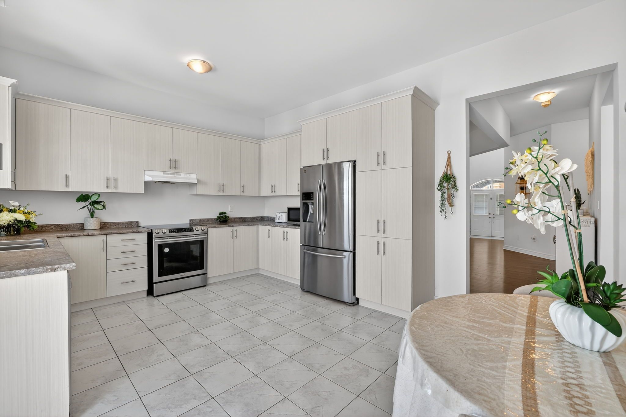 • Spacious family kitchen with stainless steel appliances and pantry storage.