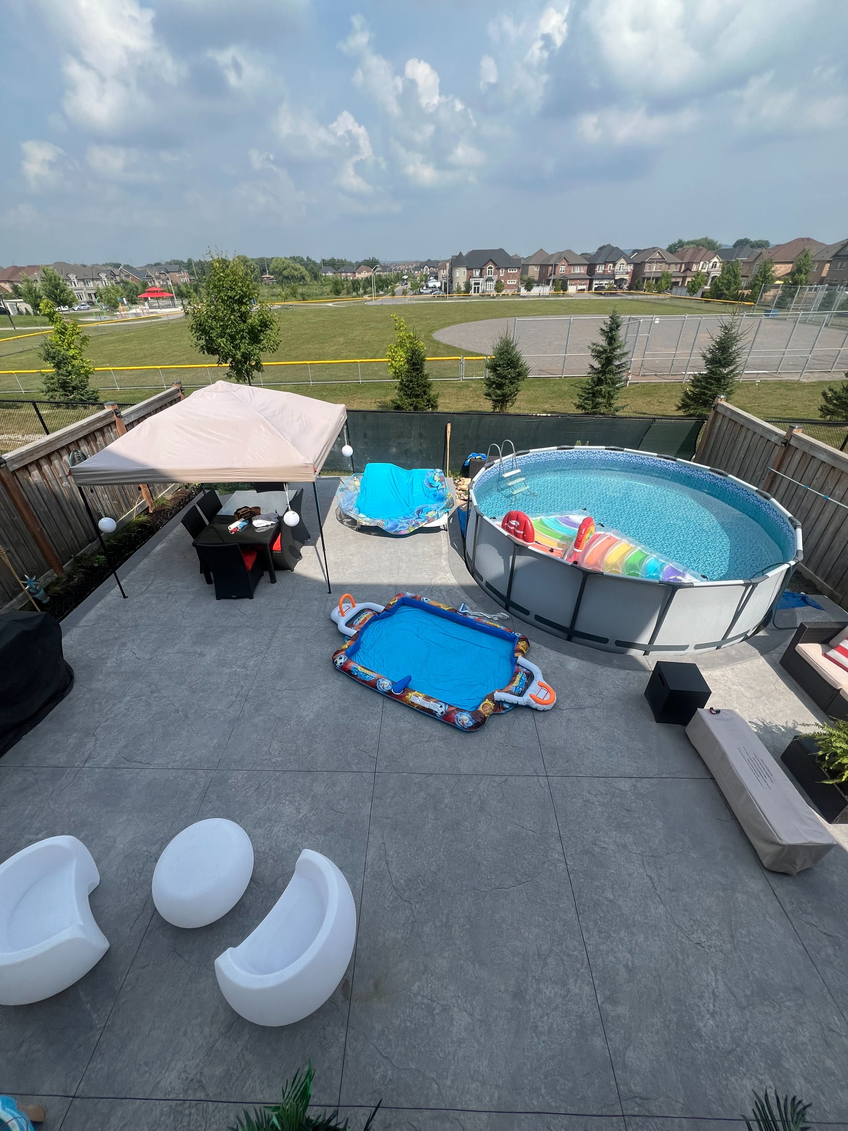 • Fully fenced backyard backing onto a park with no rear neighbors.