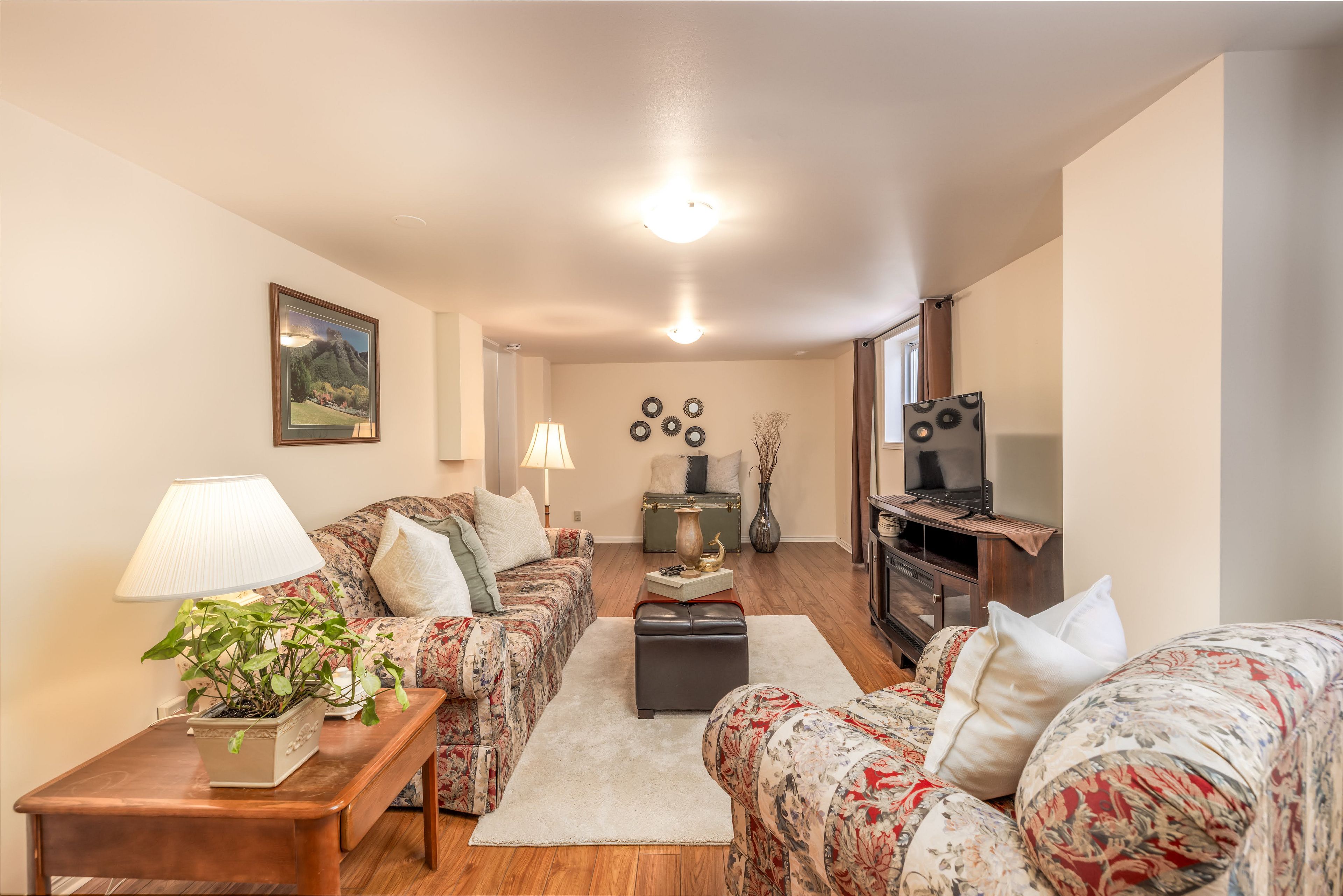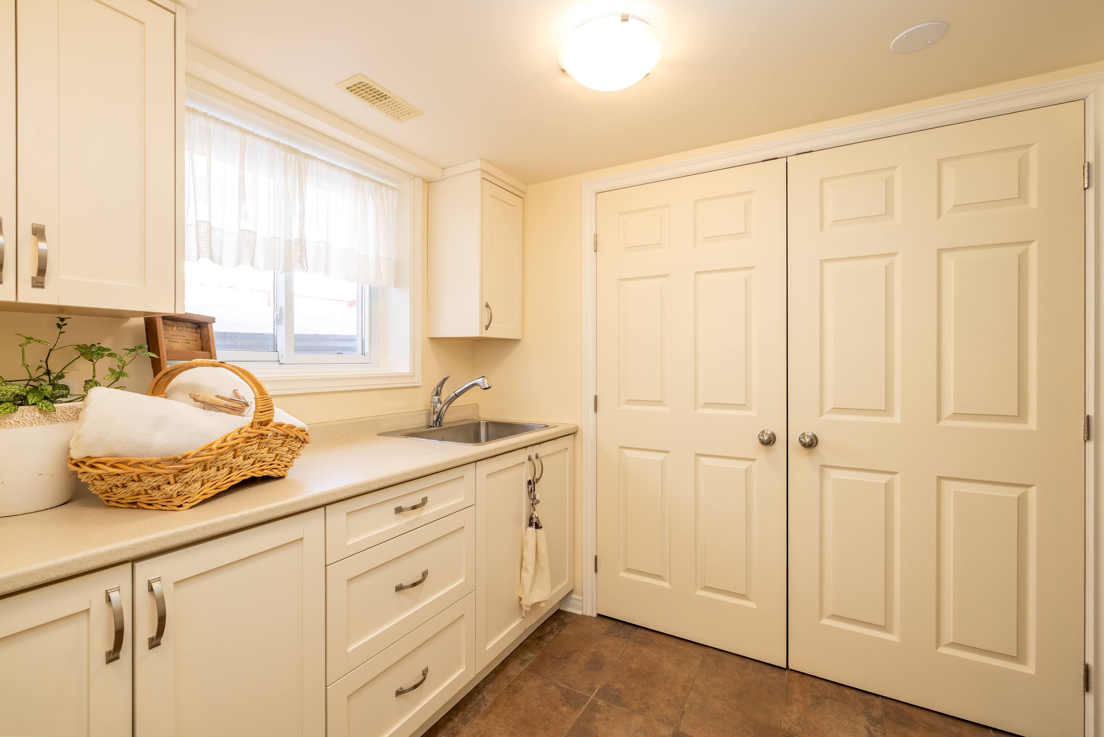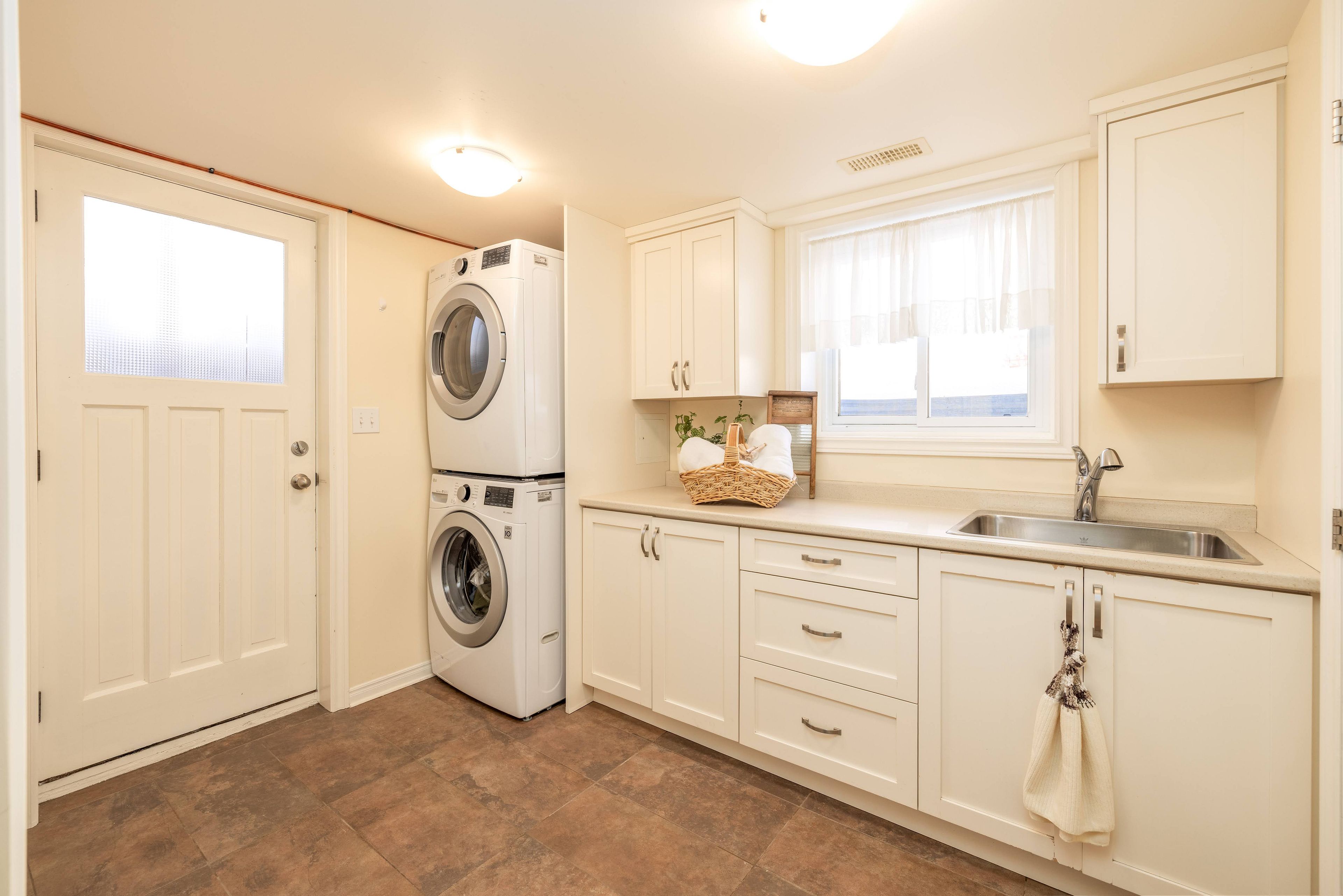 • Finished lower level offers laundry room and potential for in-law suite or rental.