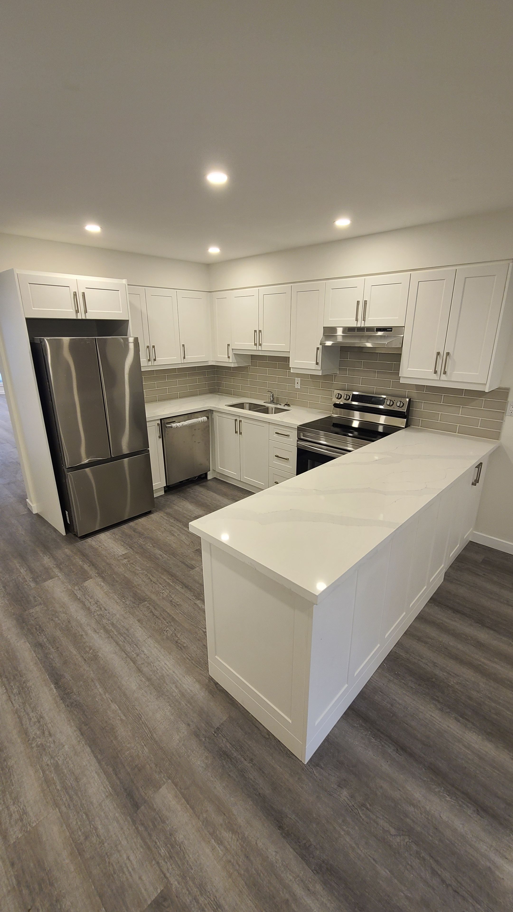 • Modern kitchen with stainless steel appliances and backyard access.