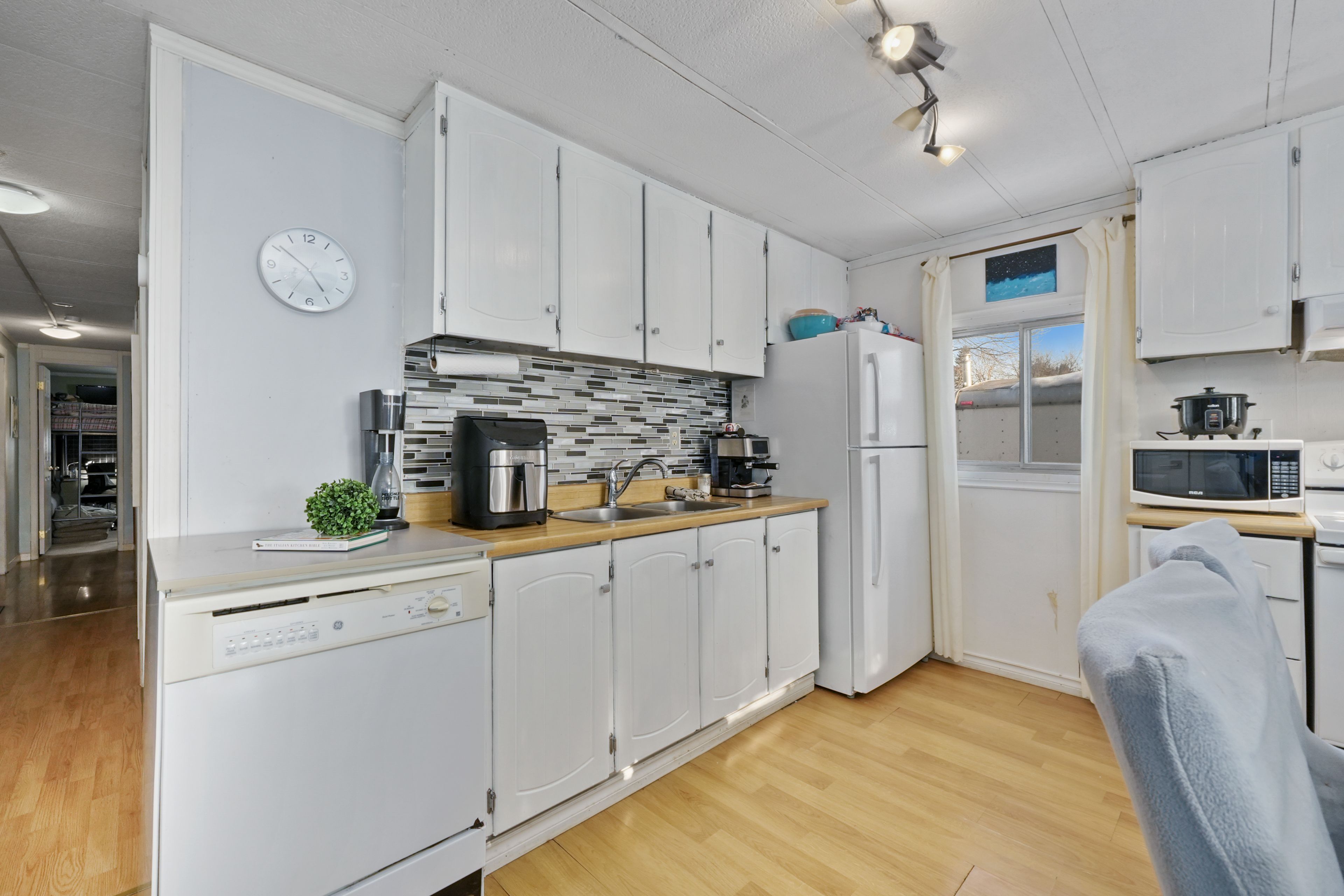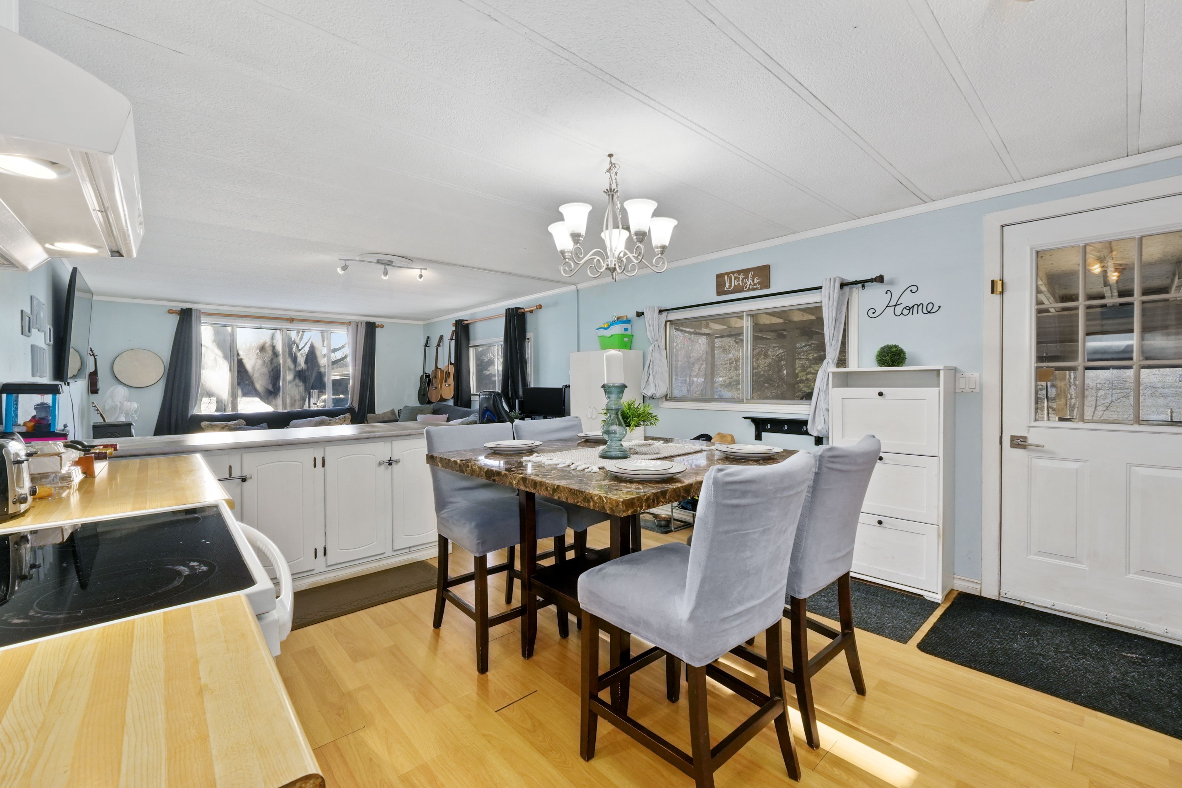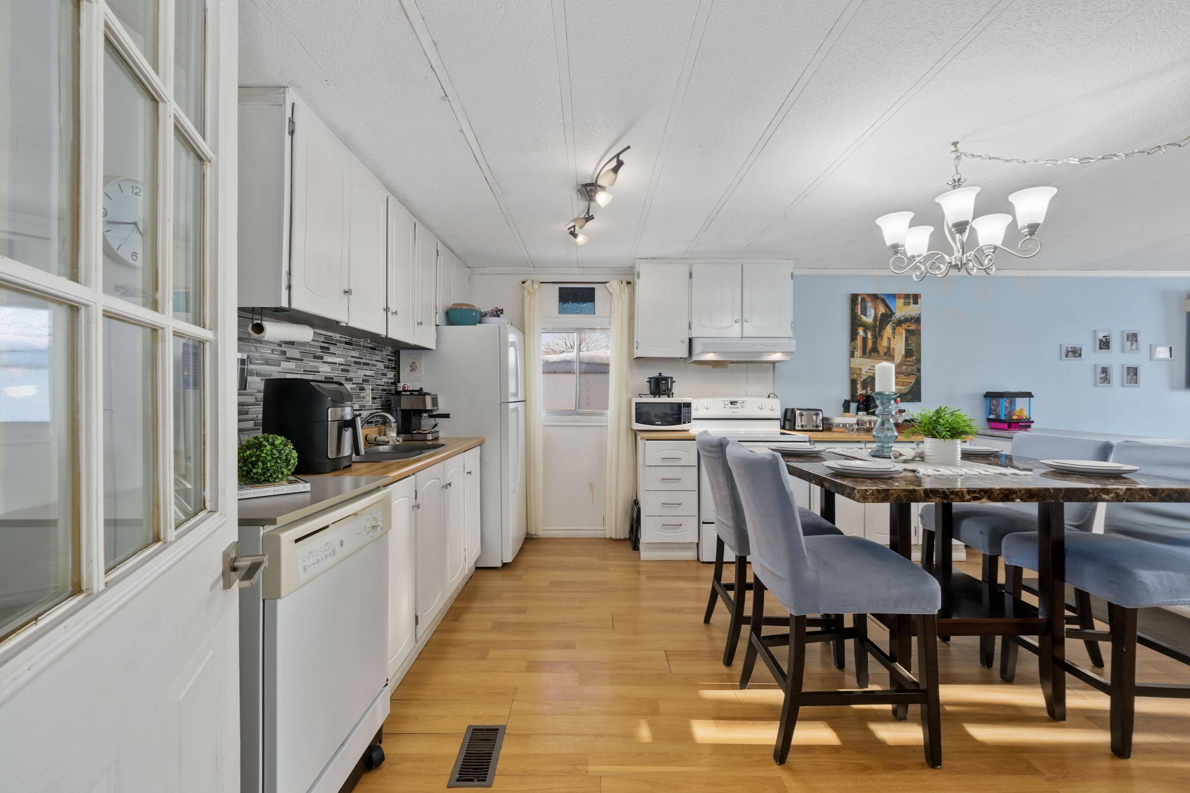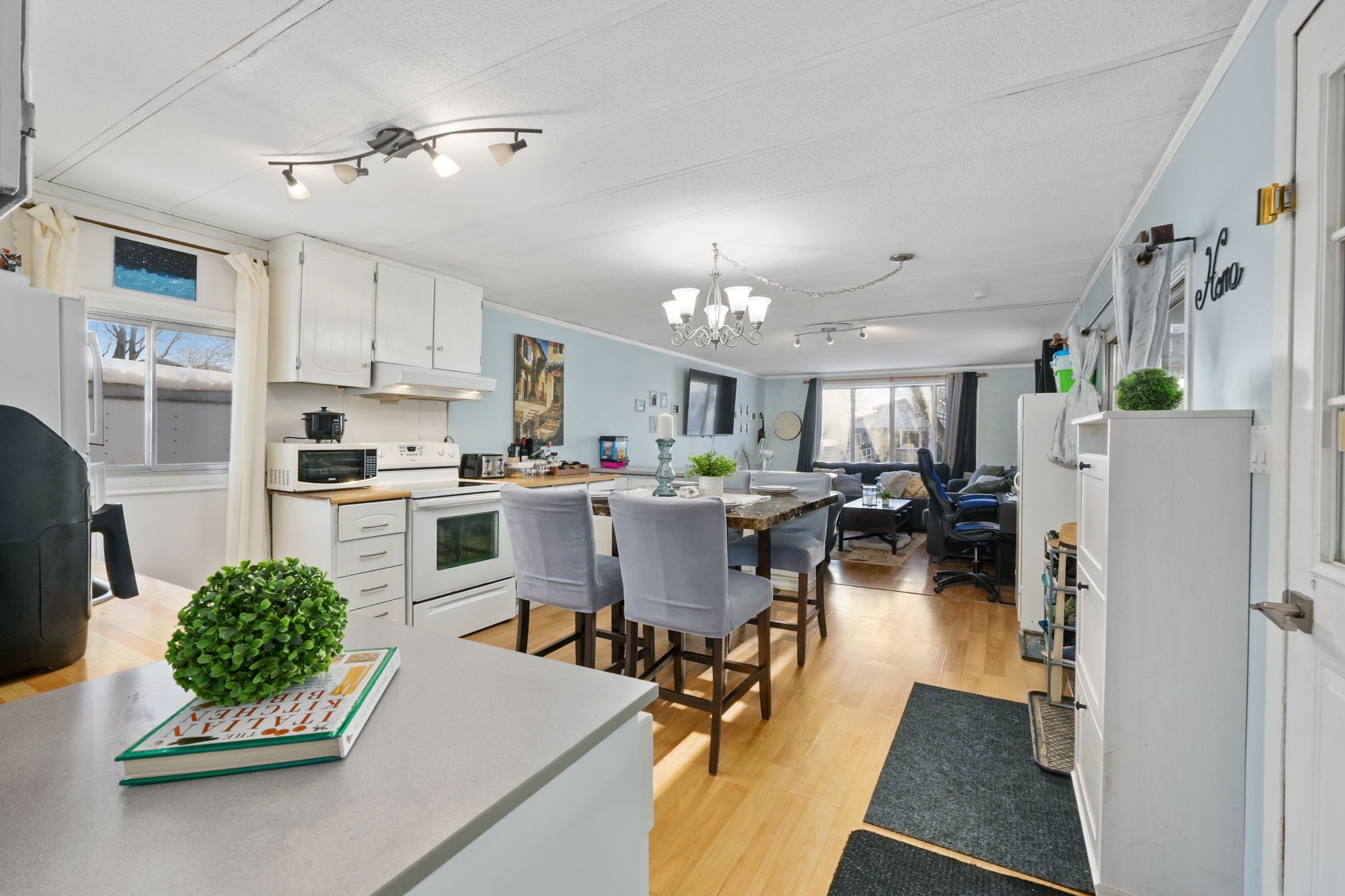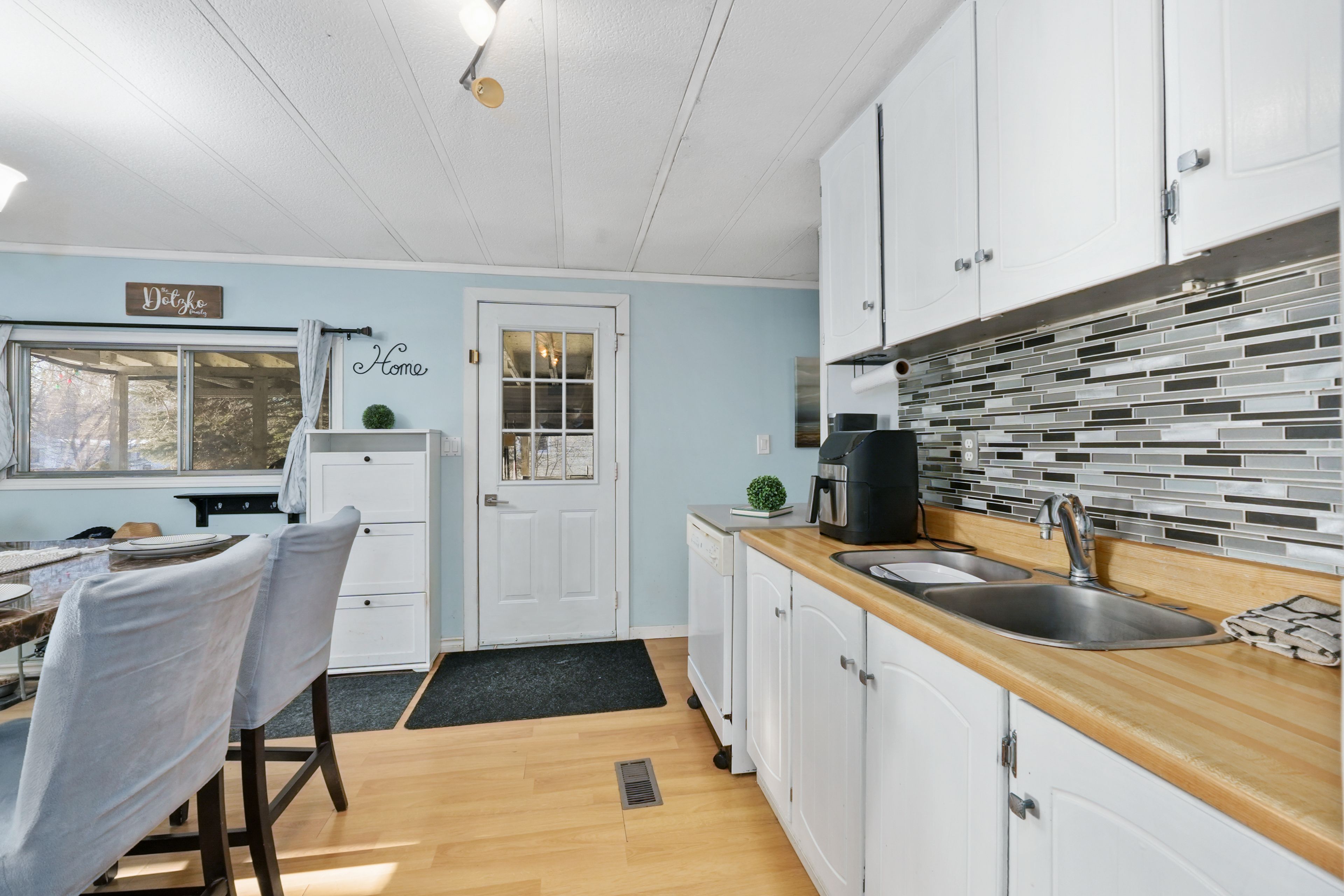 Affordable living in the cobourg area with the ease of one level living. This home features an open principal living space with a carpet free layout and a bright, functional design. The well appointed eat in kitchen offers matching appliances and flows into the living area, where two large windows bring in plenty of natural light. The home includes three bedrooms, a full bathroom, plus flexible additional spaces with a den and office to suit a variety of needs. The den offers a walkout to the yard, creating an easy connection to the outdoor space. Convenient laundry adds to the practical layout. Step outside to enjoy both a large covered deck and an additional open back deck overlooking the fully fenced yard with ample green space for relaxing, gardening, or entertaining. Located close to local amenities and offering easy access to highway 401, this property offers comfortable living in a convenient location.
