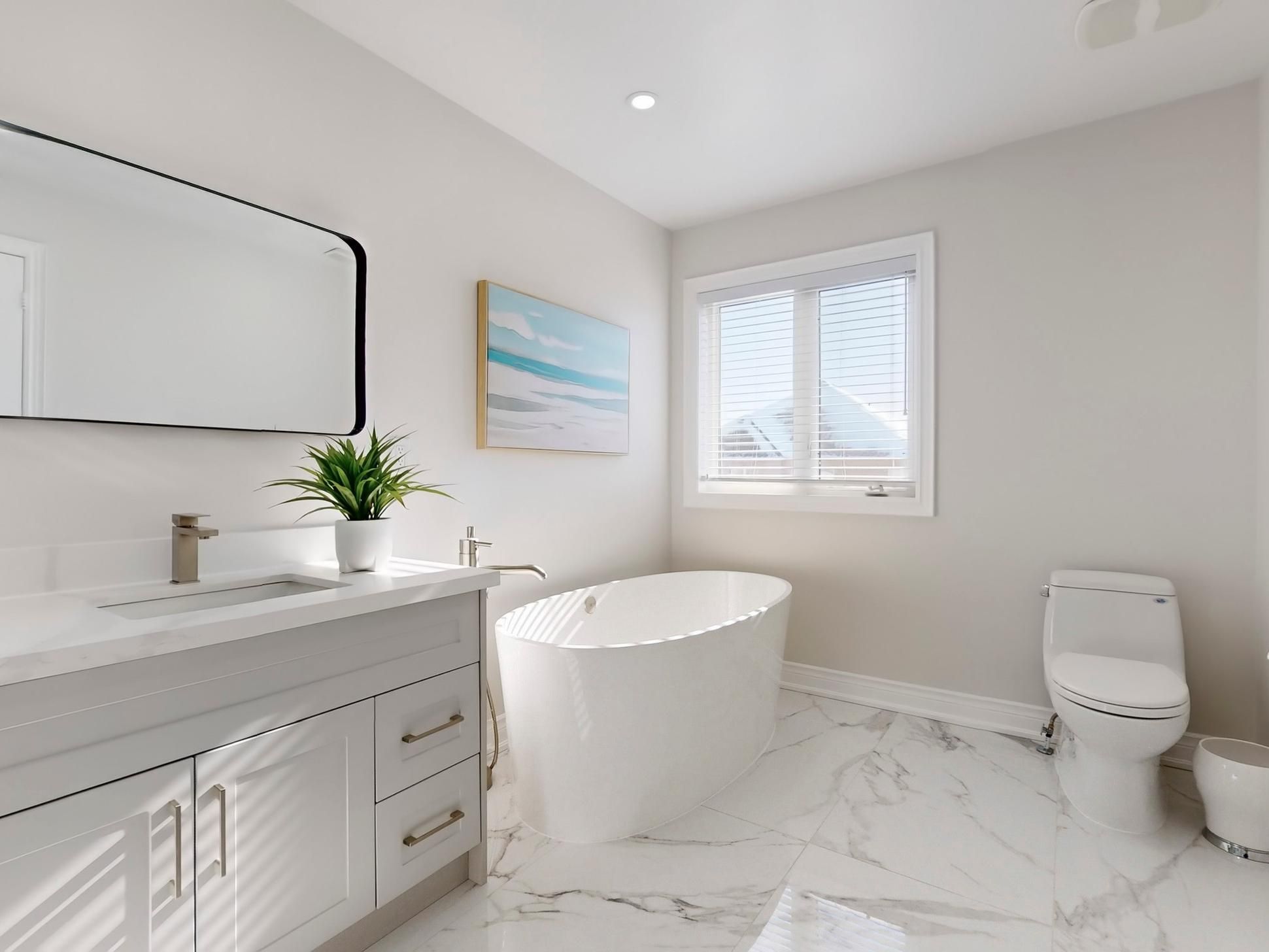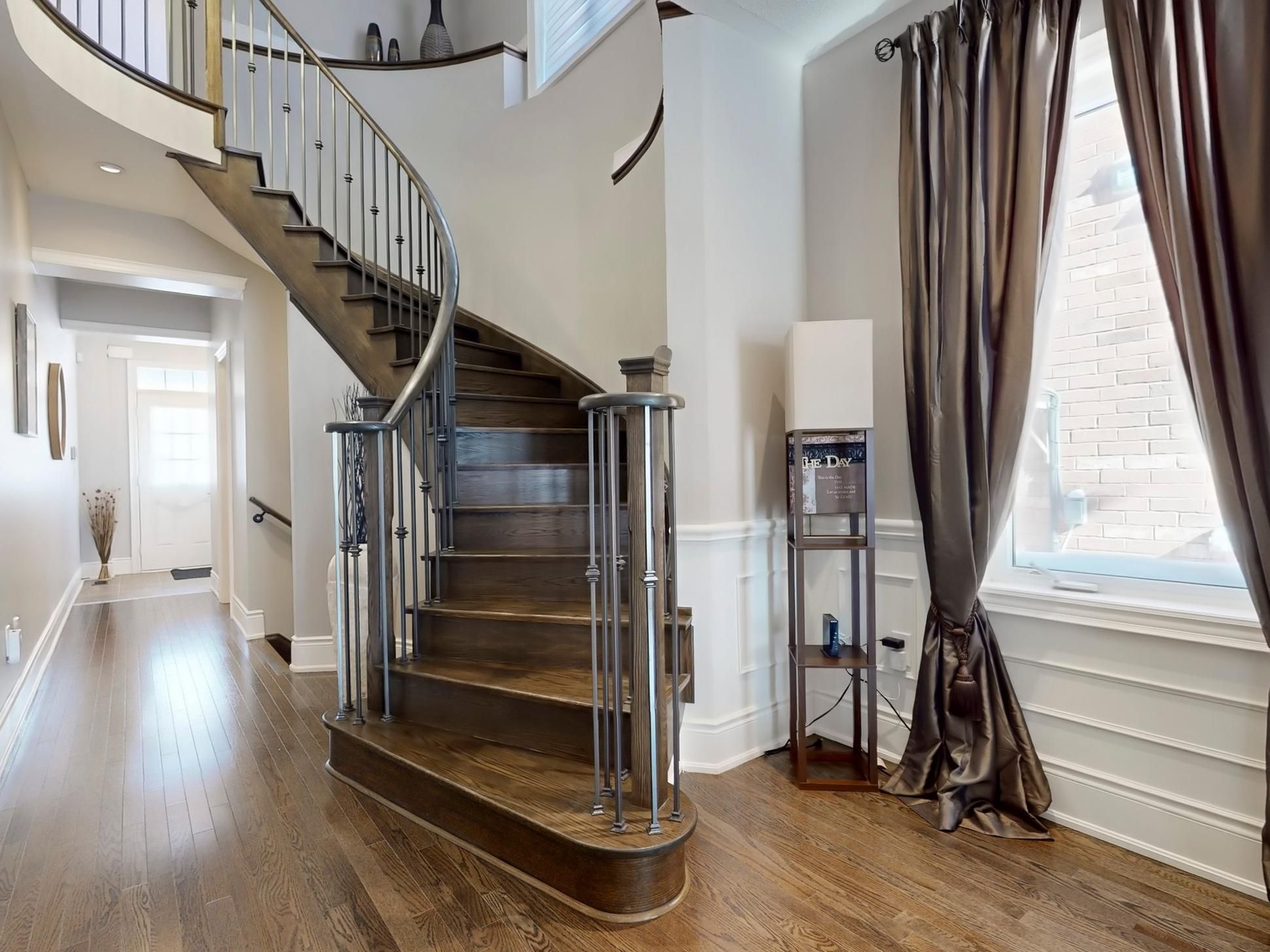 ~ discover refined living at 31 via toscana, perfectly nestled in the heart of vellore village, a sought-after, family-friendly neighbourhood where comfort meets everyday convenience | strip hardwood flooring throughout the main floor and second floor hallway | upgrades include: new in dec 2025 a fresh 6 piece primary ensuite spa like bath, with 2 separate sinks, modern floating vanities with quartz counters, separate freestanding oval tub, glass shower with rain shower and hand shower, 2 feet by 4 feet bianco carrara porcelin tiles create a spacious feel | double door front entry | wainscotting on main floor with chair rail | baseboards | 2 full size pantries in the kitchen | crown molding on kitchen cabinets | circular stairs with wrought iron pickets (open to above) | bianco carrara quartz countertops and undermount sink in kitchen, main bathroom and primary ensuite | quartz matching backsplash in the kitchen that blends seamlessly into the countertop | toto bath fixtures | closet organizers in all 4 bedrooms | pot lighting on main floor | finished basement with full 3pce bath and an electric modern fireplace with a stone feature wall | above grade windows in basement with modern durable vinyl flooring | hot water tank is owned | no sidewalk - can park 3 cars (1 in garage and 2 on the driveway) | interlock front walkway, steps and backyard patio | elegantly designed and updated for you to move in and enjoy!