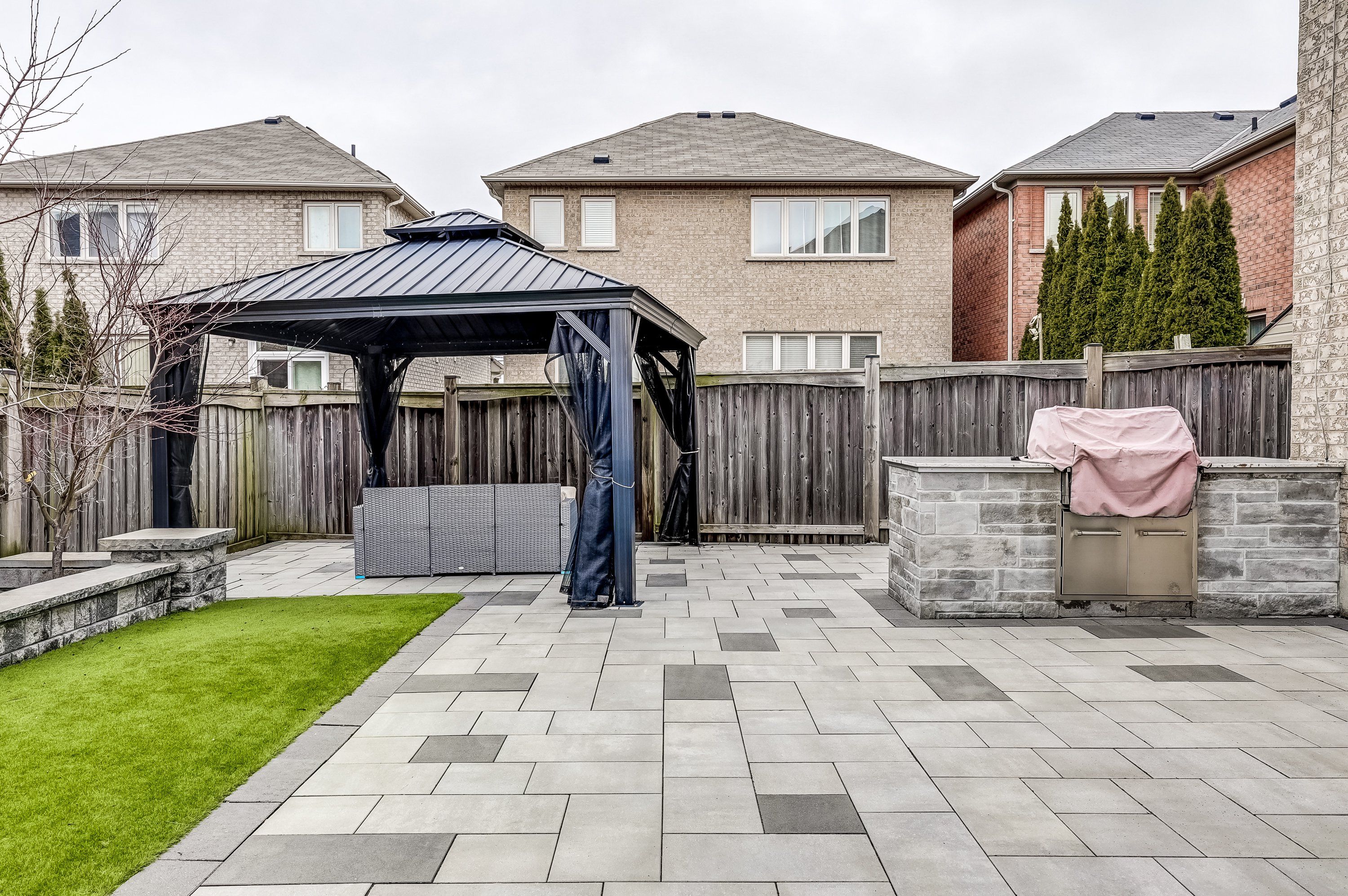 Welcome to this beautifully maintained aspen ridge-built home in the highly sought-after kingshills neighbourhood of oak ridges. Recently painted and offering over 2,500 sq ft of thoughtfully designed living space, this 4+1 bedroom residence is ideal for growing families. Enjoy exceptional curb appeal with no sidewalk and a long driveway, complemented by extensive front interlock. The backyard is an entertainer's dream, featuring a stunning multi-level interlock patio with built-in bbq and gas firepit, perfect for outdoor gatherings. Inside, the home boasts a functional open-concept layout with hardwood flooring, a spacious family room with fireplace, and a dedicated main floor office with french doors. The kitchen offers stainless steel appliances, a pantry and a bright breakfast area with walk-out to the yard. Upstairs, you'll find four generous bedrooms including a primary retreat with walk-in closet and 4-piece ensuite. The finished basement adds valuable living space with a large rec room, wet bar, fireplace and an additional bedroom-ideal for guests or extended family. Located just steps to top-rated public and catholic elementary schools, parks and scenic nature trails, this home offers the perfect blend of comfort, convenience and lifestyle.