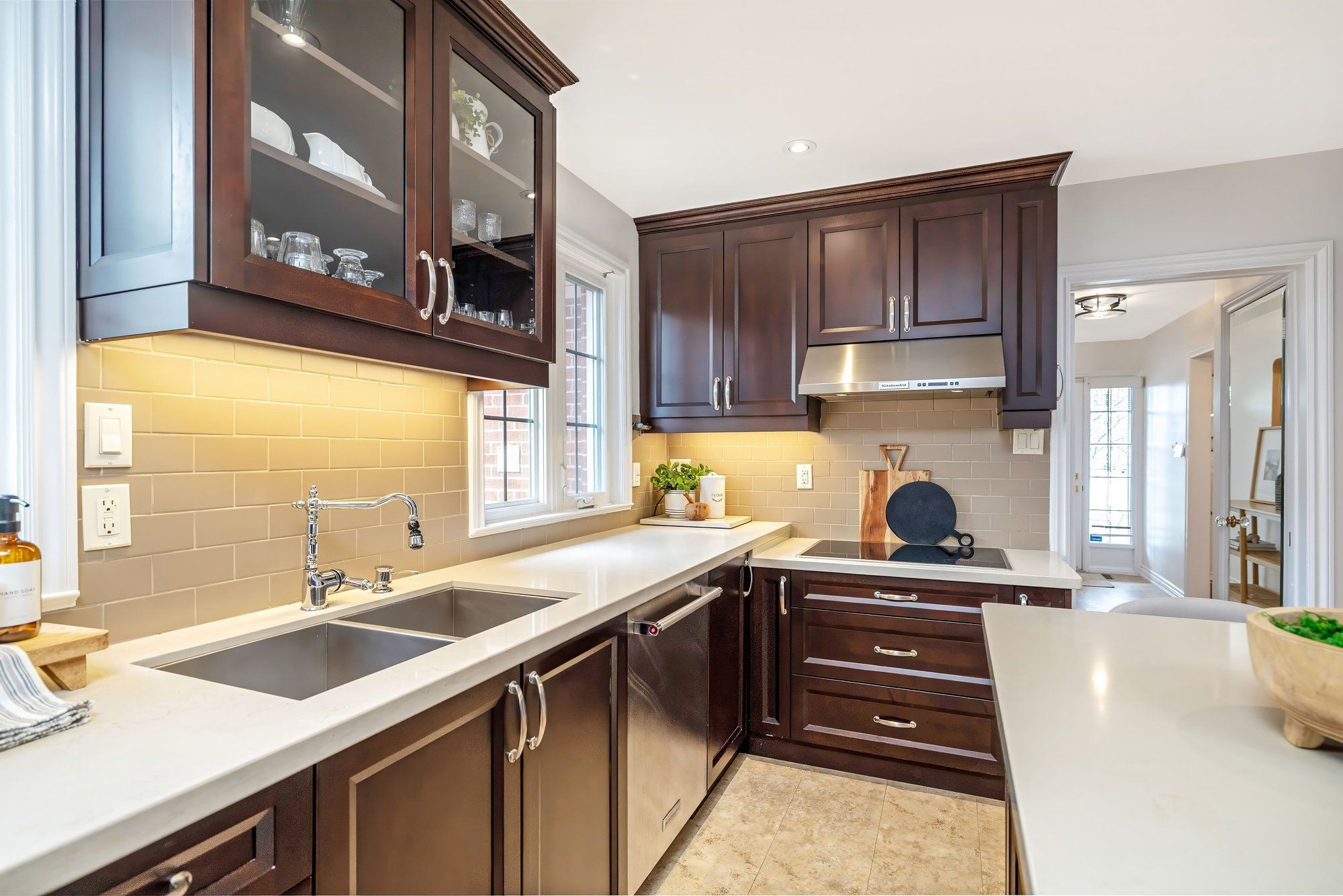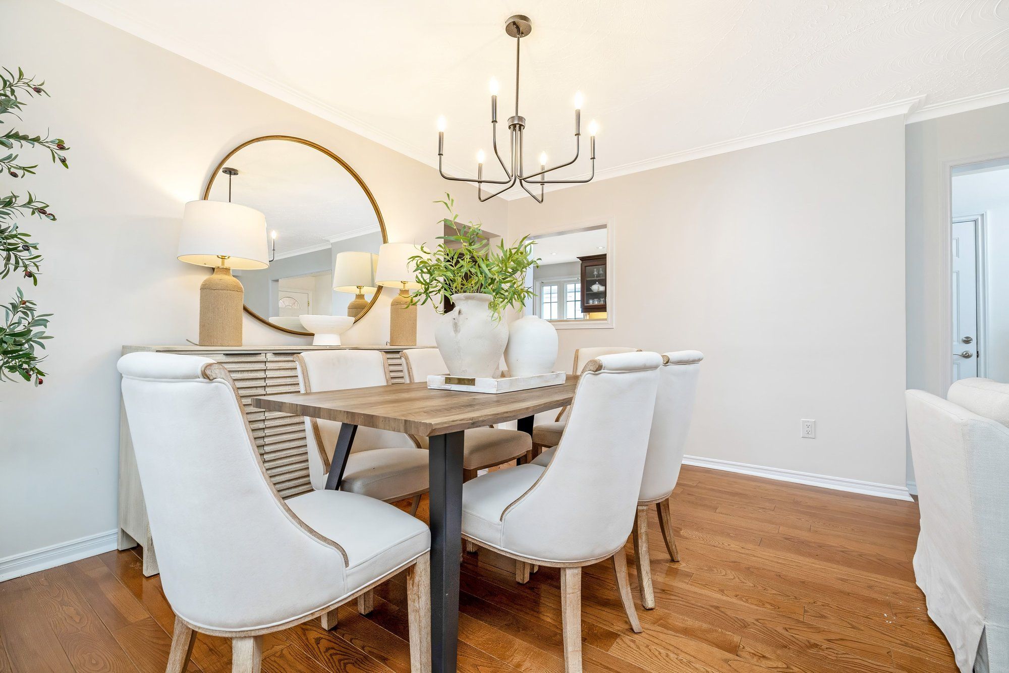 Welcome to 31 woodpark road, a beautifully updated bungalow set on a large, mature lot in etobicoke's highly sought-after richview neighbourhood. This home offers a perfect blend of timeless character and modern upgrades, with bright, inviting spaces designed for comfortable everyday living. Step inside to a spacious living and dining area featuring rich hardwood flooring, crown moulding, & large windows dressed w california shutters that fill the home with natural light. The layout flows seamlessly into a thoughtfully renovated kitchen, showcasing quartz countertops, a built-in wall oven, built-in electric cooktop, stainless steel appliances, & a central island with seating. The main level continues with well-proportioned bedrooms & the added convenience of main floor laundry, making day-to-day living easy & accessible. Freshly painted throughout, the home offers a clean, move-in ready feel that will appeal to a wide range of buyers. The finished basement significantly expands the living space and versatility of the home. Featuring a large family room, a separate recreation room that could easily function as an additional bedroom, a wet bar, a second kitchen, & a 3-piece bathroom, this level is perfectly suited for extended family or multi-generational living. With a private side entrance and a second laundry area, the basement presents excellent in-law suite or potential. Outside, the mature lot offers privacy & space rarely found, with established trees & a welcoming curb appeal that reflects the pride of ownership throughout the neighbourhood. The double driveway and garage provide ample parking for families & guests. Located in the heart of richview, this home places you close to scenic parks, walking trails, reputable schools, & everyday amenities. Enjoy nearby green spaces like west deane park & james gardens, along with convenient access to major highways including the 401, 427, & the gardiner expressway, making commuting simple