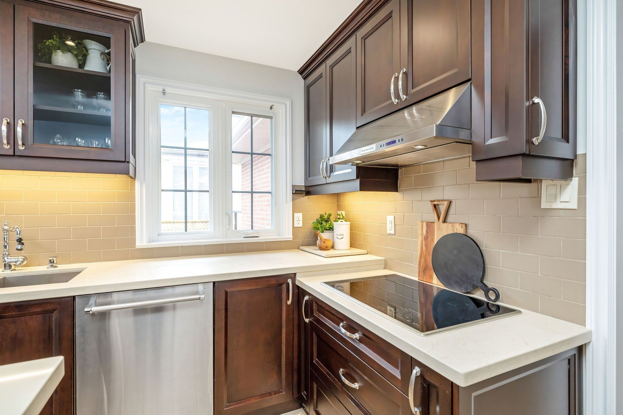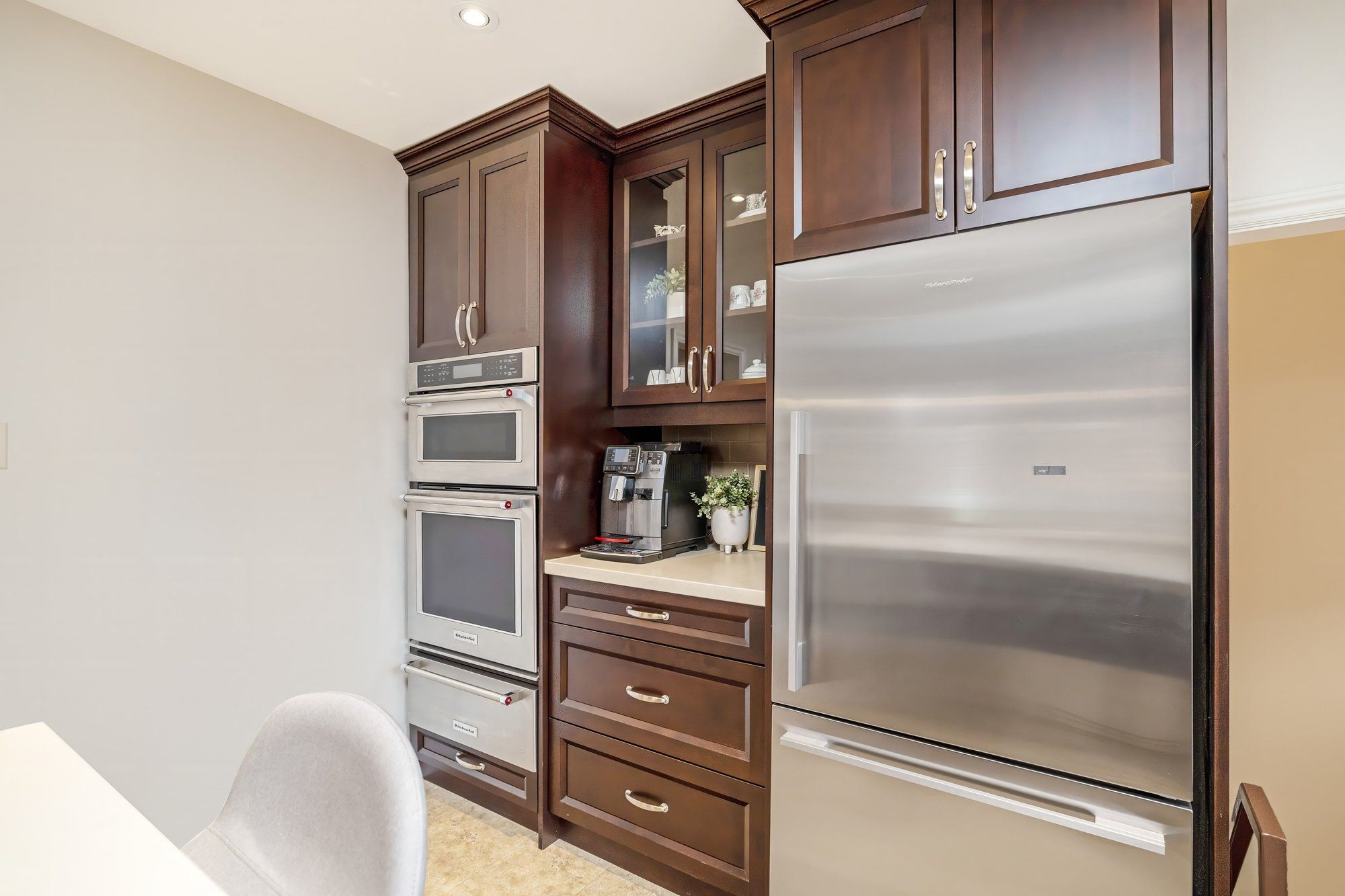 • Renovated kitchen with quartz countertops and stainless steel appliances.