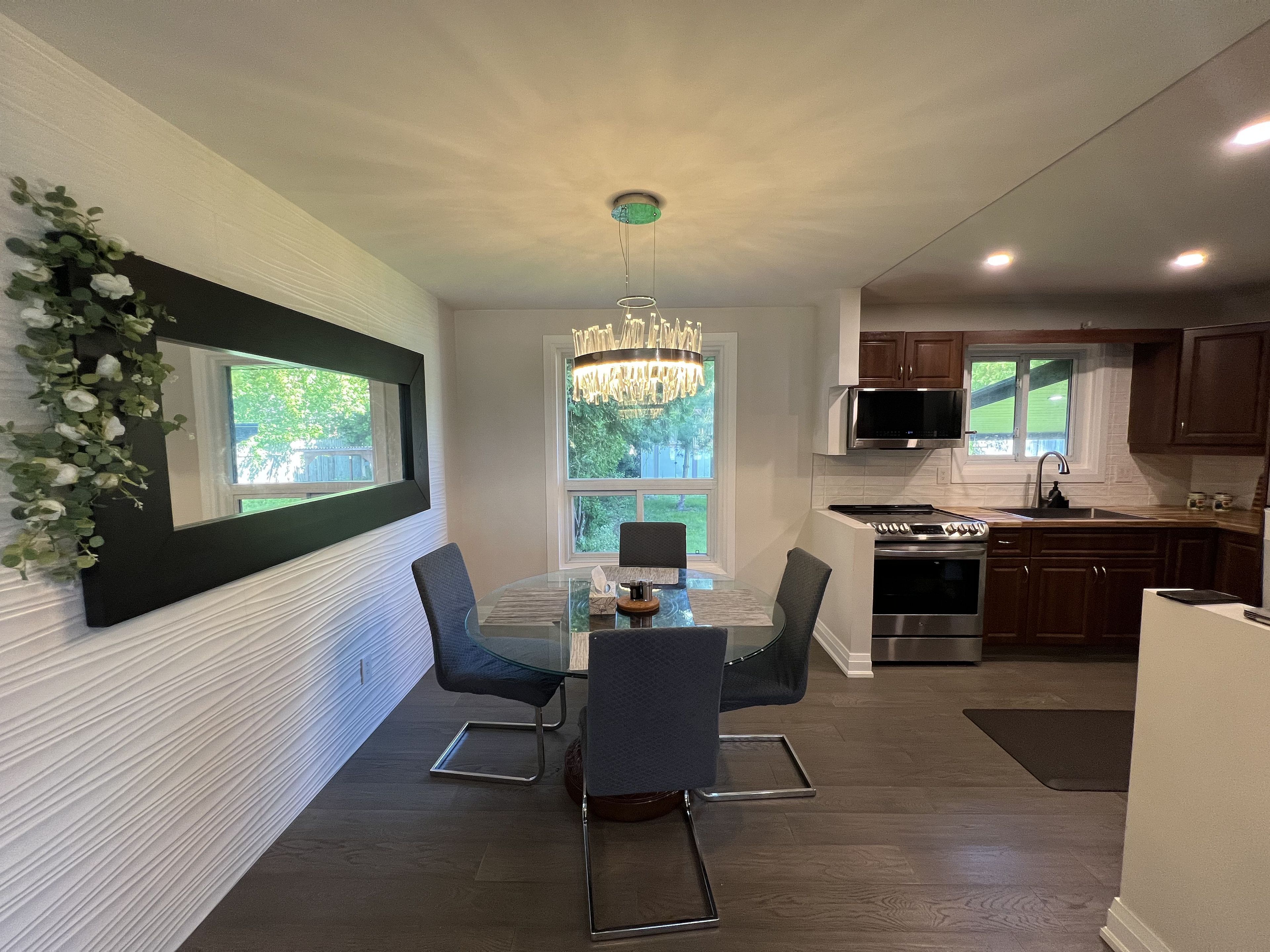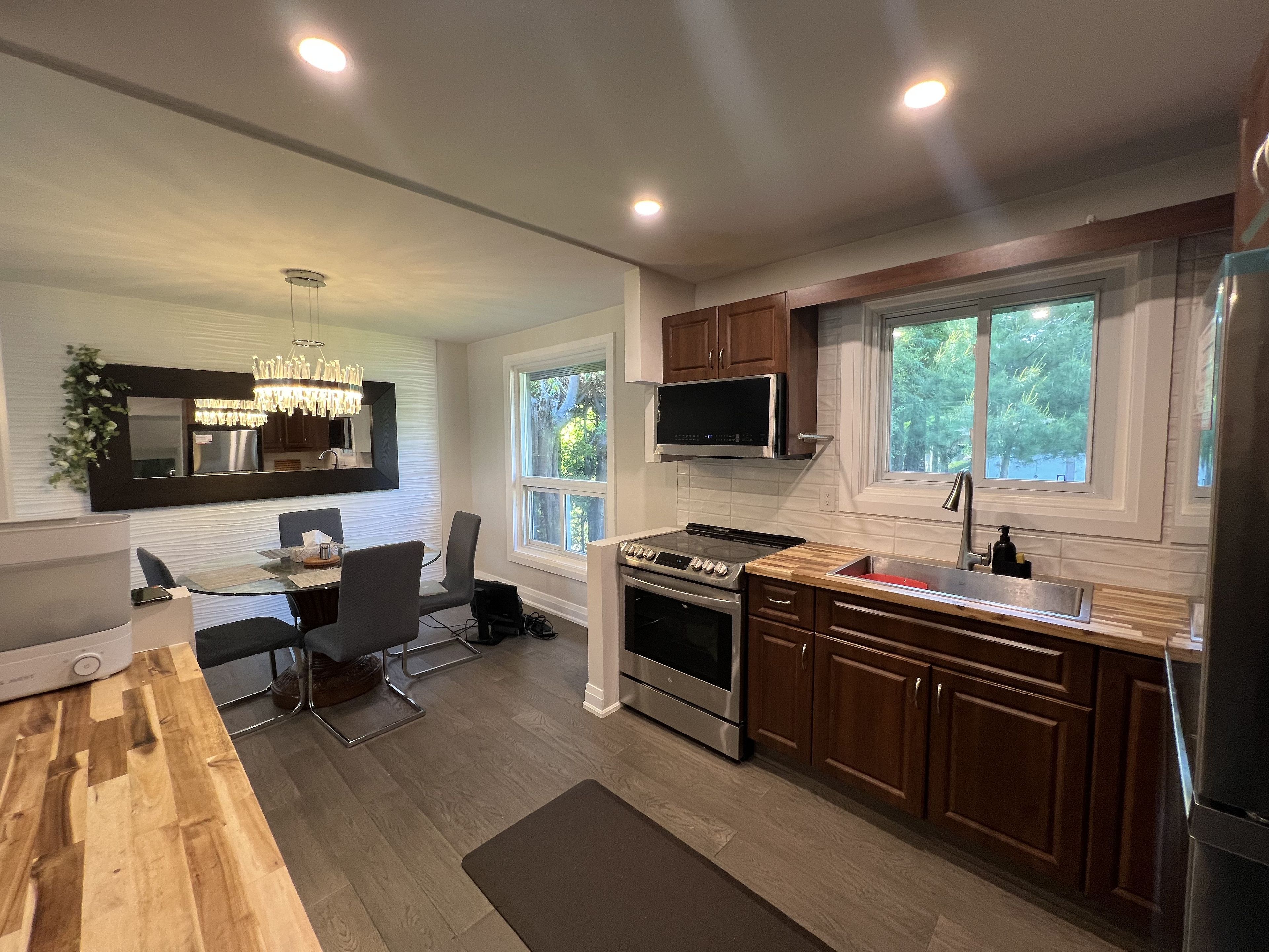 • Modern open concept kitchen with upgraded smart appliances.
