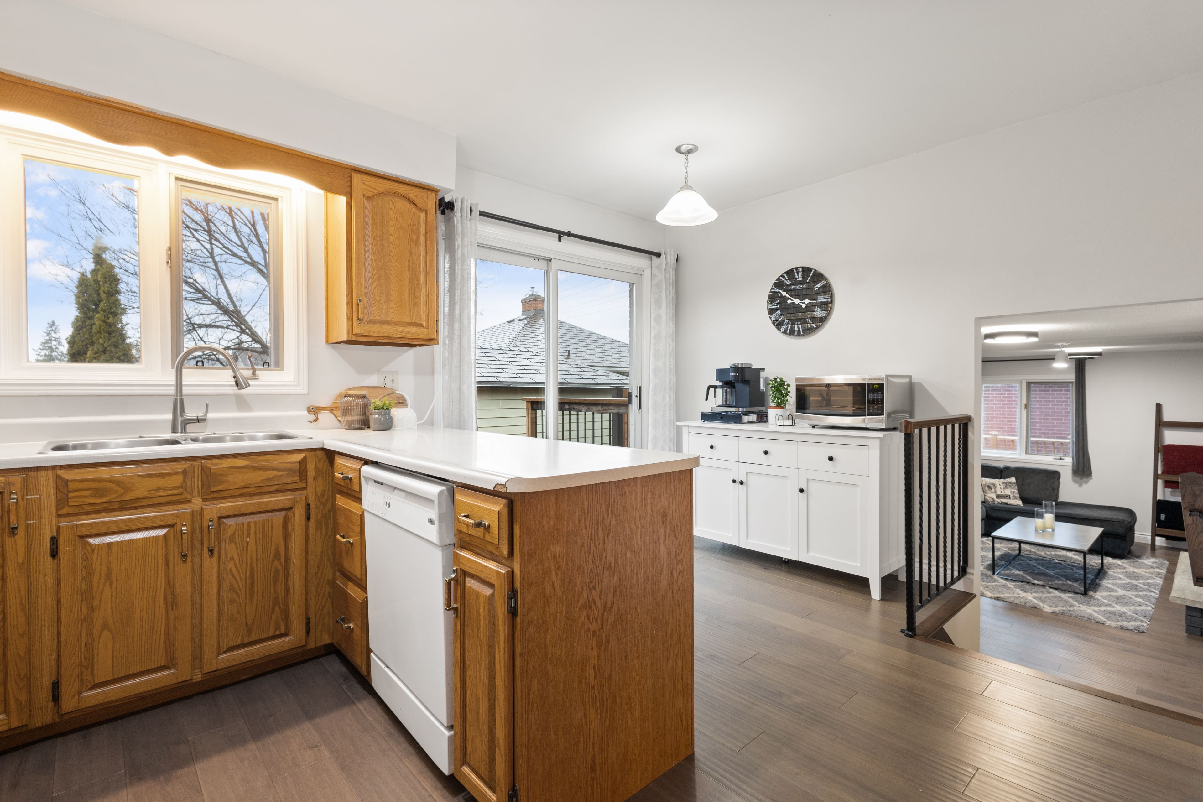 Multi-level side split offering well over 2,000 sq ft of finished living space in a strong west end location. This 4-level home provides space for the whole family with multiple living areas, an eat-in kitchen, and generously sized bedrooms and bathrooms. Engineered hardwood flooring spans the main level, featuring two separate living areas, a dining space, and a kitchen with two walkouts to the rear yard. The main level also includes a 2-piece bathroom and access to the insulated and drywalled two-car garage. The upper level continues with engineered hardwood and offers three spacious bedrooms and two full bathrooms, including a primary suite with walk-in closet. The lower level adds flexible space for a rec room, gym, or additional living area with access to laundry. Outside, the property offers strong curb appeal with an interlock driveway, updated deck, and a new concrete pad with hot tub and privacy fencing. Major updates include furnace, heat pump, and roof within the past three years. Conveniently located near schools, parks, shopping, and the new ymca. A well-rounded home offering solid value in belleville's west end.