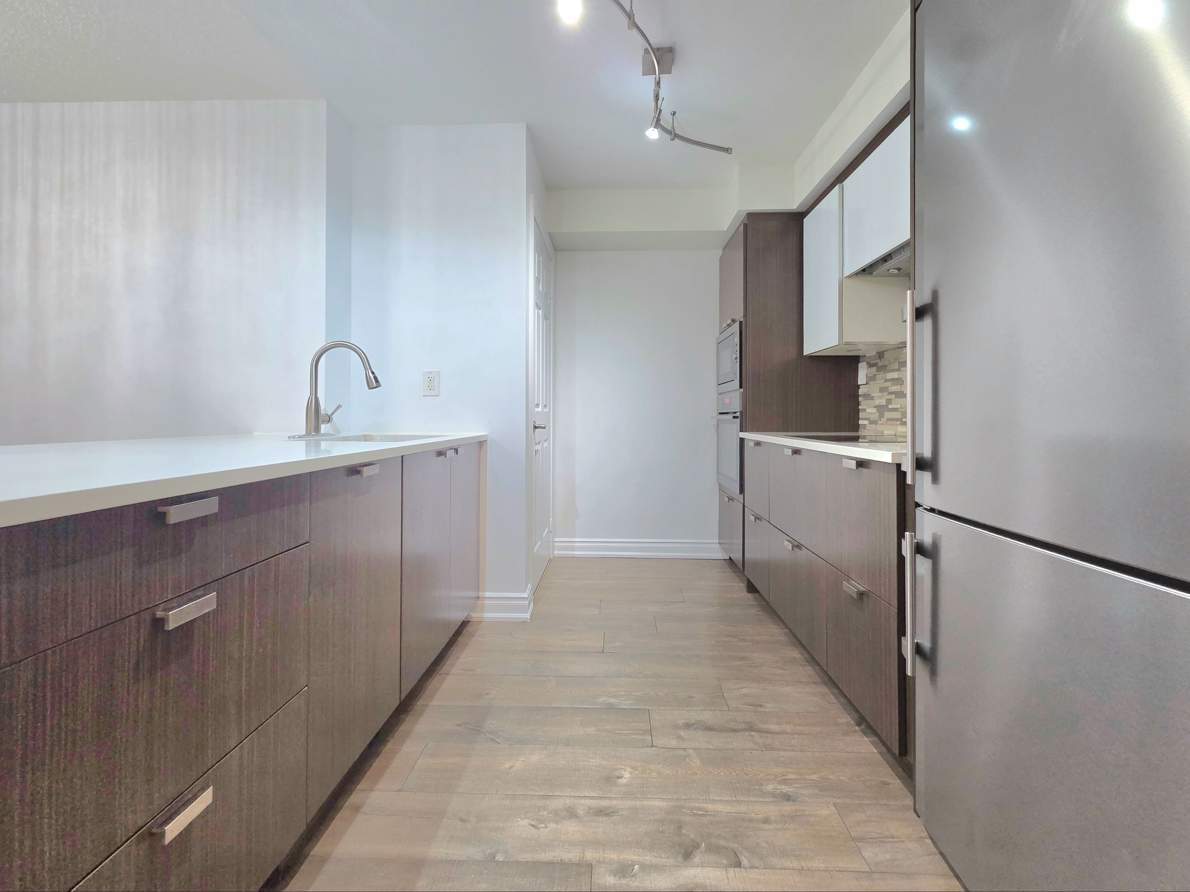 Elevate your lifestyle in this 2-bedroom + den condo on the 33rd floor of the grand ovation. The unit features a custom european kitchen with high-end liebherr and aeg appliances, including built-in oven and microwave, hidden cabinet integrated dishwasher, and countertop-embedded range with sleek hood. Both bathrooms are fully renovated, and both bedrooms offer spacious walk-in closets ideal for a refined wardrobe. The den provides a quiet home office space for working professionals. After a long day, relax on your balcony and enjoy breathtaking sunsets over the city or take advantage of world-class building amenities, including indoor pool, sauna, hot tub, theatre room, virtual golf, 24-hour concierge, and gym. Steps from square one, living arts centre, miway transit, go transit, and the upcoming hurontario lrt, this home combines style, convenience, and sophistication.