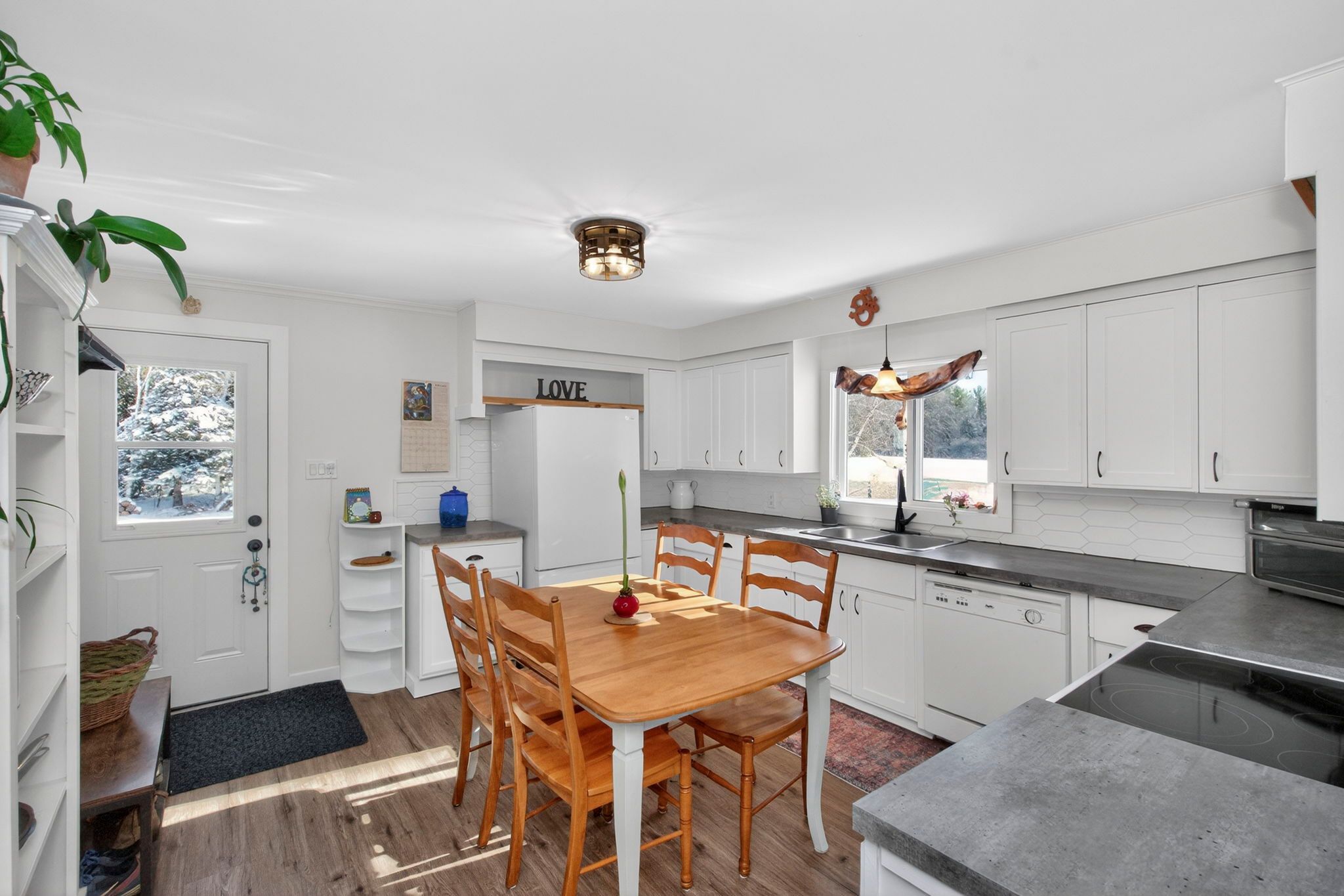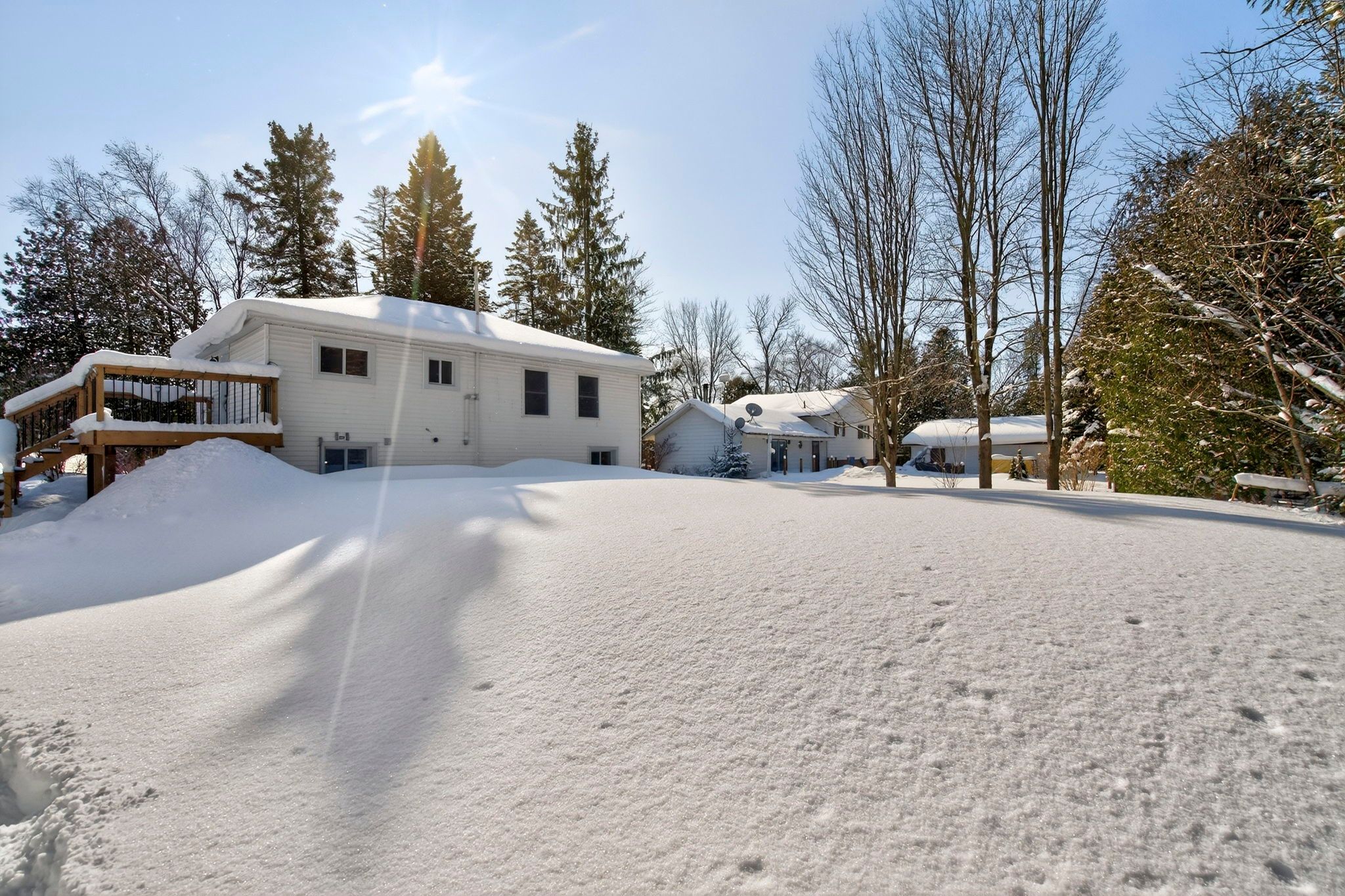 Have you ever walked into a home and instantly felt at ease? The kind of place that feels like a deep breath the moment you step inside. This is that house. Tucked into a quiet, forested setting and backing onto greenbelt, this property offers privacy, starry skies, birdsong and the kind of calm that's getting harder to find. Surrounded by nature yet just minutes from one of tiny's best sandy beaches, you truly get the best of both worlds, peaceful rural living without feeling far from everything. Set on an expansive 170 x 150 ft double-wide lot, there is room to breathe, room to play, and room to imagine what's next. The oversized insulated garage, built in 2011, with electrical is perfect for hobbies, storage or a future workshop. An additional 10x12 shed also offers additional outdoor storage. High-speed internet is available, so working from home or streaming is seamless. Inside, the home is filled with soft, natural light that keeps the space feeling bright and uplifting all day long. With four bedrooms, two bathrooms and a spacious eat-in kitchen, there is flexibility for growing families, guests or even in-law potential. The layout feels welcoming and functional, a home that simply feels good to be in. When you fall in love with this house, it just might love you right back. Recent improvements include: windows - 2021 * new flooring throughout, updated bathrooms * seamless eavestroughs * jet pump and pressure tank* garage - new panel & exterior light* all in 2024 * and new deck - oct 2025 * age of shingles - 2011.