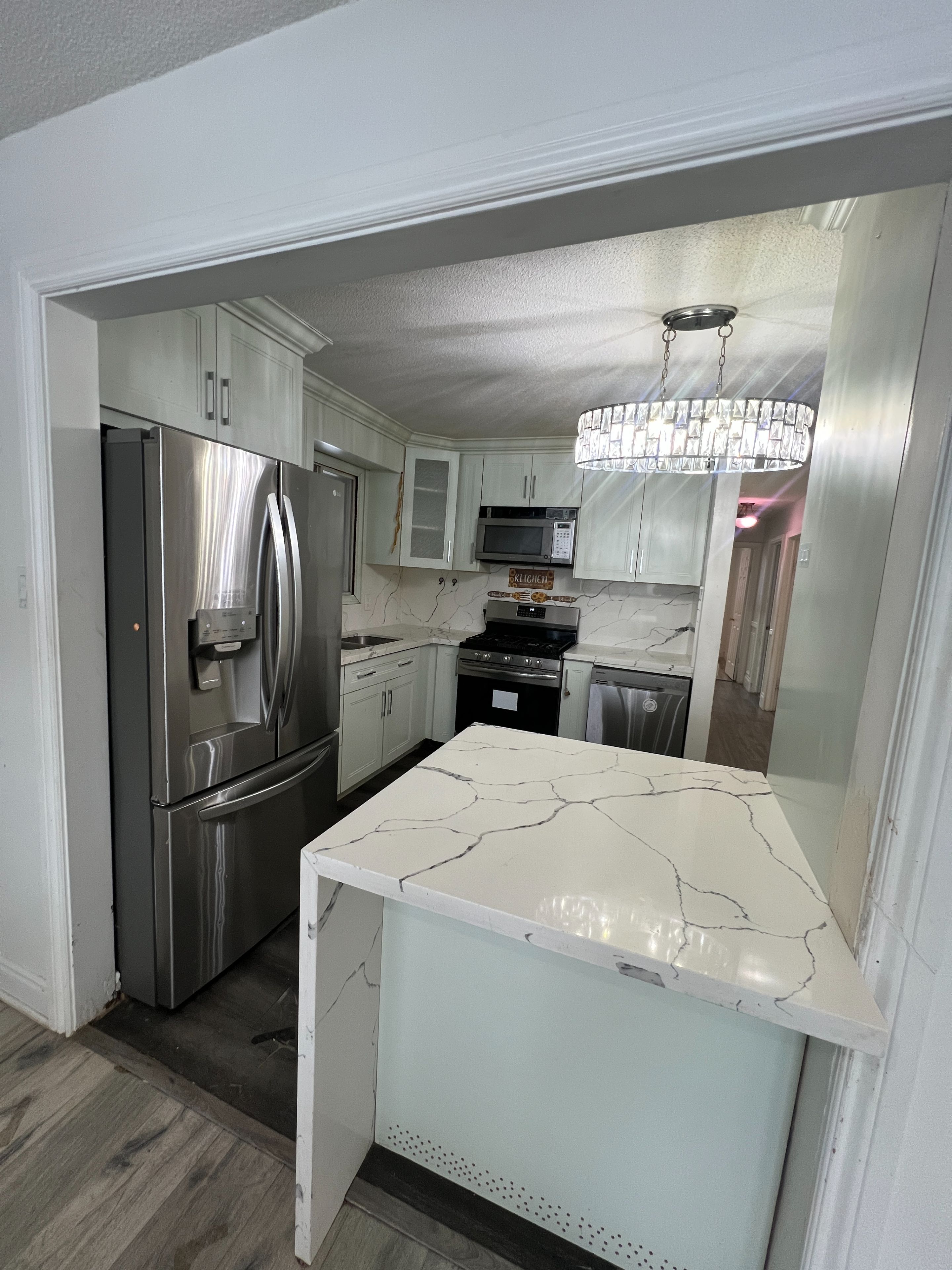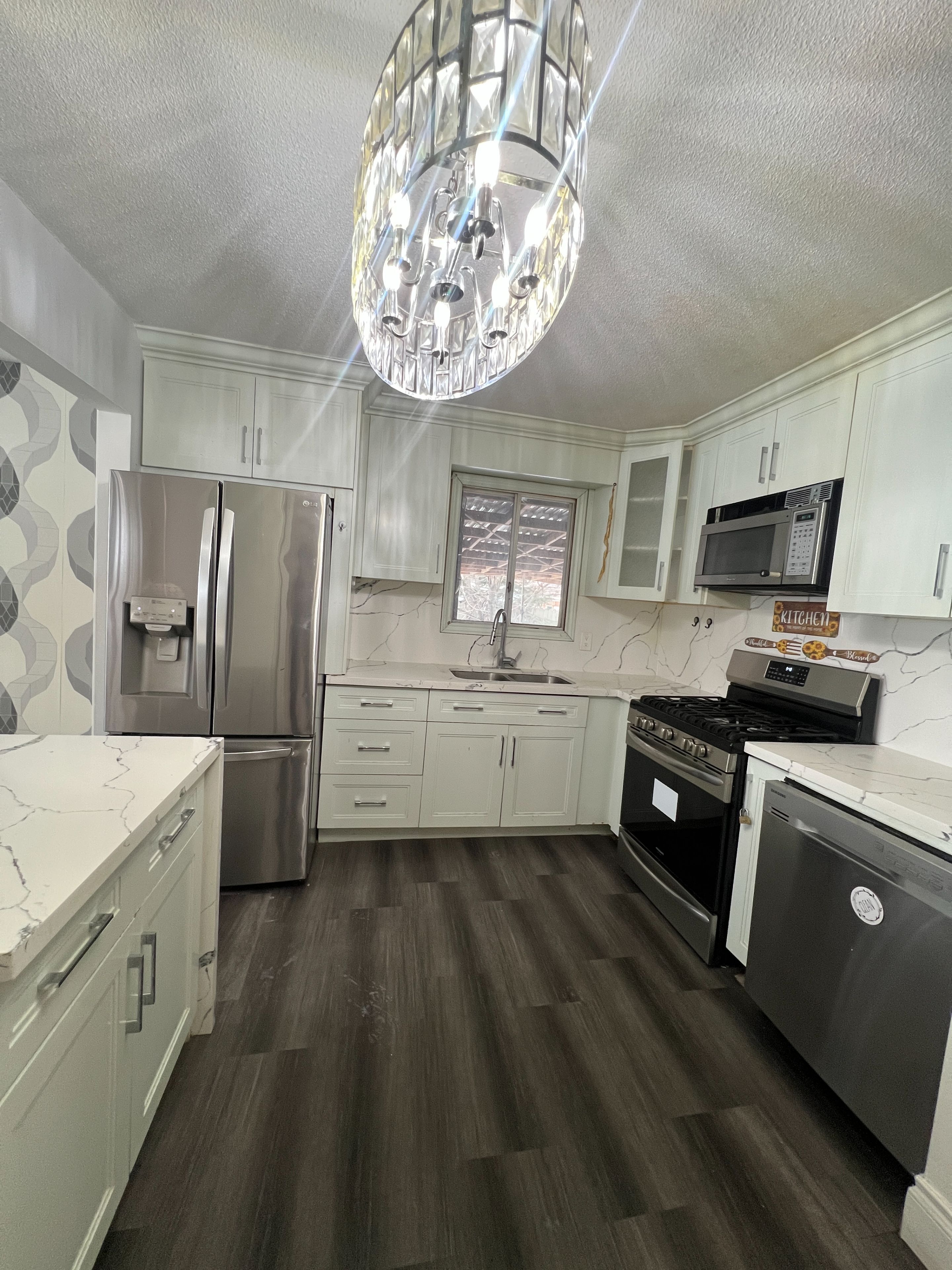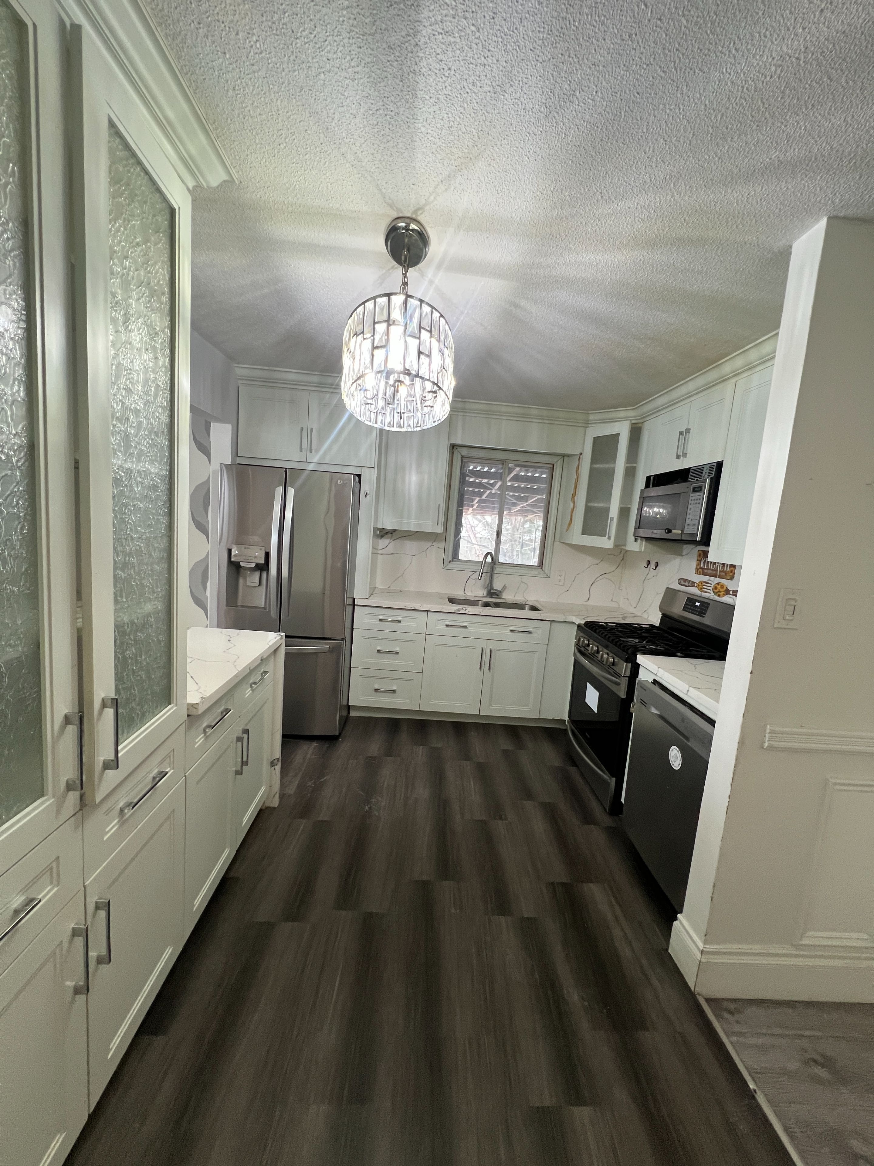 • Finished basement with separate entrance includes additional kitchen and living space.