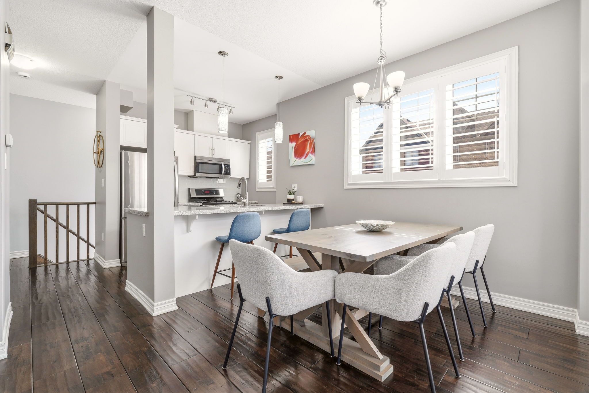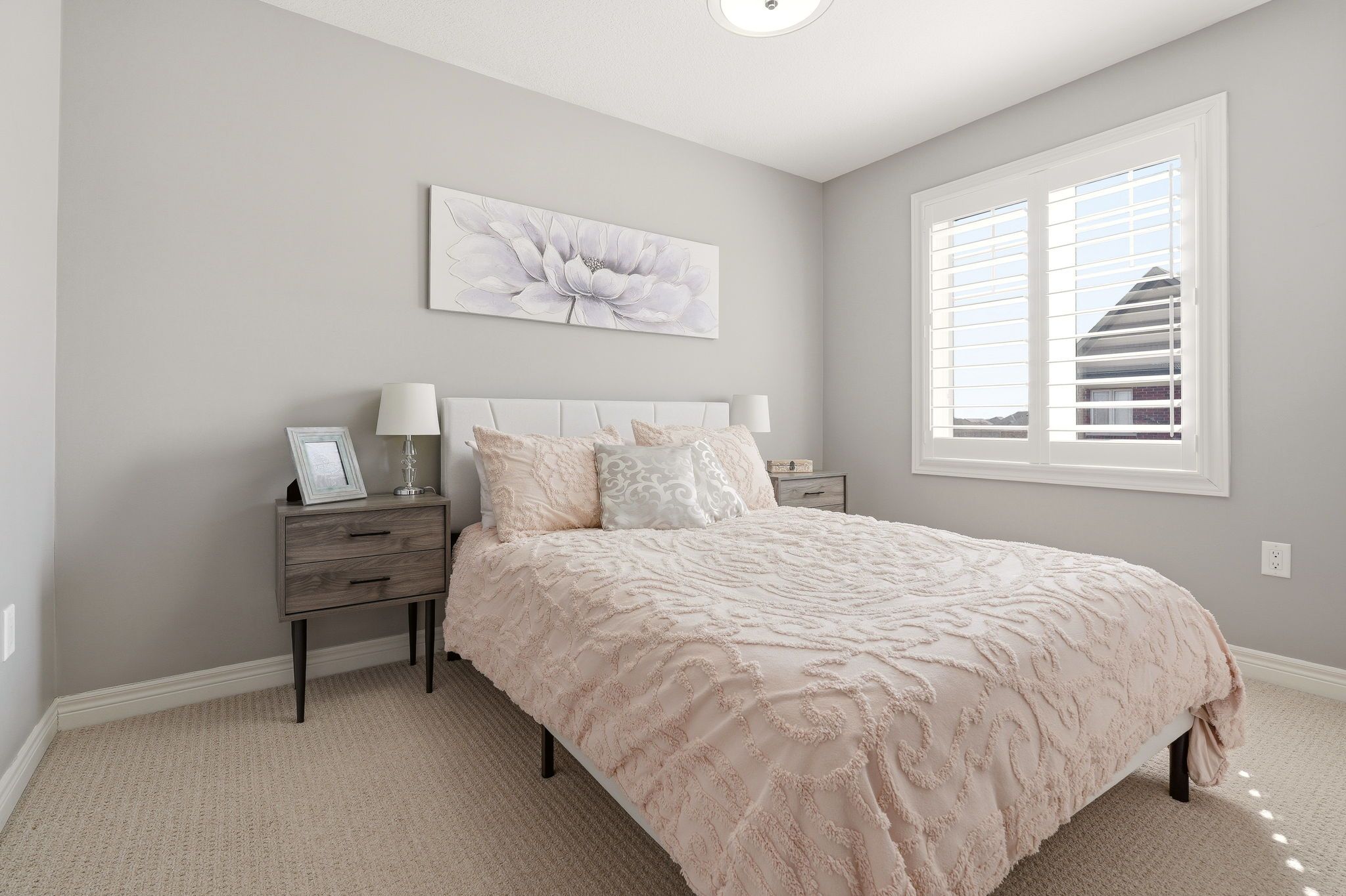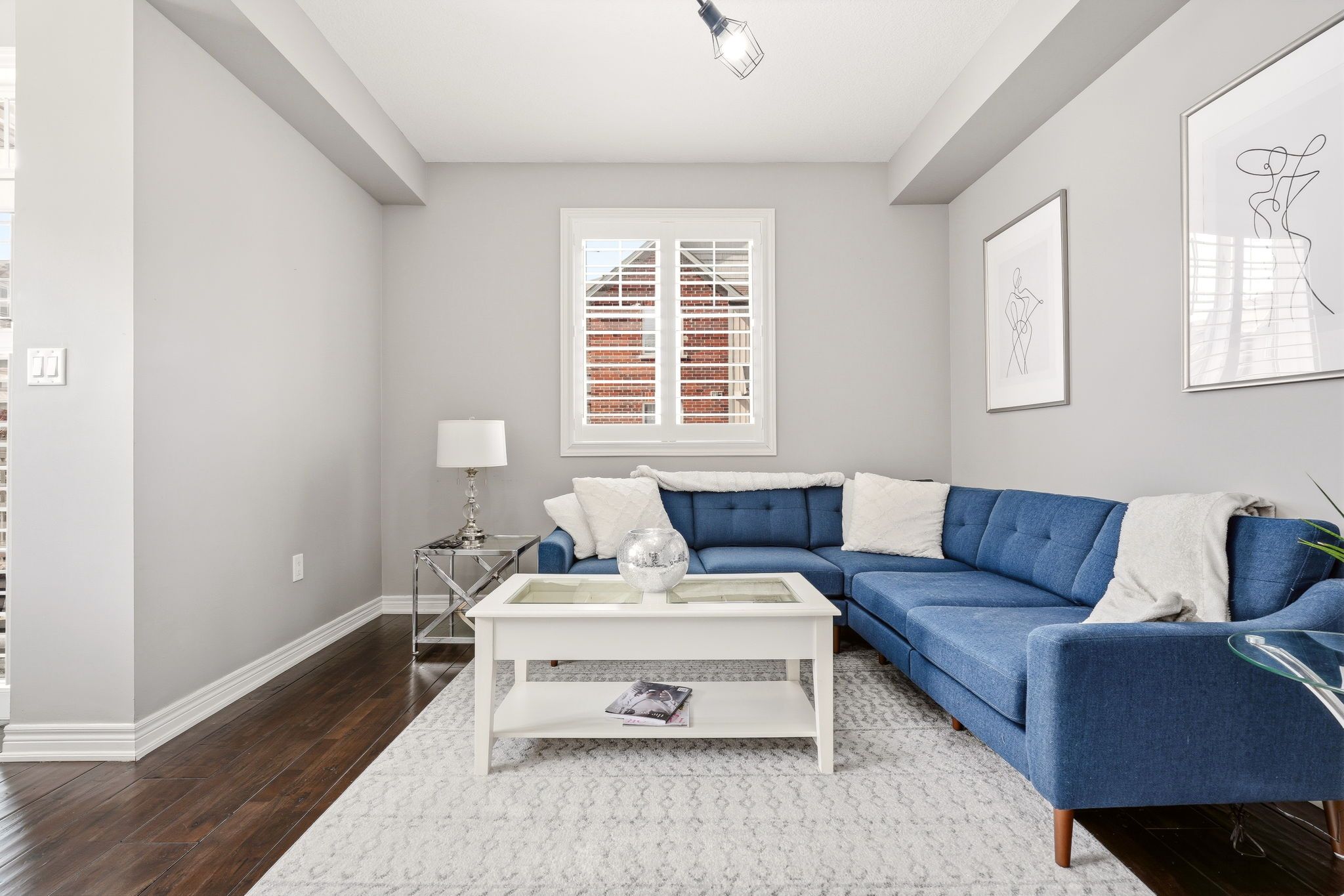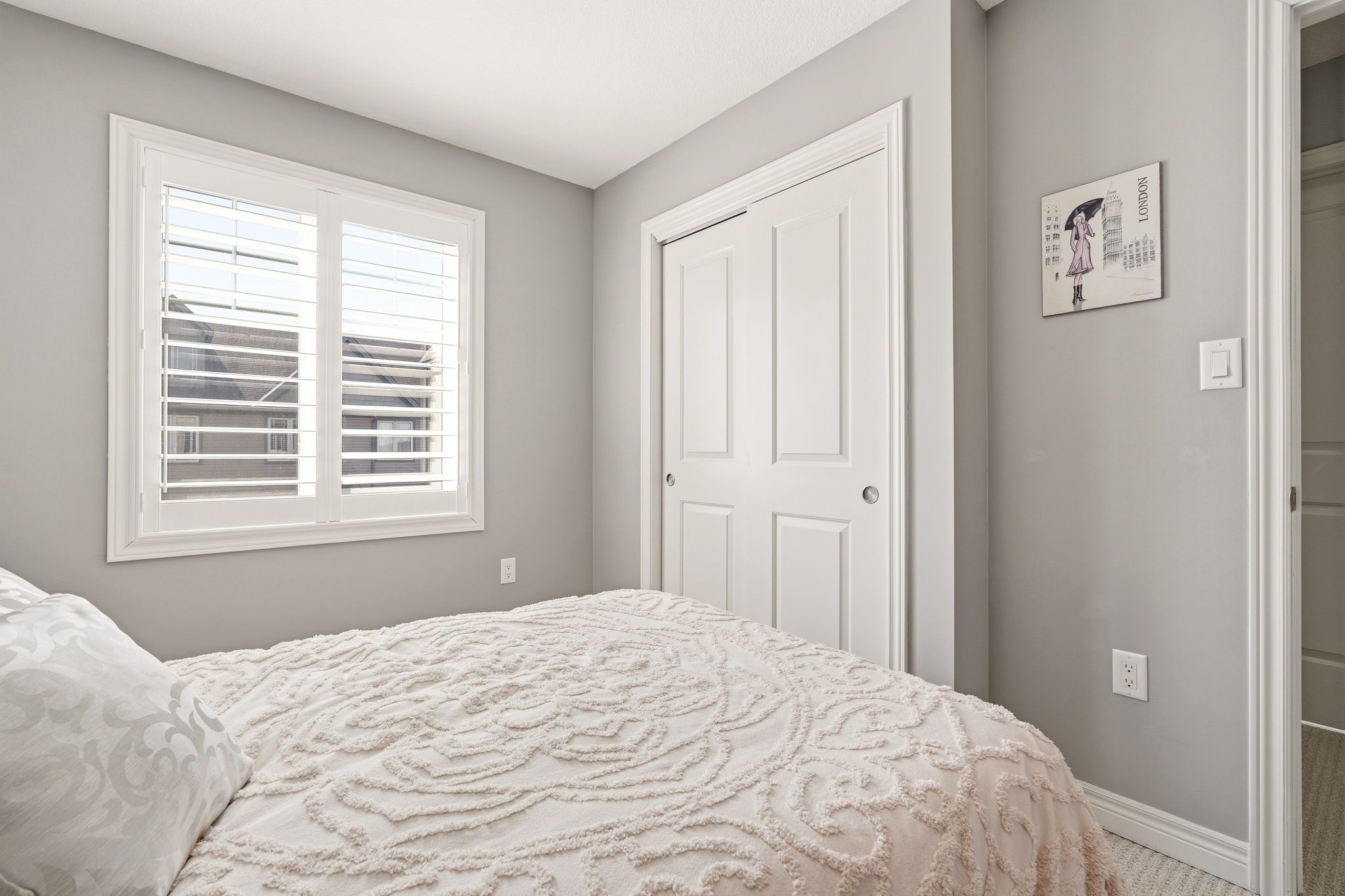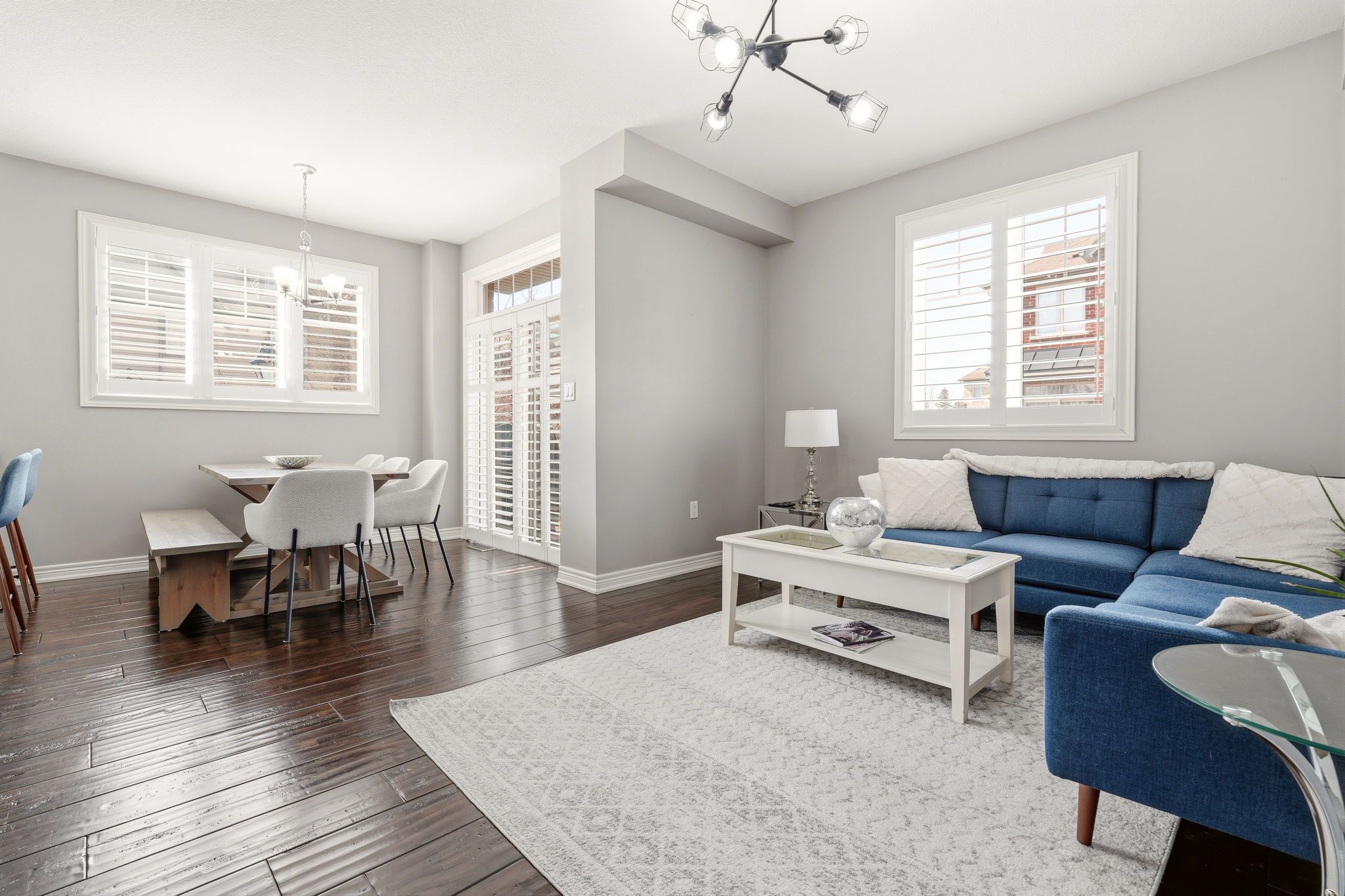 Clean & bright 3 bedroom, end unit freehold townhome with low road maintenance fee, built in 2012 in the desirable binbrook neighbourhood! Offering many upgrades, perfect for first-time home buyers. Enter into the bright main level with a spacious den or office, access to the garage andstorage. The second level features engineered hardwood flooring in an open concept living room and dining room with a walk-out to the balcony,immaculate white kitchen cabinets with granite counter tops & stainless steel appliances and a renovated powder room. Ideal layout forentertaining and daily living, don't miss the walk-in pantry on this level, great additional storage! The third floor offers 3 well-sized bedrooms anda newly painted 4-piece bathroom with a soaker tub and new vanity. Laundry is conveniently located on the second level. Custom california shuttersthroughout the second & third levels. One-car garage with inside entry and roughed-in central vacuum.