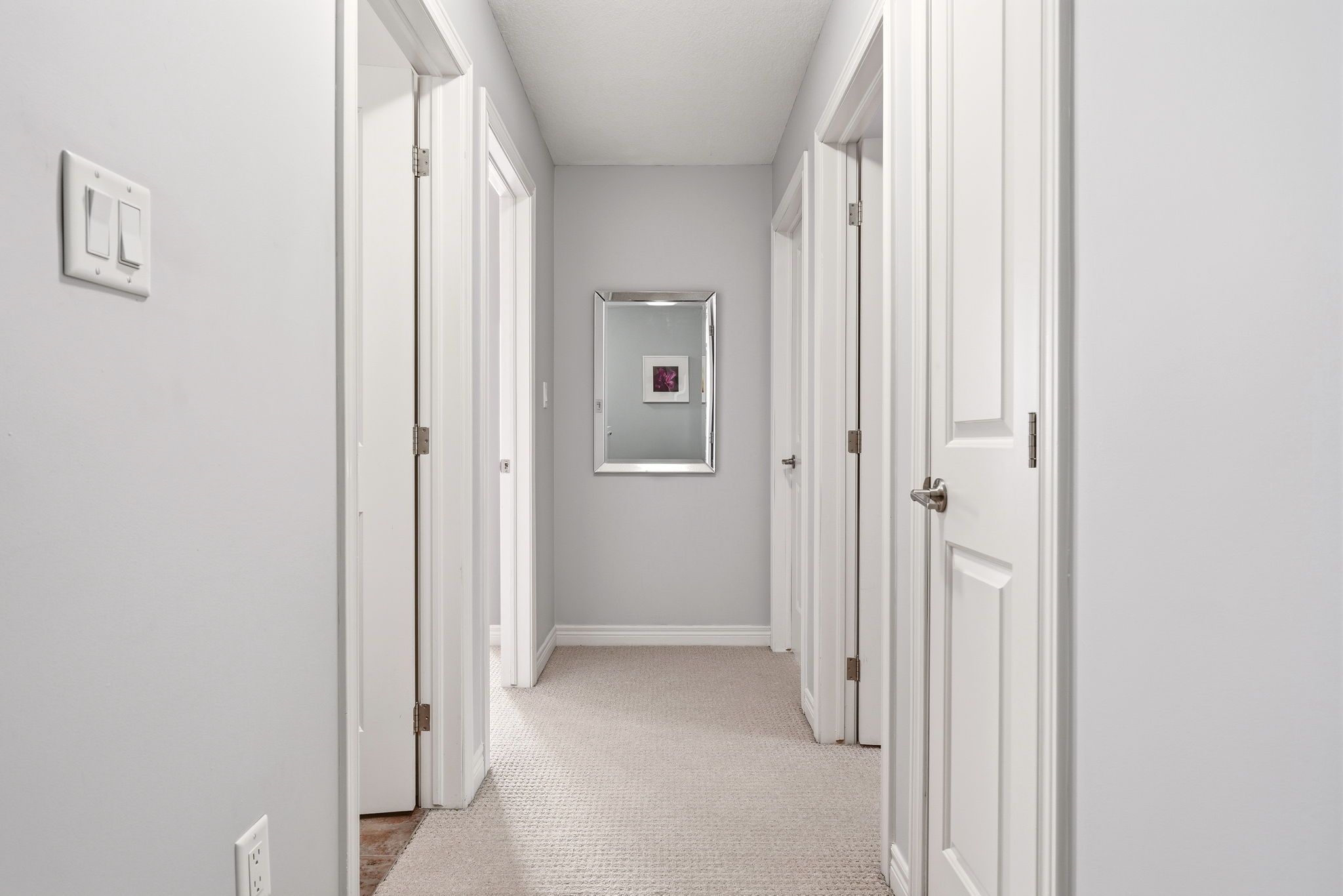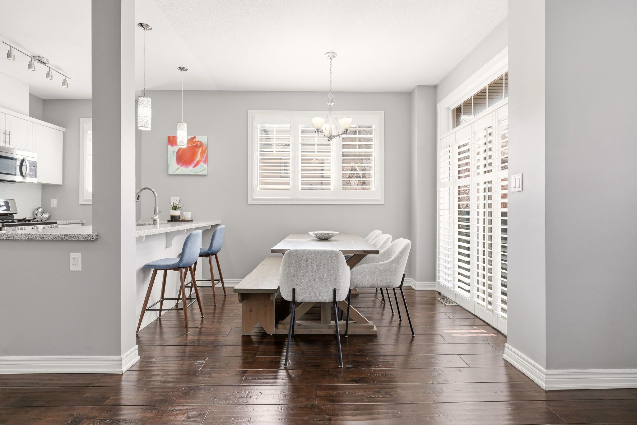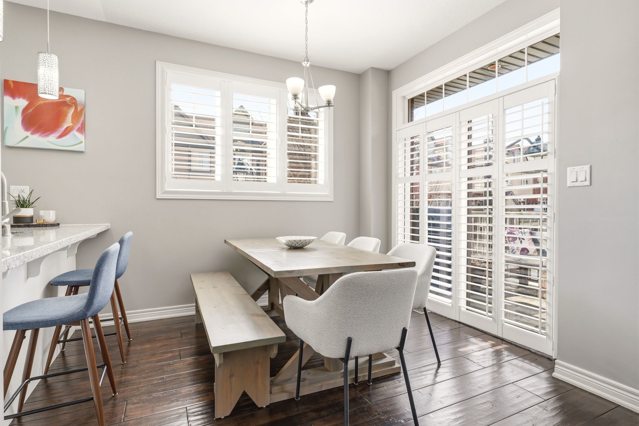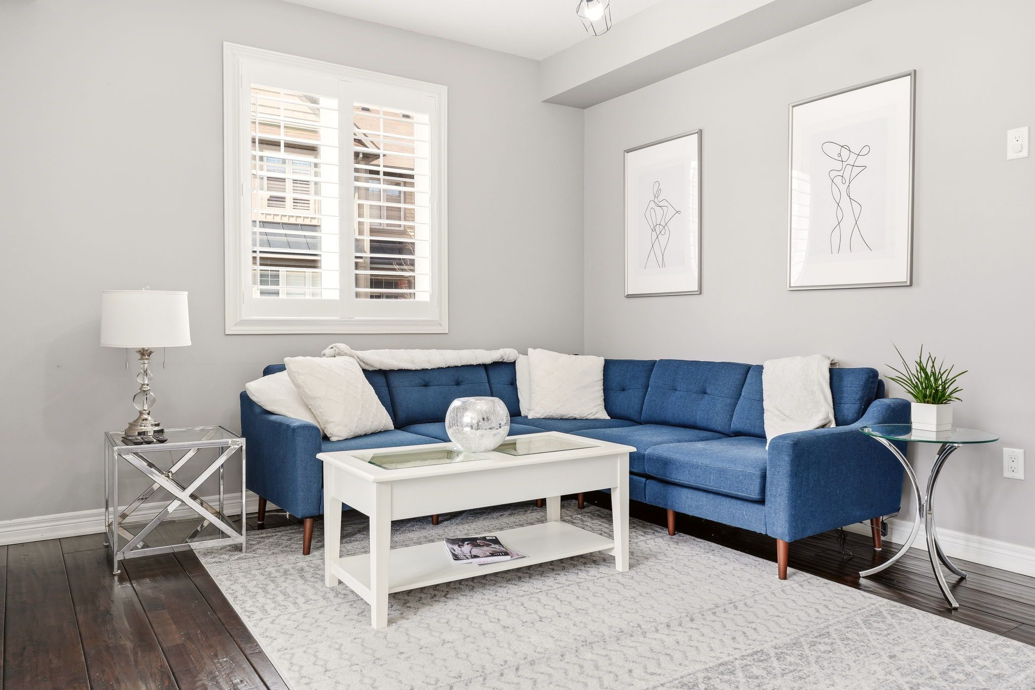 Clean & bright 3 bedroom, end unit freehold townhome with low road maintenance fee, built in 2012 in the desirable binbrook neighbourhood! Offering many upgrades, perfect for first-time home buyers. Enter into the bright main level with a spacious den or office, access to the garage andstorage. The second level features engineered hardwood flooring in an open concept living room and dining room with a walk-out to the balcony,immaculate white kitchen cabinets with granite counter tops & stainless steel appliances and a renovated powder room. Ideal layout forentertaining and daily living, don't miss the walk-in pantry on this level, great additional storage! The third floor offers 3 well-sized bedrooms anda newly painted 4-piece bathroom with a soaker tub and new vanity. Laundry is conveniently located on the second level. Custom california shuttersthroughout the second & third levels. One-car garage with inside entry and roughed-in central vacuum.