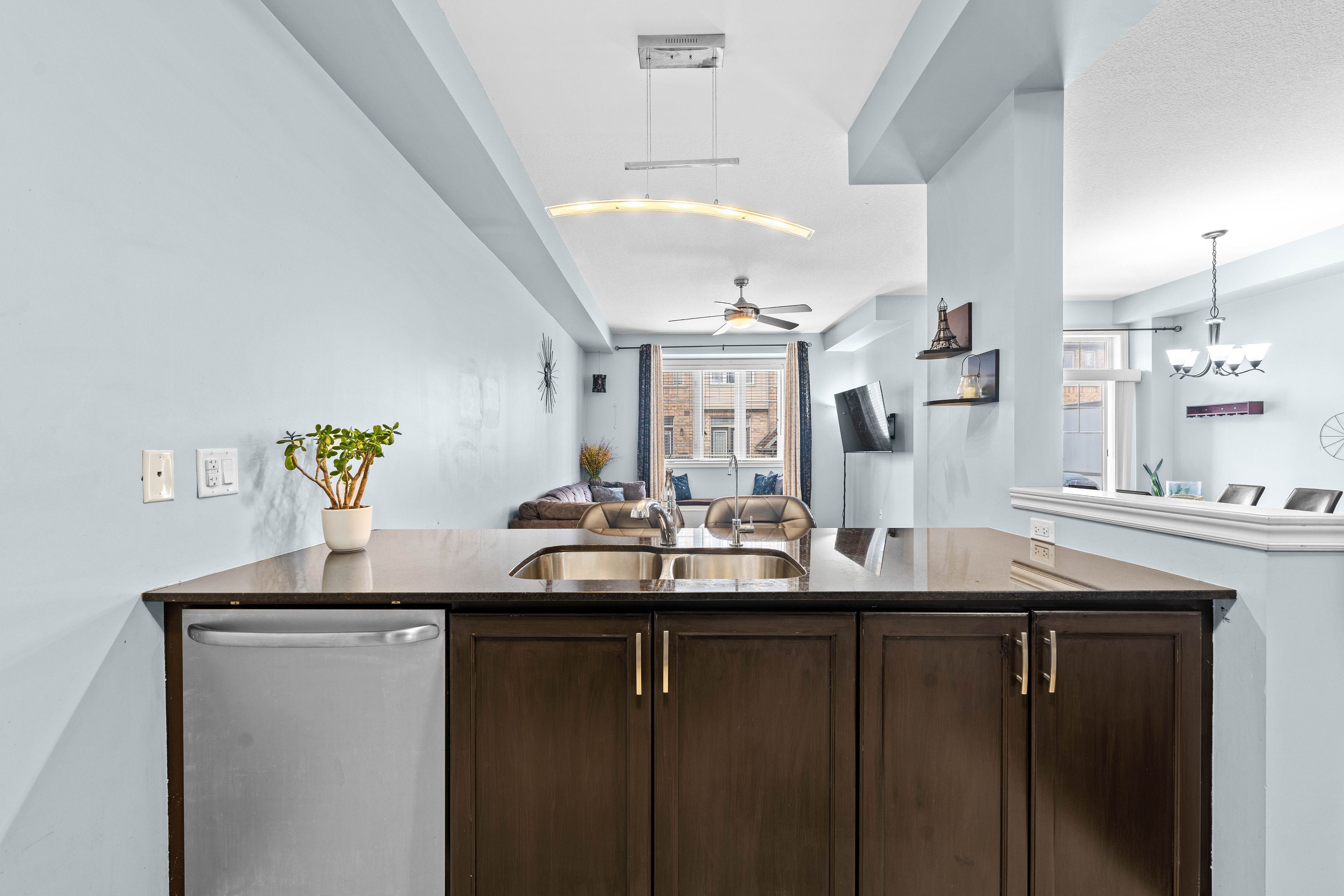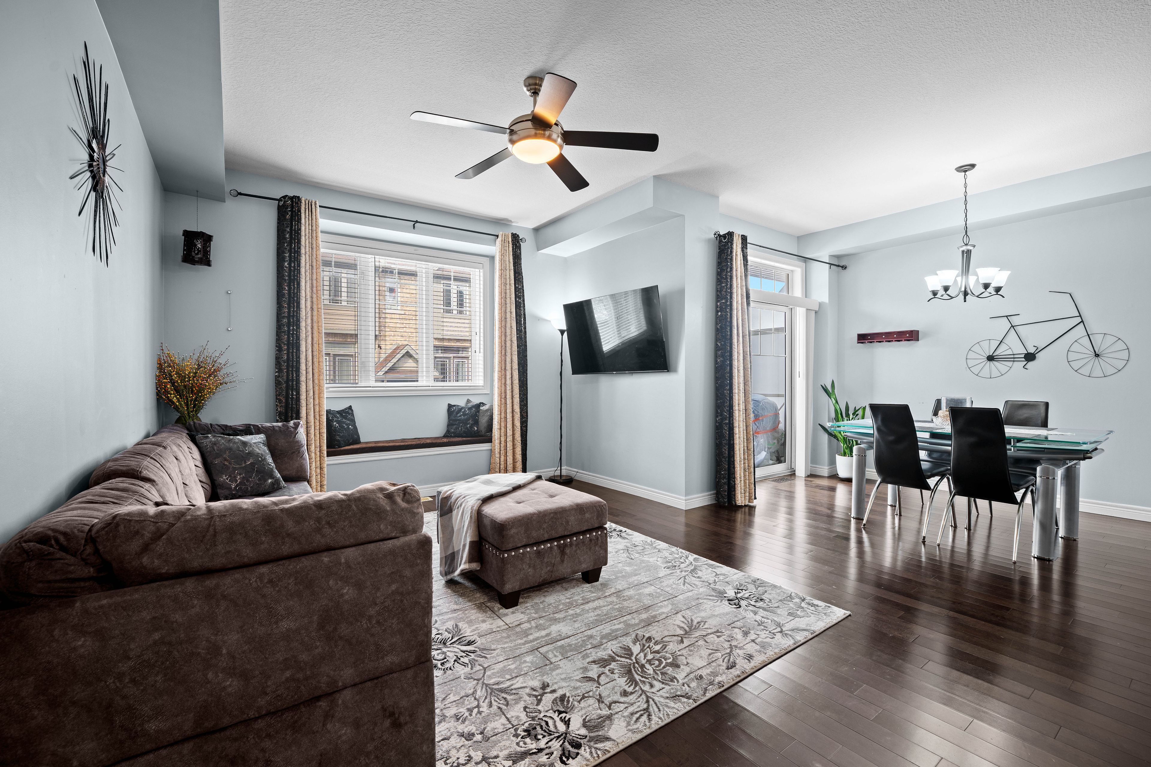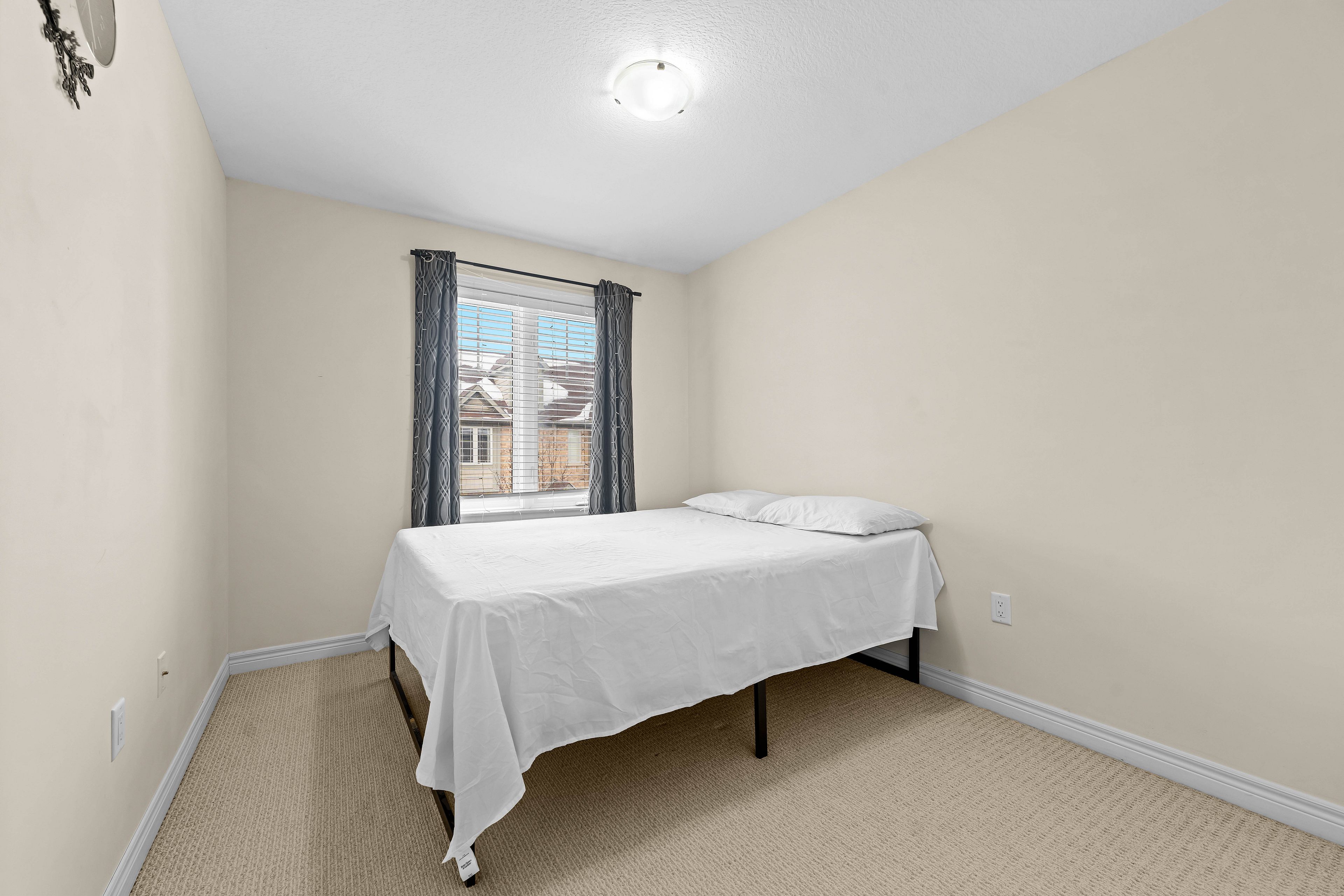 Welcome to this beautiful 2-bedroom, 3-storey townhouse nestled in a quiet, family-friendly complex. Located in a welcoming neighbourhood with a park directly across the street, this home offers the perfect blend of comfort and convenience. The open-concept layout is ideal for modern living, featuring a bright living space, a quartz counter top with a breakfast bar, and a walkout balcony perfect for morning coffee or evening relaxation. The bedroom level laundry adds everyday convenience right where you need it. A spacious den at the entrance provides incredible flexibility-ideal for a home office, play area, or additional living space. Recent updates include a new a/c and furnace, offering peace of mind for years to come. Situated in an area known for excellent schools and a strong sense of community, this home is perfect for first-time buyers, professionals, or investors alike. A fantastic opportunity in a truly friendly neighbourhood- don't miss it!