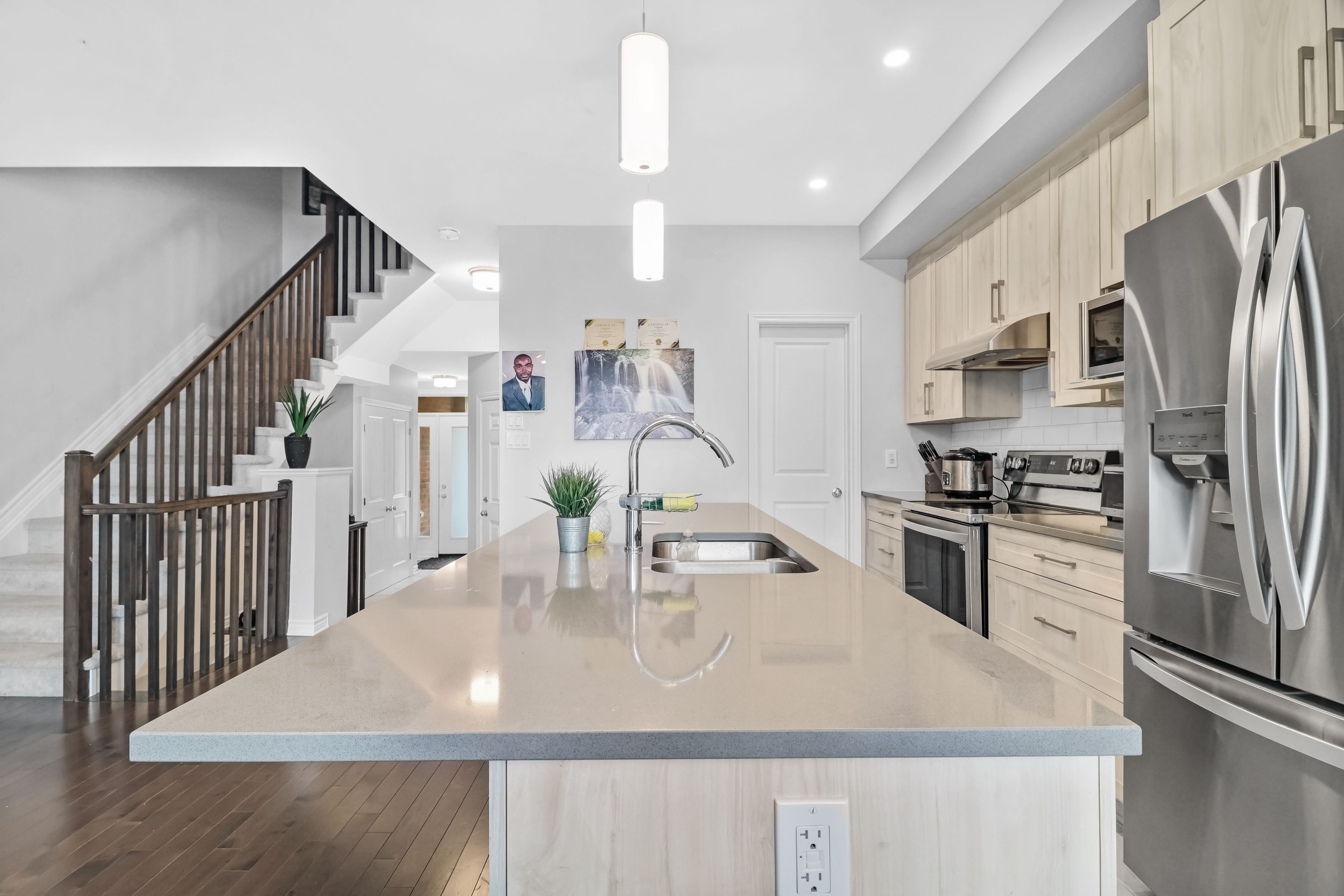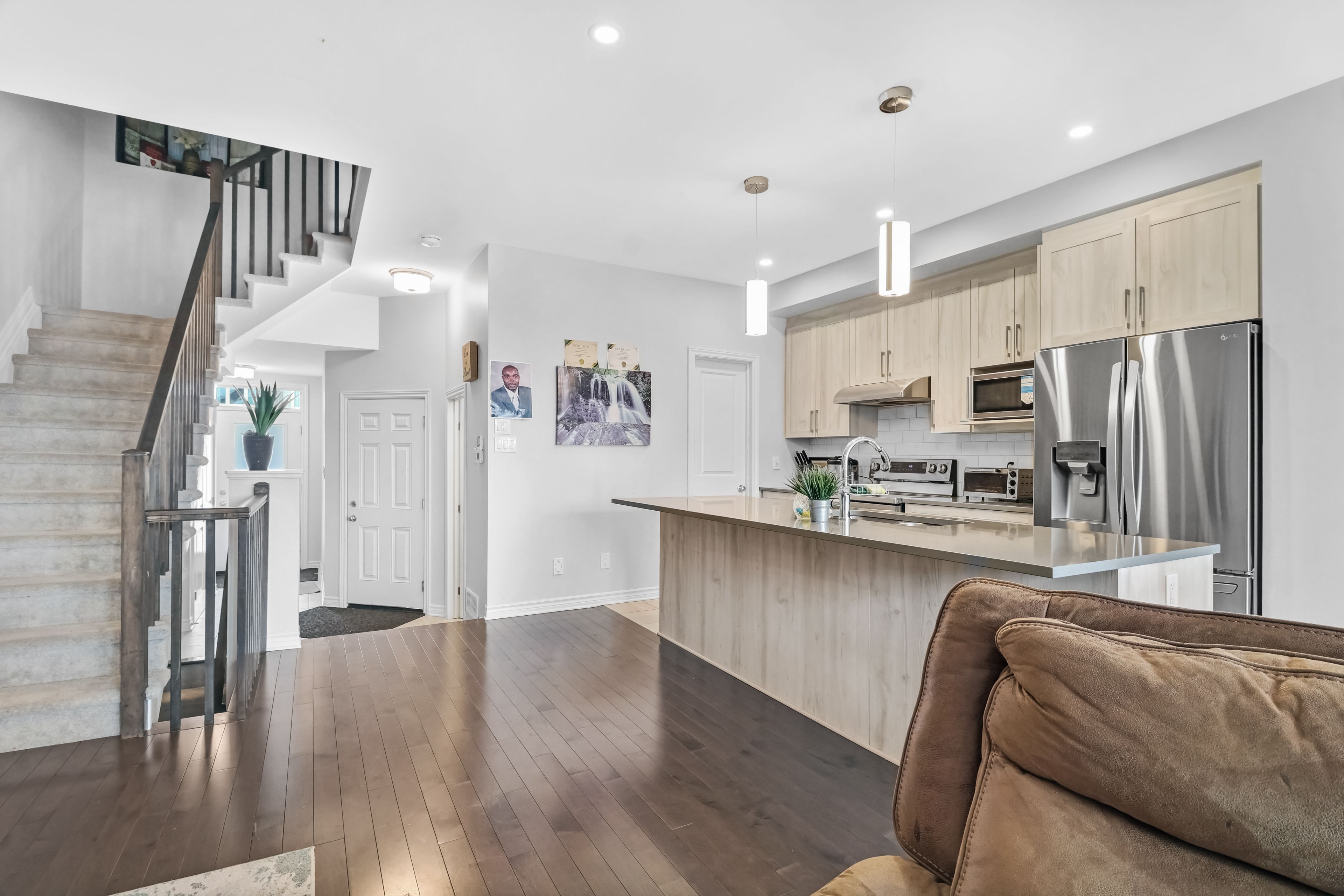 Welcome to a beautiful tamarack-built townhouse nestled in the sought-after cardinal creek village in orleans, ideally located close to parks and family-friendly amenities. As you step through the front door, you are greeted by a spacious and inviting living and dining area, perfect for both everyday living and entertaining. The main floor also features a modern kitchen complete with a large island, stainless steel appliances, a convenient powder room, and direct access to the garage. From the main level, step out into a beautiful backyard, offering the perfect space for outdoor relaxation and gatherings. On the second level, you will find a well-designed layout offering three generously sized bedrooms, including a primary bedroom with a large walk-in closet and a private ensuite. This level also includes a convenient laundry room equipped with a pedestal and additional storage space. Two additional bedrooms and another full bathroom complete the upper floor. The fully finished basement adds valuable extra living space, ideal for a family room, home office, or recreation area. Don't miss out-book your private showing today!