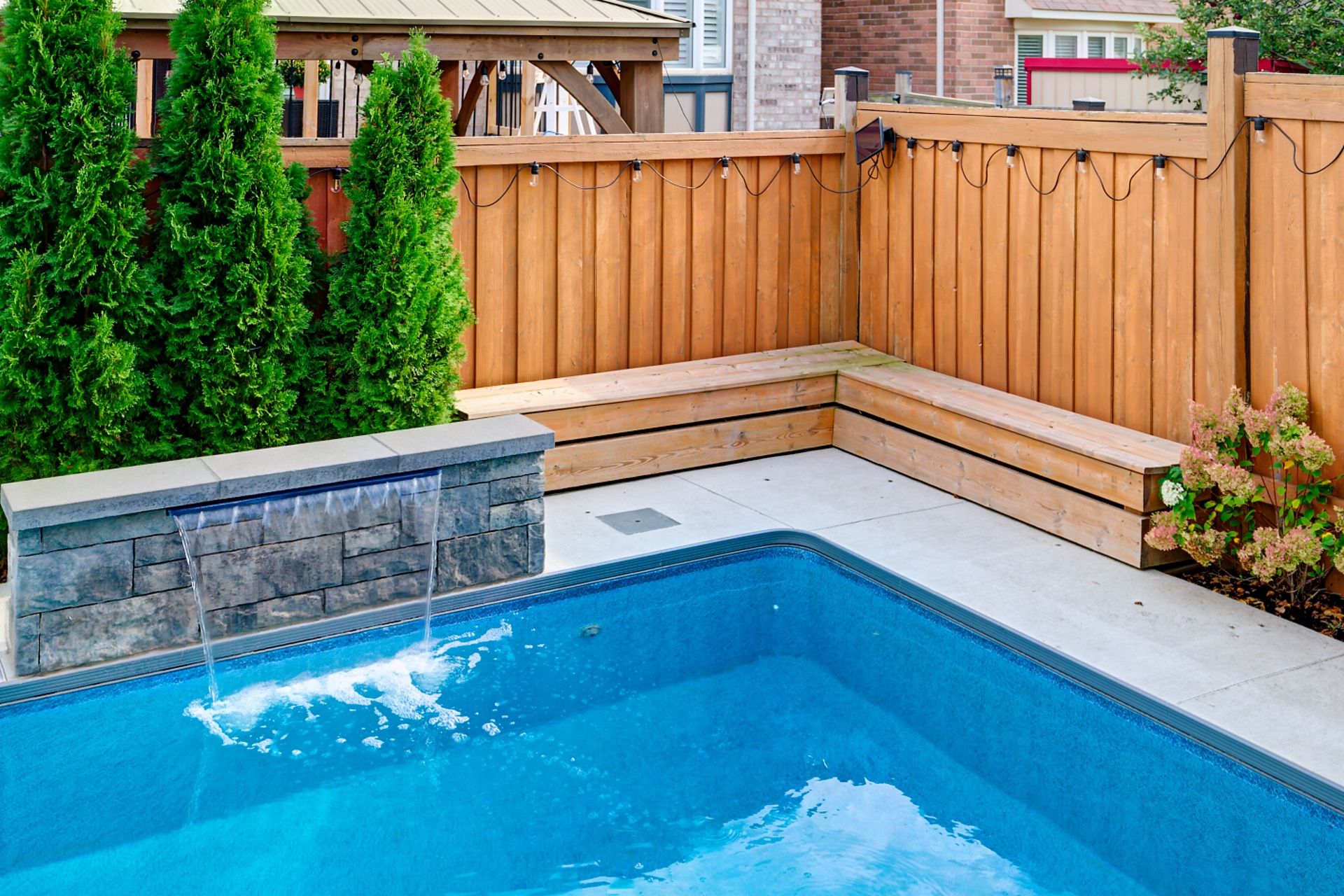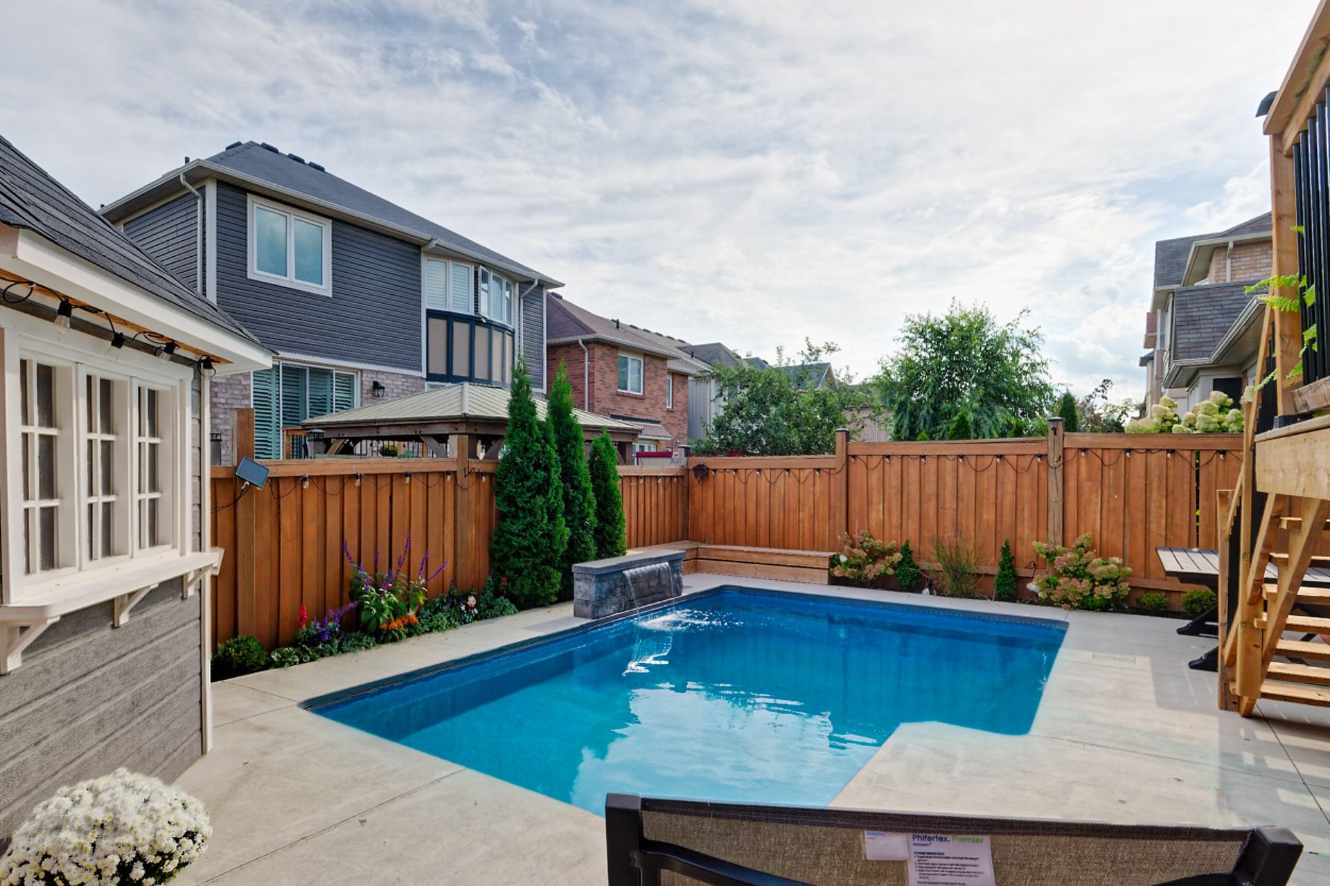 • Private backyard features a sparkling in-ground pool for summer fun.
