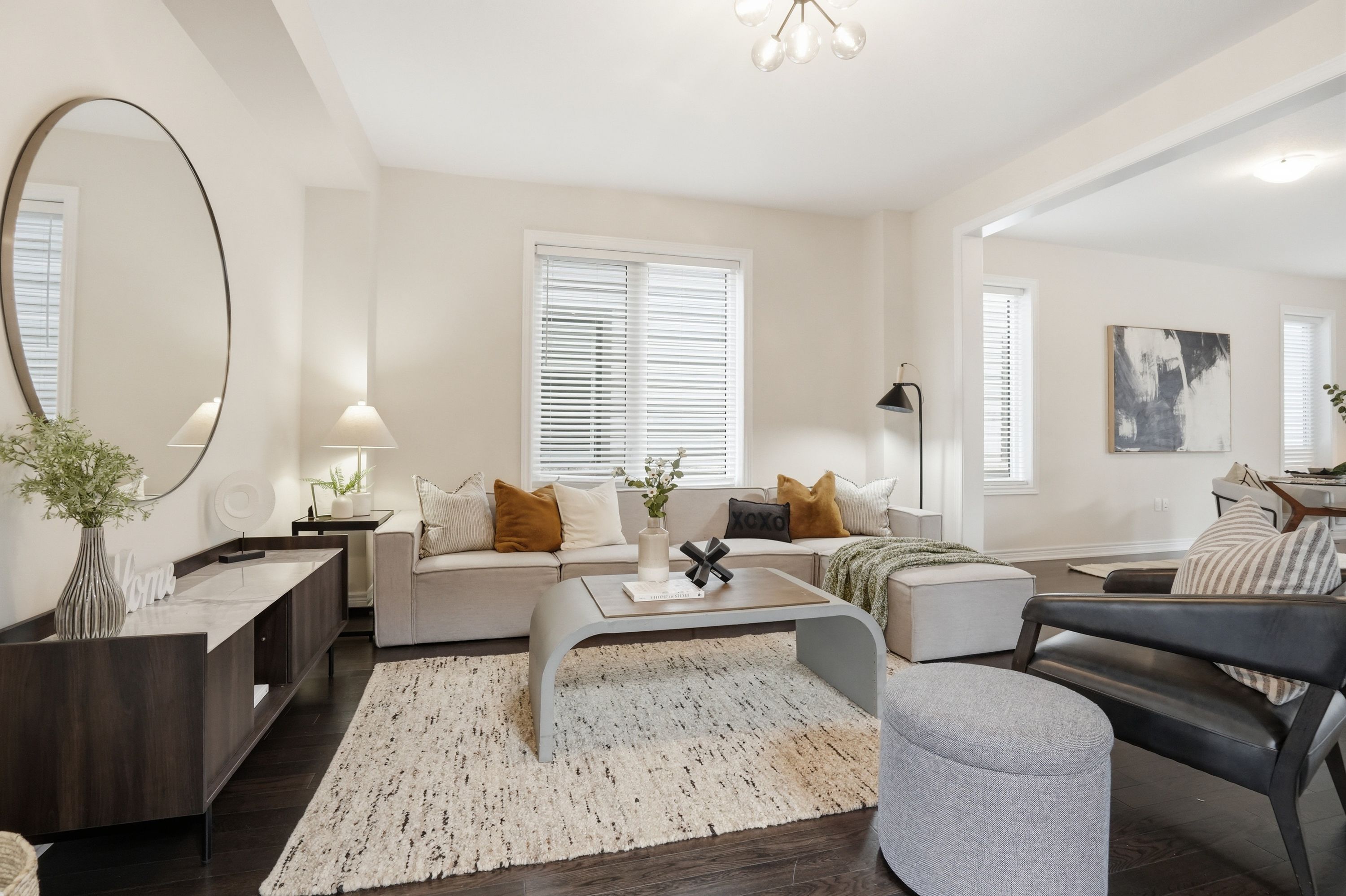 • Open-concept main floor with bright living and dining areas.