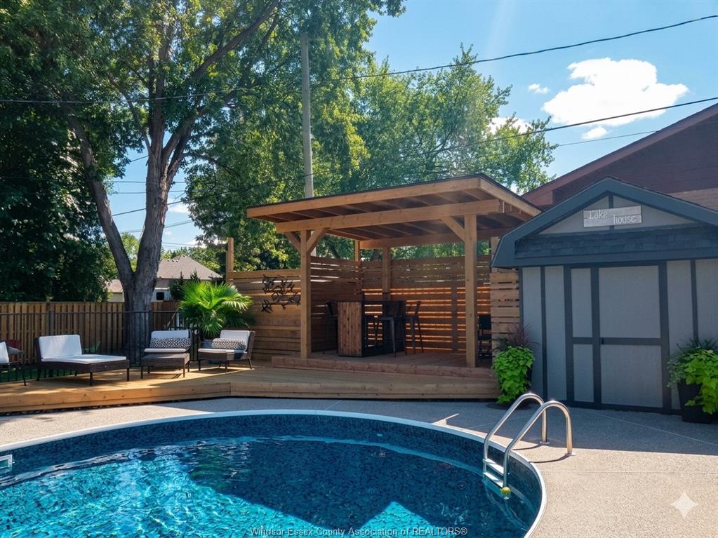 • Private backyard oasis featuring a pool, deck, and gazebo for gatherings.