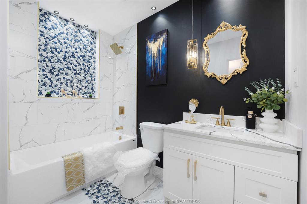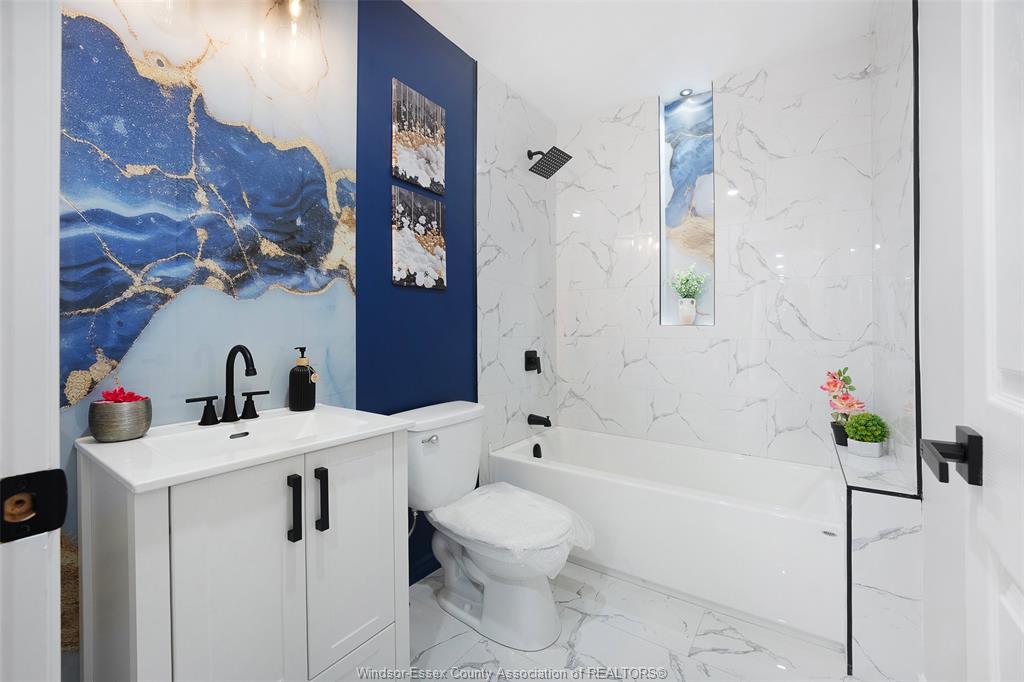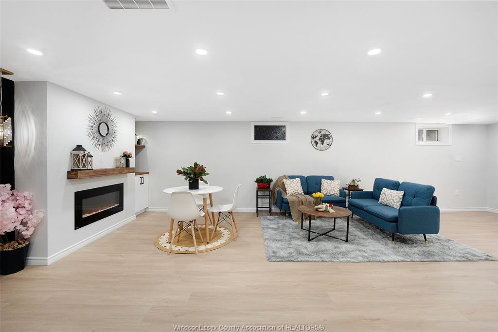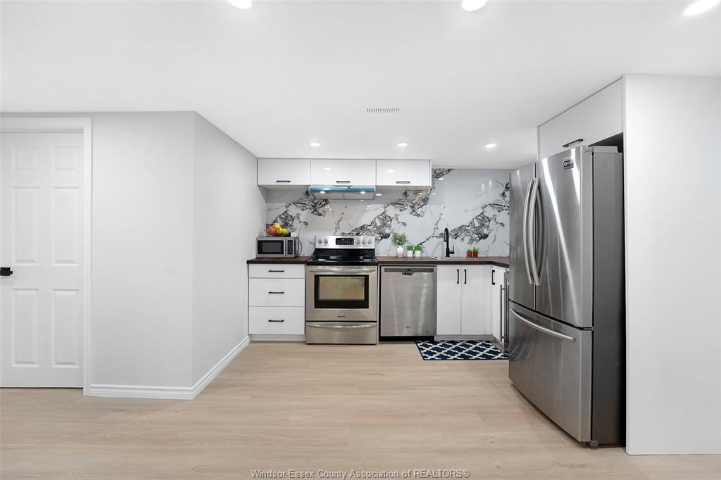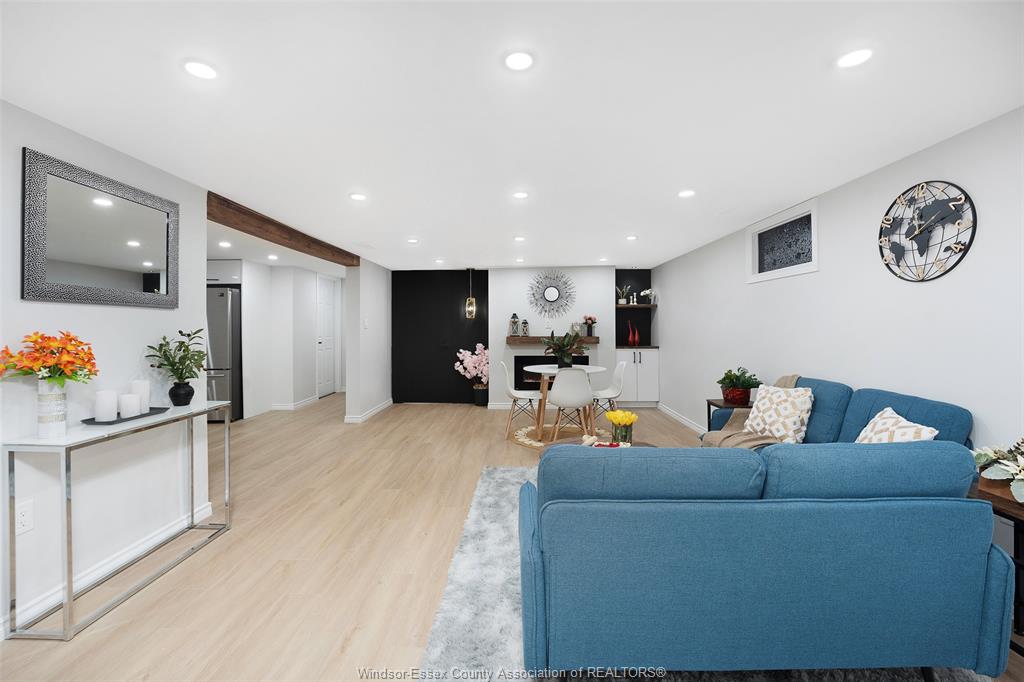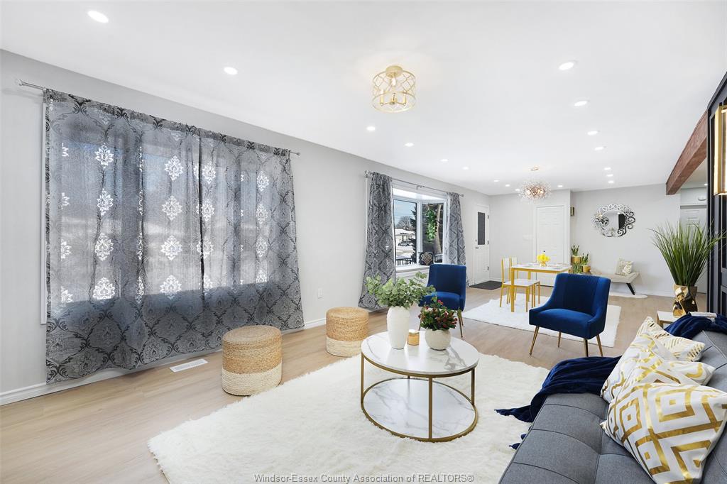 neighbourhood. Step inside to a luxury open-concept layout with breathtaking finishes, top-of-the-line flooring, & over 100 brand-new light fixtures throughout. The living room features three custom-made accent walls, including pvc panelling, electric fireplace, wood beam and mantel. Elegant open concept kitchen/dining with granite countertops, mona sara diamond backsplash, an oversized island with seating for three, brand-new custom soft-close cabinetry, complete with stainless steel appliances and wine cooler. Main floor also features a master bedroom with ensuite bathroom, 2 more bedrooms and a full guest bathroom. Lower level offers a family room complete with a stunning accent wall with electric fireplace, beautifully designed pvc panelling hidden door to lower level primary bedroom, custom-made kitchen/wet bar, two bedrooms, full bathroom, dining room and laundry/utility room. 13 appliances included! Highly desired heated multi-car garage featuring epoxy flooring. Designed for year-round use with ample space for multiple vehicles, storage, or a workshop. Huge double concrete driveway. Fully fenced and private backyard with no rear neighbours and mature trees. Upgraded plumbing/hvac. This home is loaded with updates, updates sheet attached in docs tab. Home inspection report in docs tab. Close proximity to shopping, schools, parks, & all essential amenities.