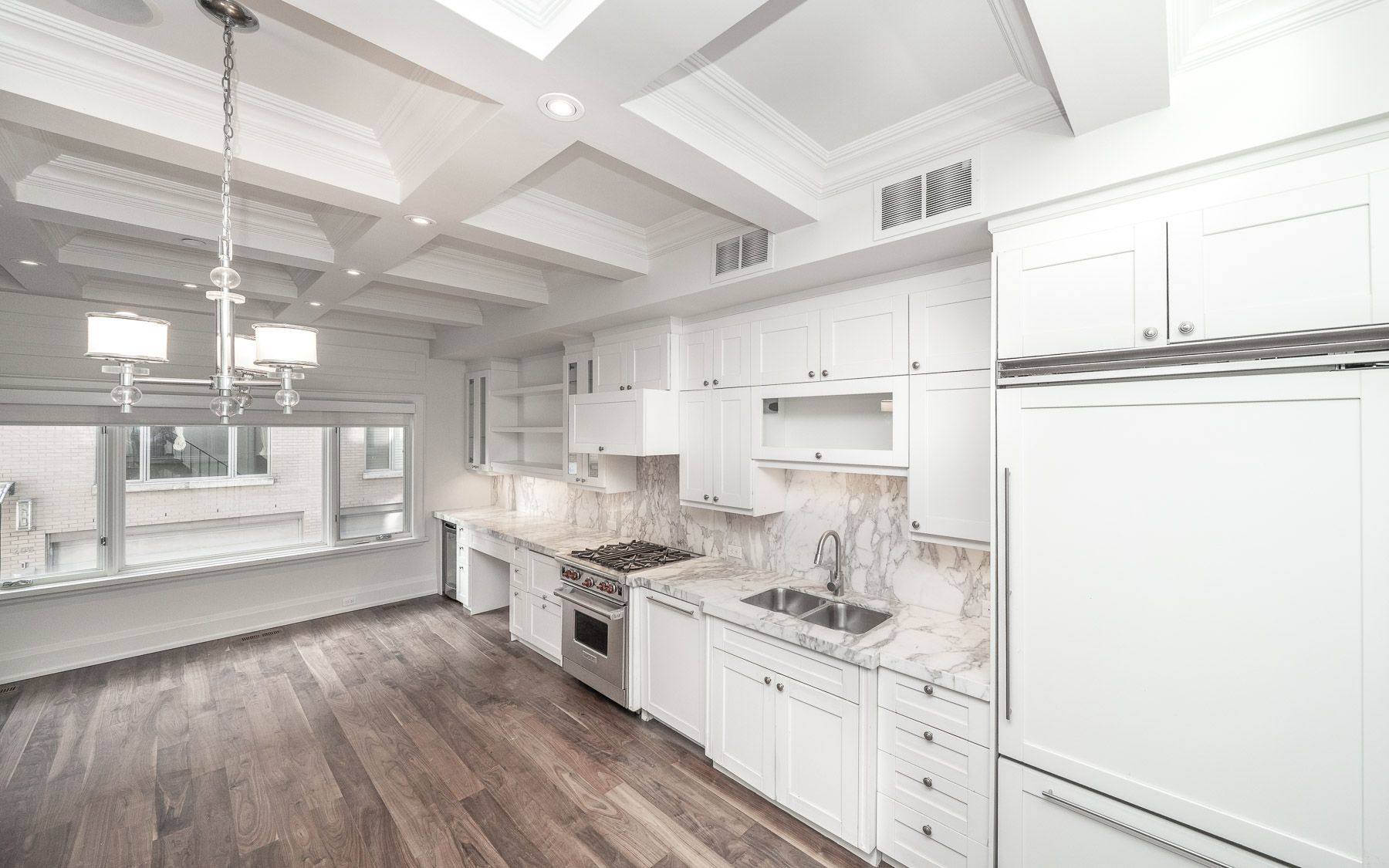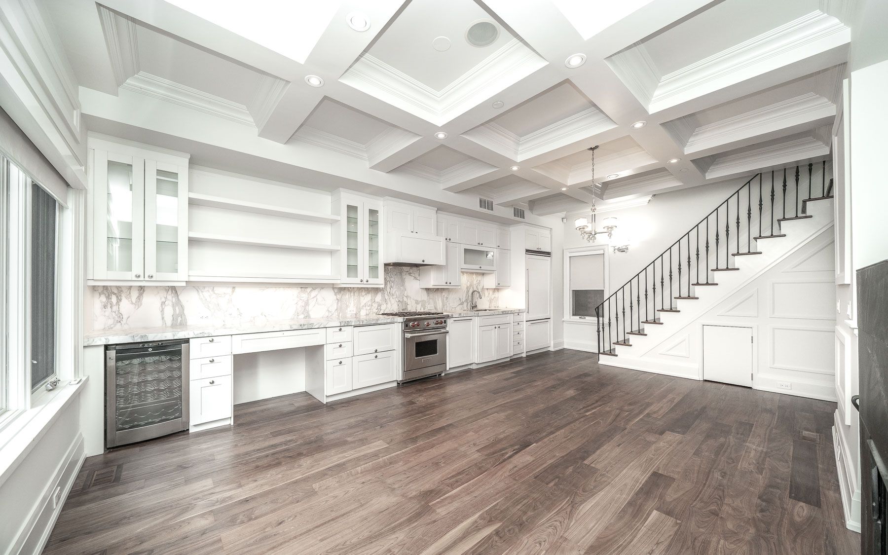 • Elevator access and 10' coffered ceilings create upscale living.