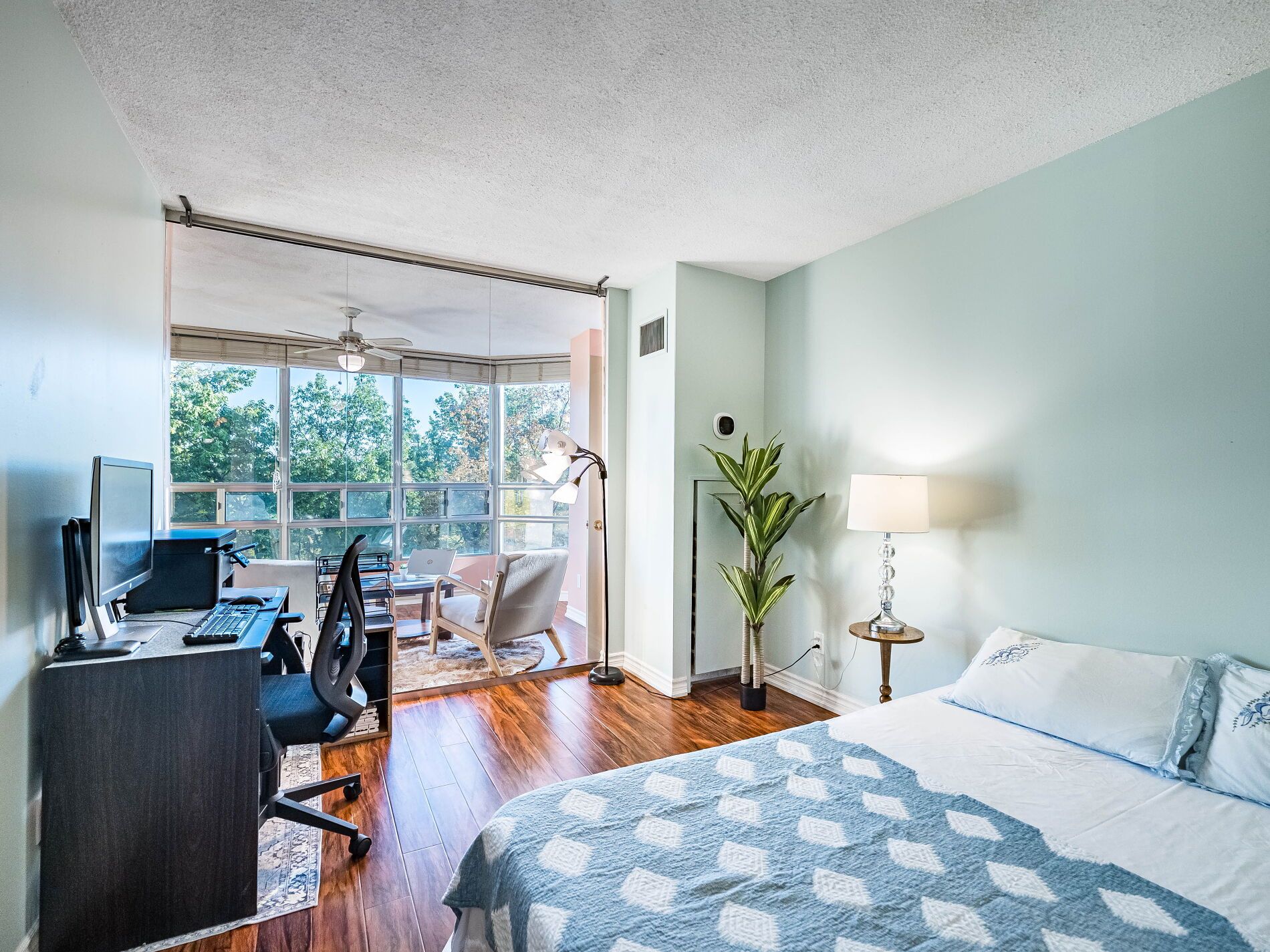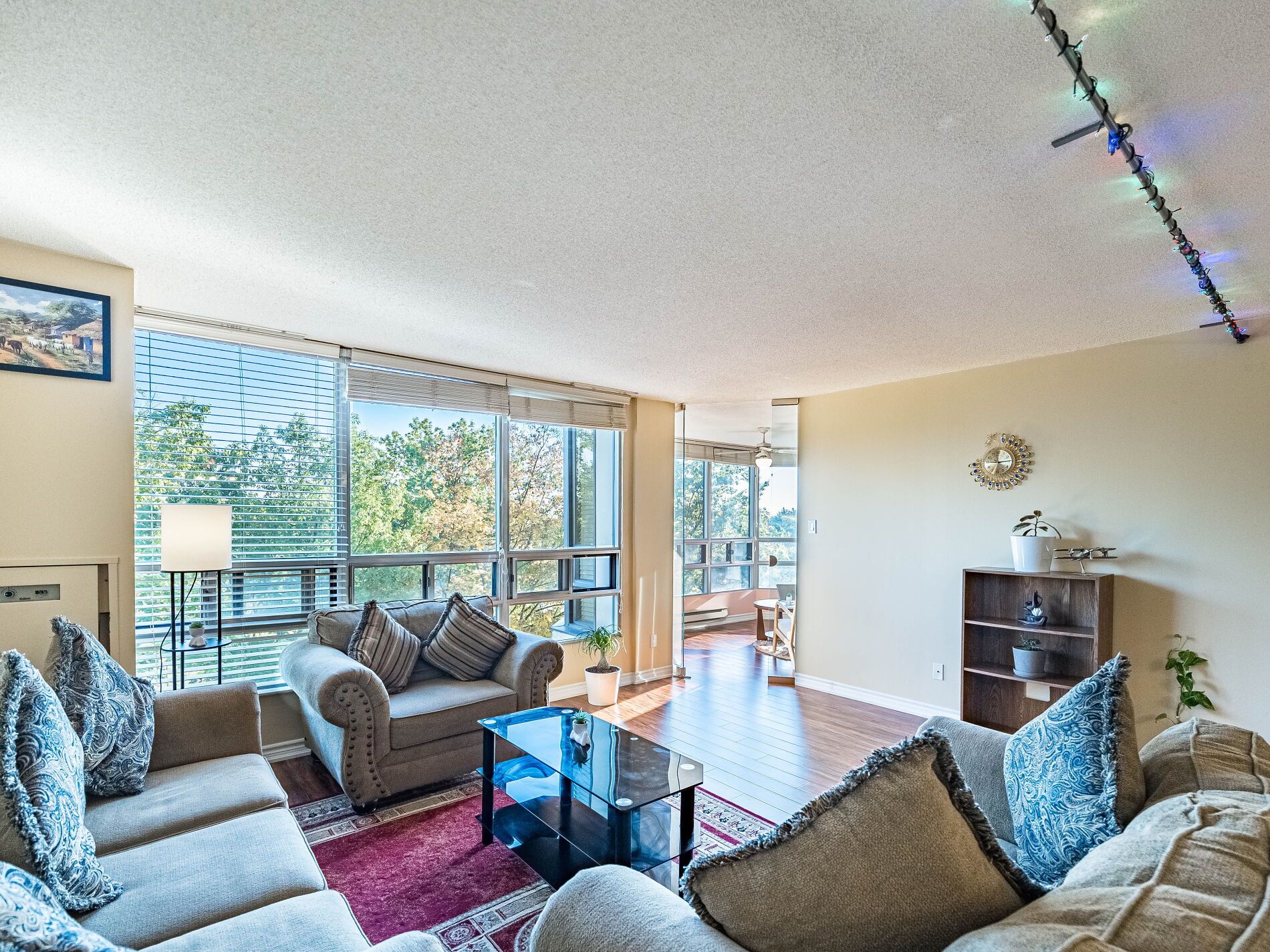 Welcome home to pinnacle i where comfort meets nature. Nestled above the peaceful etobicoke creek ravine, this beautifully cared-for suite at pinnacle i offers the perfect blend of space, light, and lifestyle. This home feels open and inviting from the moment you step inside. The bright, spacious layout showcases stunning east views through large windows that fill the home with natural light. The open-concept living and dining areas create an easy flow for both relaxing and entertaining. A separate solarium enclosed by glass doors provides a quiet space for a home office, reading nook, or cozy retreat flexible for whatever life brings your way. You'll find two generous bedrooms and two full bathrooms, including a comfortable primary suite with double closets and a private ensuite featuring a separate shower. Practical touches include an in-suite laundry room, one underground parking space, and one storage locker for your convenience. At pinnacle i, residents enjoy a welcoming community and outstanding amenities including 24-hour concierge, an updated indoor pool, saunas, two fitness rooms, a tennis court, games and crafts rooms, and beautifully landscaped outdoor areas with bbqs and seating for gatherings with friends and family. Set in a quiet, well-established neighbourhood, this location truly has it all close to gage park, sheridan college, shopping, dining, go transit, major highways, golf courses, and miles of scenic walking and biking trails. Live surrounded by nature, community, and comfort the perfect place to call home.