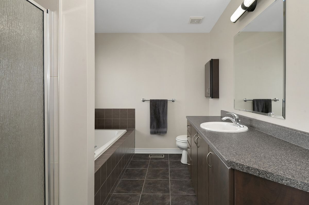 On a quiet street surrounded by parks and great schools, this former model single family home has been meticulously maintained and offers space, light, and thoughtful updates designed for comfortable family living. Featuring 3 bedrooms and 2. 5 bathrooms, the home sits on an extra deep lot with a new backyard deck, creating the perfect setting for summer barbecues, outdoor dining, and relaxing evenings. The open concept main floor is filled with natural light from large windows and showcases beautiful hardwood flooring throughout. A spacious living room and traditional dining area provide elegant entertaining space, while the heart of the home unfolds at the back, a large updated kitchen (2025) with patio doors overlooking the backyard. Just beside it, the inviting family room with a gas fireplace creates a cozy gathering space for everyday living. A convenient powder room and main floor laundry add practical function to the layout. Upstairs, hardwood flooring installed in 2025 continues throughout the second level. The bright and generous primary bedroom features a walk-in closet and a private updated 4 piece ensuite. Two additional well sized bedrooms and an updated full bathroom complete the upper level. The fully finished basement (2025) expands your living space with a versatile recreation area and includes a rough in for a future bathroom, offering flexibility for growing families or future customization. Some of the recent updates include roof shingles (2022), garage door (2023), finished basement (2025), second level hardwood (2025), and kitchen update ( new countertops, backsplash, sink, tile flooring 2025). New ac (2025). Both bathrooms have retiled floor and tub surround. A warm, move in ready home where comfort, care, and location come together beautifully. Additional upgrades are the finished garage and the front entrance interlock. Upgrade list attached