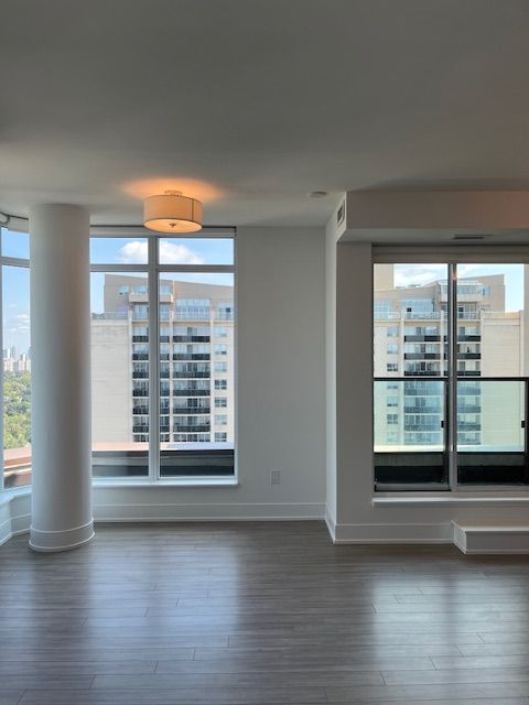 "the heathview" is morguard's award winning community where daily life unfolds w/remarkable style in one of toronto's most esteemed neighbourhoods forest hill village! *spectacular 2br 2bth n/e corner suite w/balcony+high ceilings! *abundance of windows+light w/panoramic lake+cityscape views! *unique+beautiful spaces+amenities for indoor+outdoor entertaining+recreation! *approx 953'! **extras** b/i fridge+oven+cooktop+dw+micro,stacked washer+dryer,elf,roller shades,laminate,quartz,bike storage,optional parking $195/mo,optional locker $65/mo,24hrs concierge++