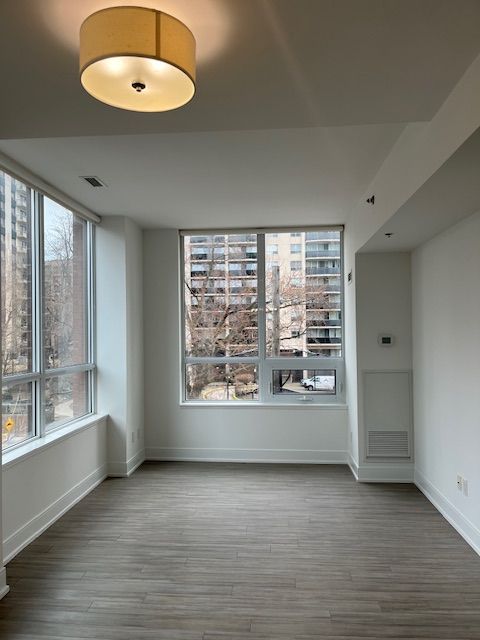 "the heathview" is morguard's award winning community where daily life unfolds w/remarkable style in one of toronto's most esteemed neighbourhoods forest hill village! *spectacular low floor 1+1br 1bth n/e corner suite w/high ceilings overlooking the courtyard+streetscape! *abundance of wrap around windows+light w/lush treetop views! *unique+beautiful spaces+amenities for indoor+outdoor entertaining+recreation! *approx 671'! **extras** stainless steel fridge+stove+b/i dw+micro,stacked washer+dryer,elf,roller shades,laminate,quartz,bike storage,optional parking $195/mo,optional locker $65/mo,24hrs concierge++