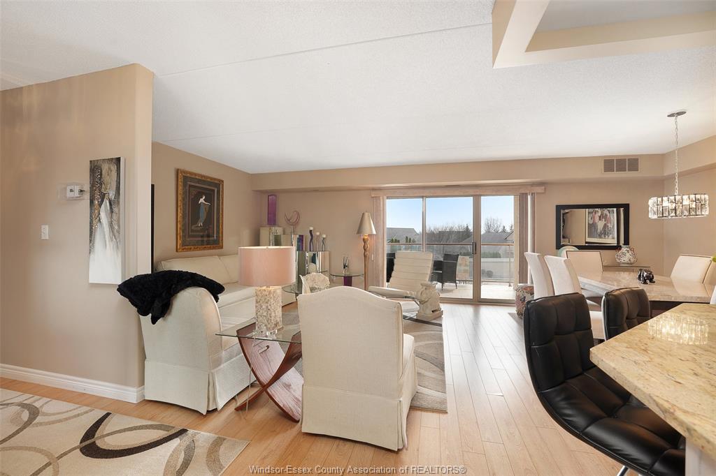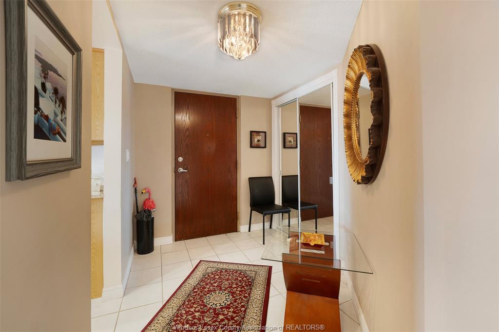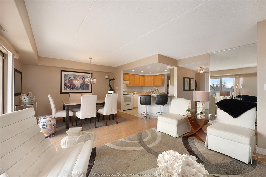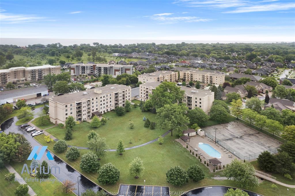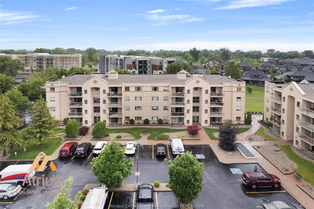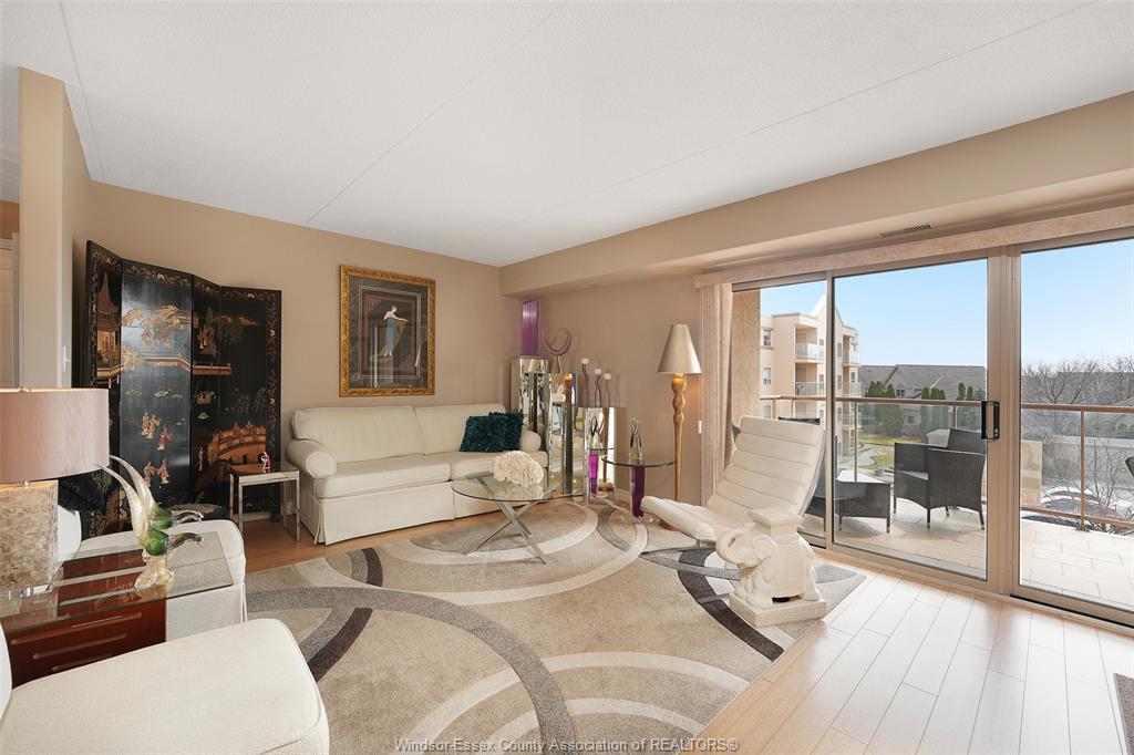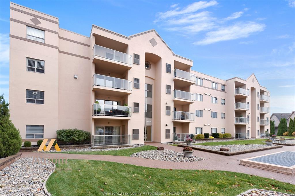 Experience refined, maintenance-free living in the prestigious st. Clair beach/tecumseh community, ideally situated within the highly sought-after village grove—just steps from lakewood park, boutique shopping, banking, professional services, and an array of dining options. This stylish corner residence showcases two-bedroom, two-bathroom, an upgraded kitchen featuring oak cabinetry, granite countertops, and bright & modern pot lighting (no fluorescent ceiling). Spacious open concept living & dining room with mirror accent walls to boost the natural light from the wide patio doors. South facing tiled balcony offers additional living space to enjoy outdoor entertaining all summer long. The primary suite boasts a walk-in closet and a private ensuite, while in-suite laundry with additional storage enhances everyday convenience. Residents enjoy the benefits of dual entrances (east and west), each serviced by its own elevator, and only four suites per floor per side— ensuring privacy and exclusivity. Underground parking and a dedicated storage locker are included. Exceptional amenities complete the offering, including an outdoor pool, tennis / pickle ball courts, a stylish party room with a full kitchen, and a well-appointed fitness centre with sauna. Elevate your lifestyle in a residence that perfectly balances comfort, convenience, and sophistication.