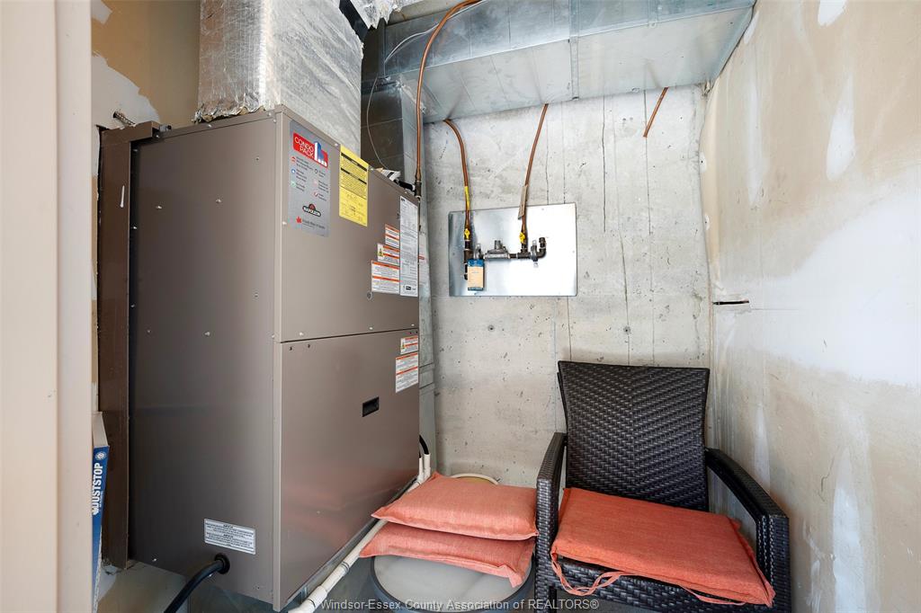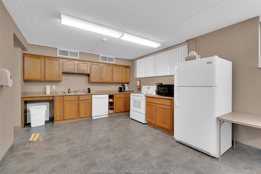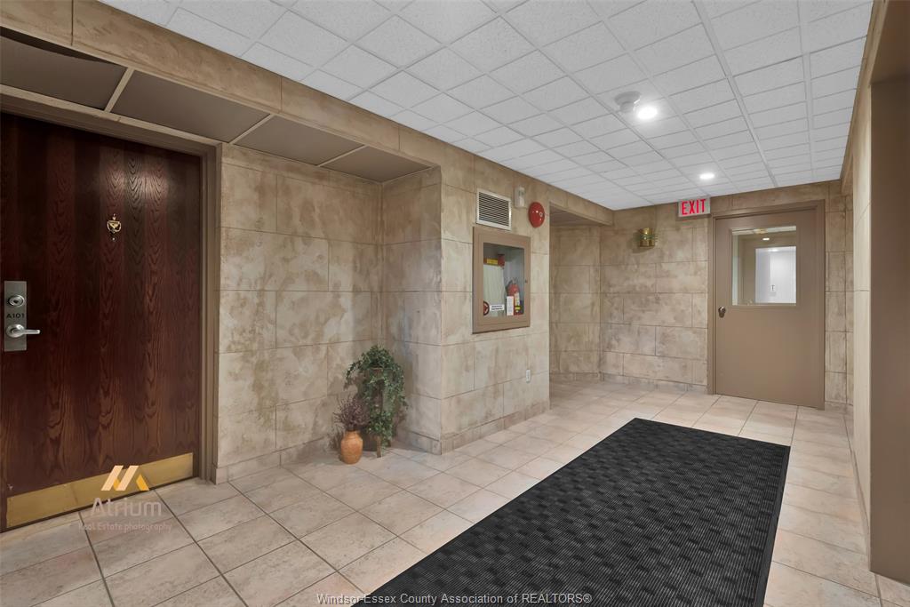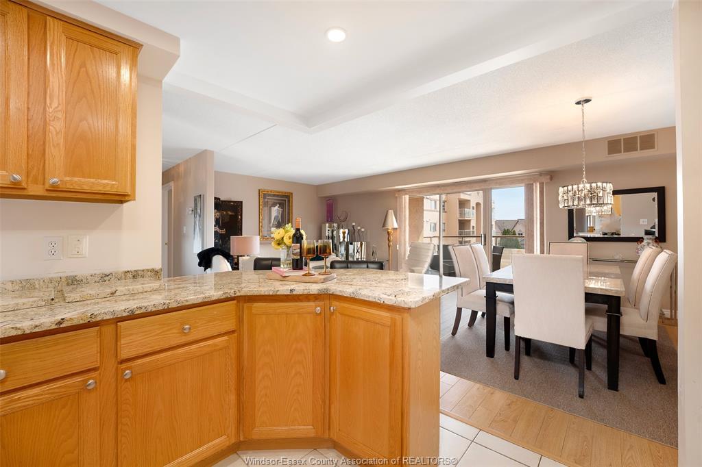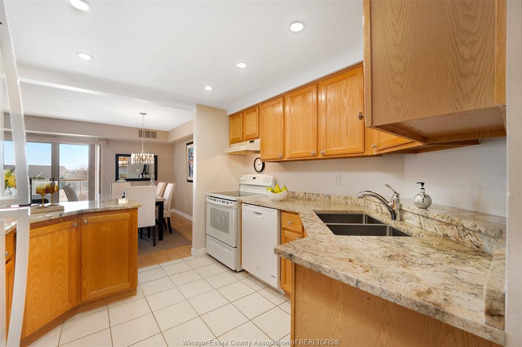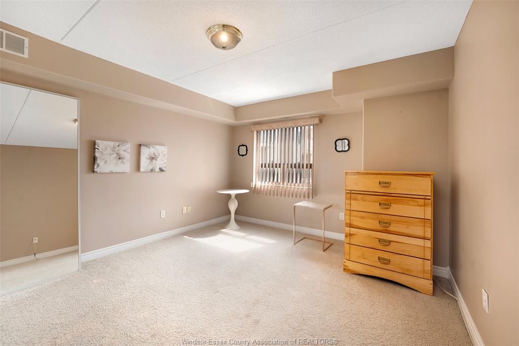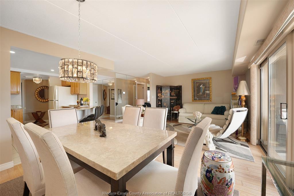 Experience refined, maintenance-free living in the prestigious st. Clair beach/tecumseh community, ideally situated within the highly sought-after village grove—just steps from lakewood park, boutique shopping, banking, professional services, and an array of dining options. This stylish corner residence showcases two-bedroom, two-bathroom, an upgraded kitchen featuring oak cabinetry, granite countertops, and bright & modern pot lighting (no fluorescent ceiling). Spacious open concept living & dining room with mirror accent walls to boost the natural light from the wide patio doors. South facing tiled balcony offers additional living space to enjoy outdoor entertaining all summer long. The primary suite boasts a walk-in closet and a private ensuite, while in-suite laundry with additional storage enhances everyday convenience. Residents enjoy the benefits of dual entrances (east and west), each serviced by its own elevator, and only four suites per floor per side— ensuring privacy and exclusivity. Underground parking and a dedicated storage locker are included. Exceptional amenities complete the offering, including an outdoor pool, tennis / pickle ball courts, a stylish party room with a full kitchen, and a well-appointed fitness centre with sauna. Elevate your lifestyle in a residence that perfectly balances comfort, convenience, and sophistication.