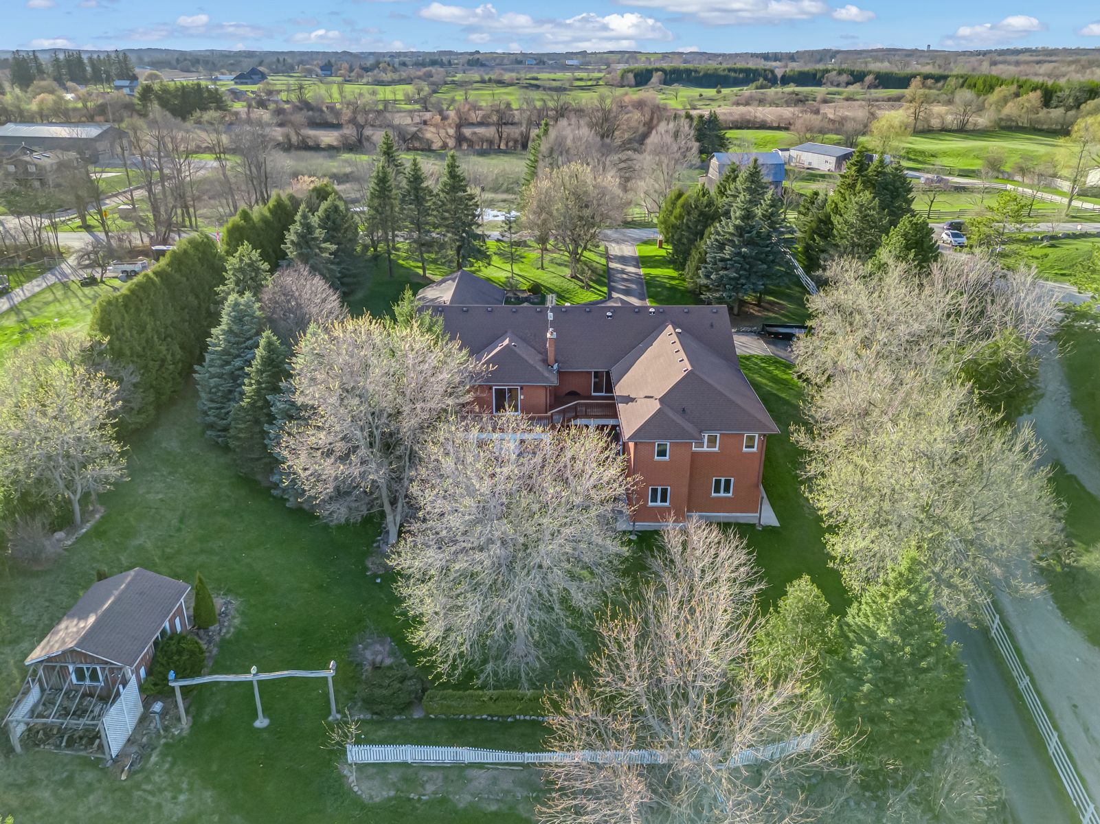 Set on 7. 5 acres of picturesque countryside, this impressive 7,325 sq ft estate combines timeless elegance with modern comfort. Spread across two expansive levels, the home features engineered oak hardwood floors, a stunning herringbone foyer, grand arched entryways, and freshly painted interiors throughout. Upgrades include new bathroom countertops, sinks, and stylish hardware finishes for a contemporary touch. With 9-foot ceilings on both levels, the open-concept layout offers exceptional versatility-featuring 6 bedrooms, 6 bathrooms, 2 full kitchens, and 2 laundry rooms. The fully finished walkout basement is its own self-contained living space with a private kitchen, laundry, and multiple separate entrances-ideal for rental income, multigenerational living, or an in-law suite. Designed for those who love indoor-outdoor living, the home offers multiple walkouts leading to a wraparound deck overlooking the grounds. The property also includes a 24' x 40' outbuilding (ideal for shop/garage space), three storage sheds, a charming gazebo, and a peaceful pond complete with a paddleboat. A perfect blend of sophistication and rural tranquillity-your private retreat awaits.