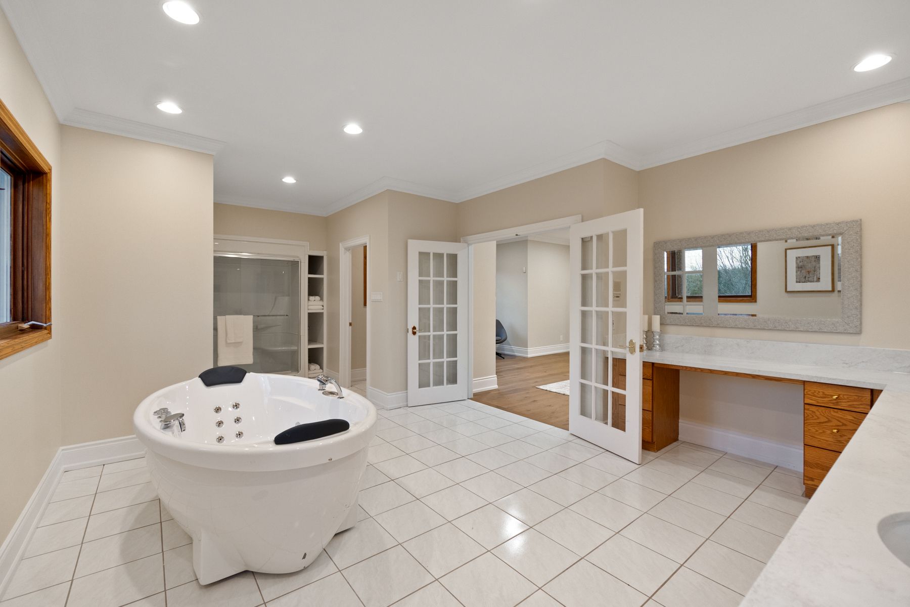 • Multiple walkouts lead to a wraparound deck with scenic views.