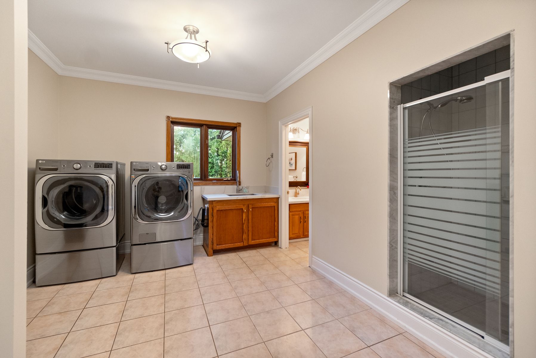 • Fully finished walkout basement serves as a self-contained living space.