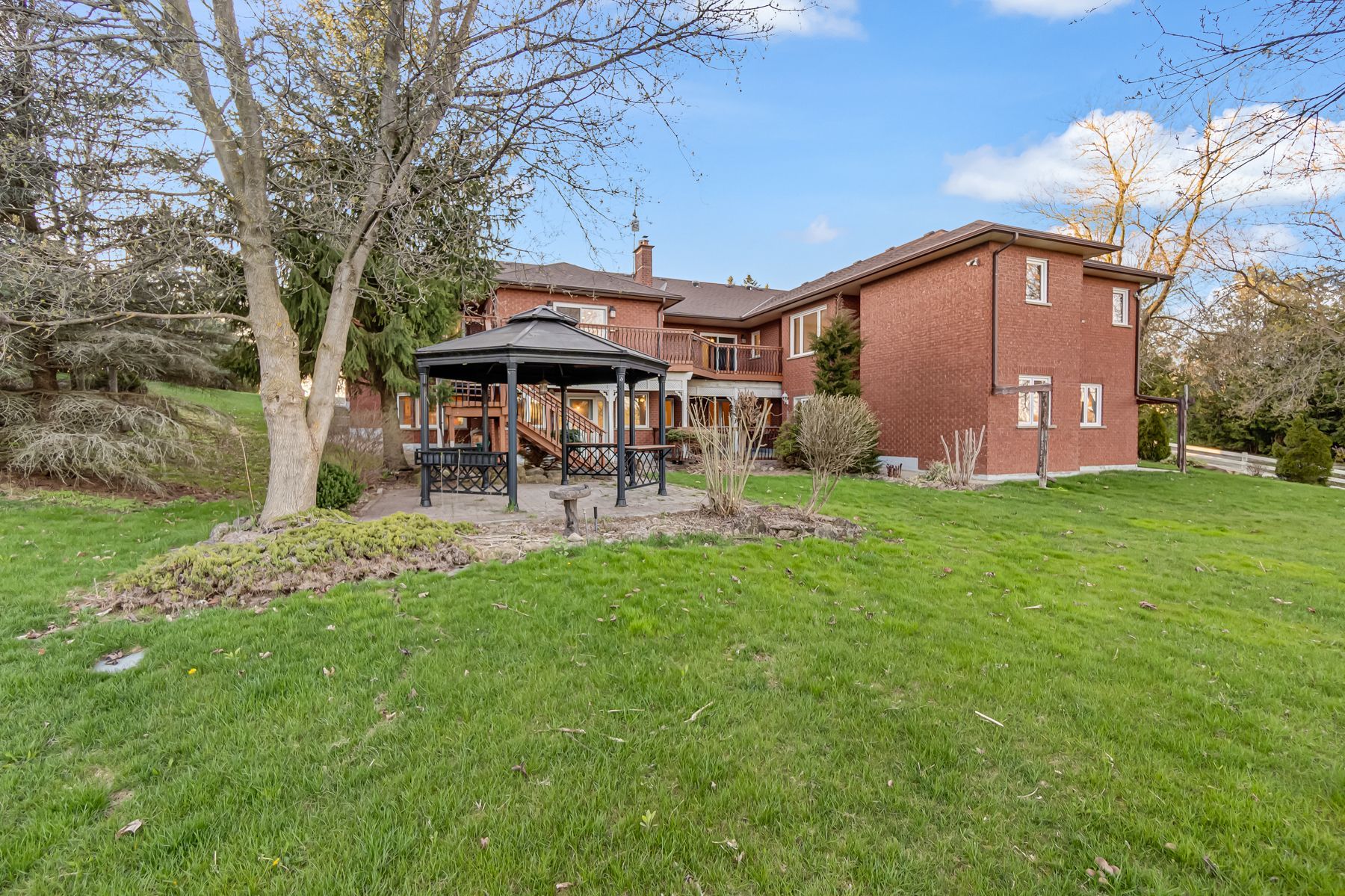 Set on 7. 5 acres of picturesque countryside, this impressive 7,325 sq ft estate combines timeless elegance with modern comfort. Spread across two expansive levels, the home features engineered oak hardwood floors, a stunning herringbone foyer, grand arched entryways, and freshly painted interiors throughout. Upgrades include new bathroom countertops, sinks, and stylish hardware finishes for a contemporary touch. With 9-foot ceilings on both levels, the open-concept layout offers exceptional versatility-featuring 6 bedrooms, 6 bathrooms, 2 full kitchens, and 2 laundry rooms. The fully finished walkout basement is its own self-contained living space with a private kitchen, laundry, and multiple separate entrances-ideal for rental income, multigenerational living, or an in-law suite. Designed for those who love indoor-outdoor living, the home offers multiple walkouts leading to a wraparound deck overlooking the grounds. The property also includes a 24' x 40' outbuilding (ideal for shop/garage space), three storage sheds, a charming gazebo, and a peaceful pond complete with a paddleboat. A perfect blend of sophistication and rural tranquillity-your private retreat awaits.
