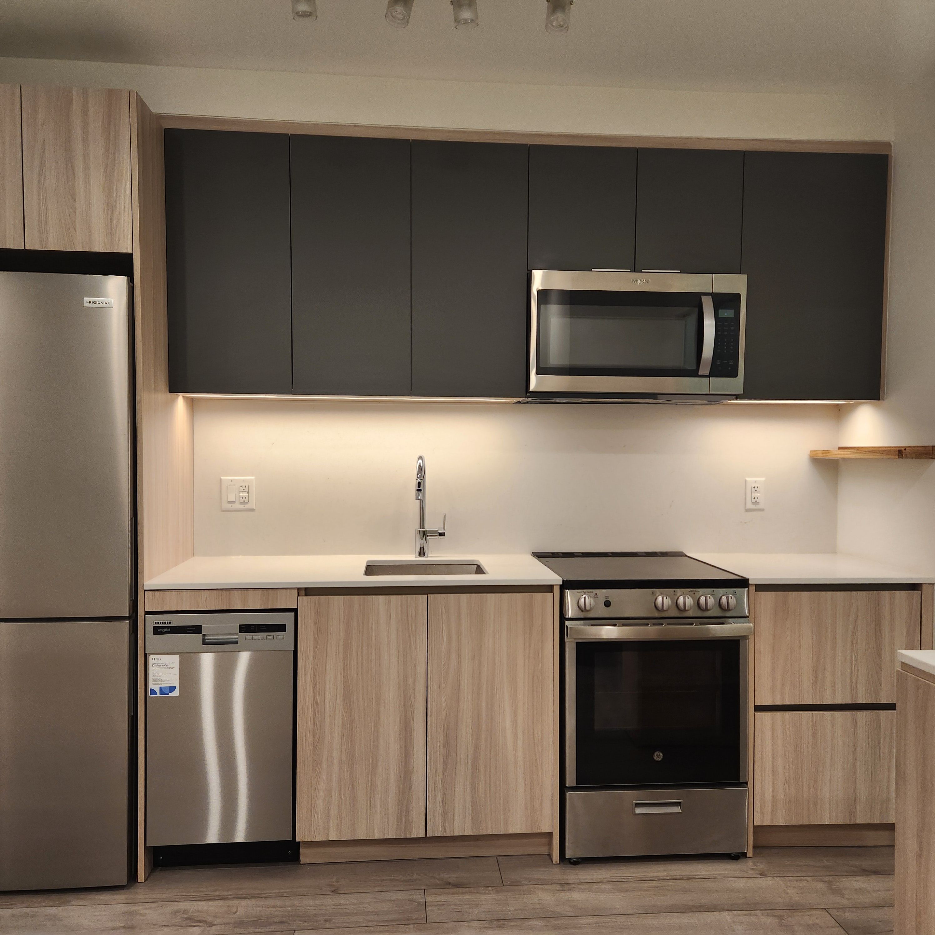 • Modern 2 bedroom, 2 bathroom condo with an open layout and pond views.