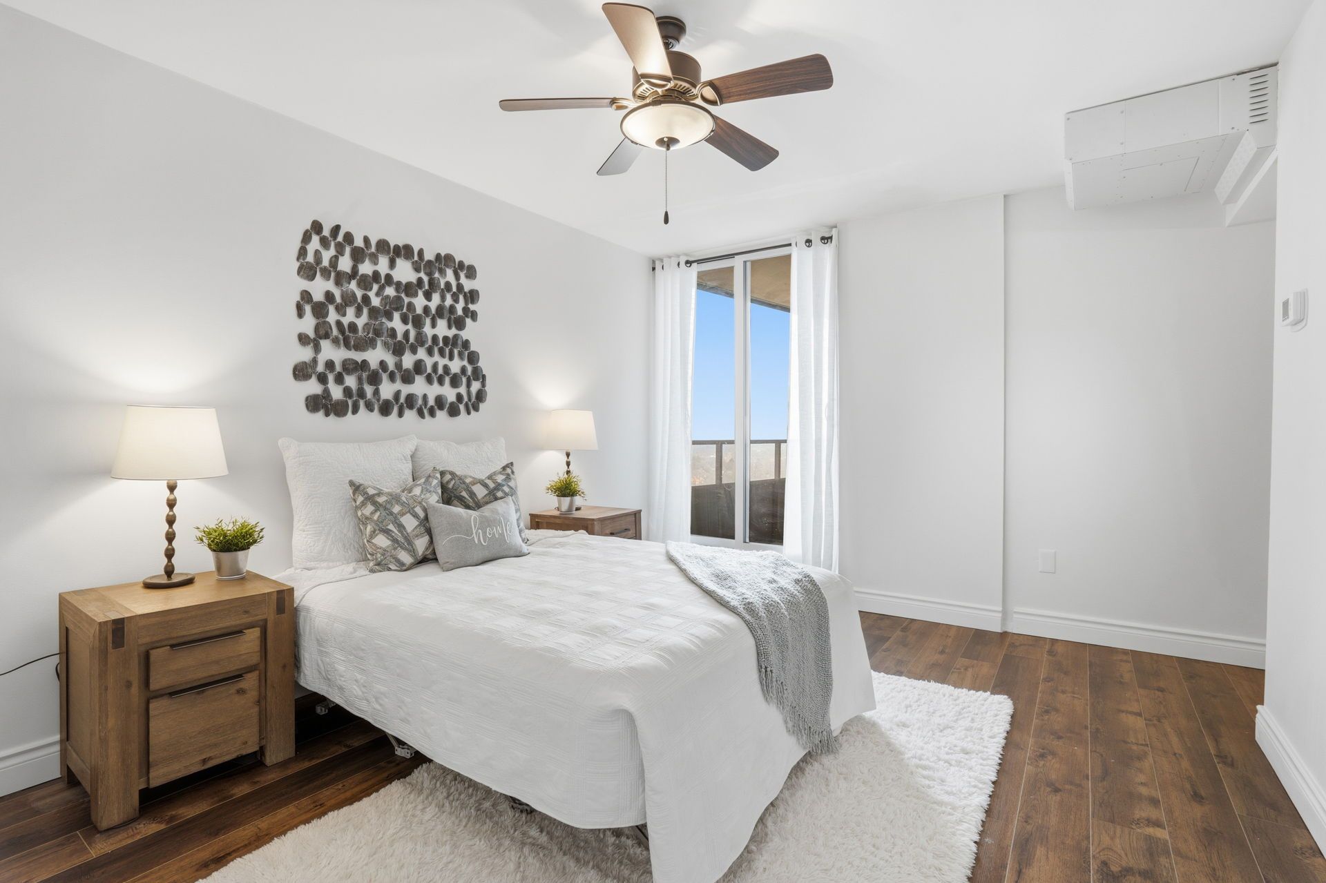 • Private balcony accessible from both living room and bedroom.