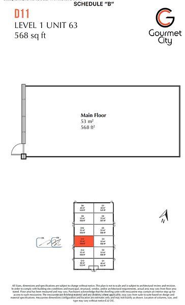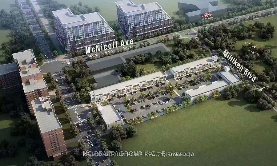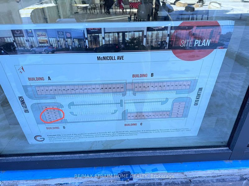 ** frontage signage on kennedy road *** gourmet city commercial condos is a newly developed culinary hub in scarborough, ideally located at the southeast corner of kennedy road and mcnicoll avenue. This project offers excellent exposure and accessibility from both kennedy road and milliken boulevard. Developed by h & h group, the plaza features modern architecture and high-quality finishes. The site benefits from high visibility and consistent foot traffic, making it ideal for a wide range of business opportunities. This is a brand-new unit with 20-foot high ceilings and in raw condition, ready for customization. The listing includes two combined units (d3 + d11), totaling 1,136 square feet (see floorplan). Permitted uses include restaurant, dine-in bakery, cafe, dessert shop, bubble tea, bar, and moreperfect for serving diverse cultural tastes. Just minutes from highways 404 and 407. (tax estimate $1485/mon, management fee $395/mon, insurance estimate $100/mon). Unit d11 faces kennedy road for prime visibility, while unit d3 faces the interior parking lot. Features include two entry doors and two electrical panels for flexible use. ***permitted uses include restaurant, dining in bakery , bar & more****