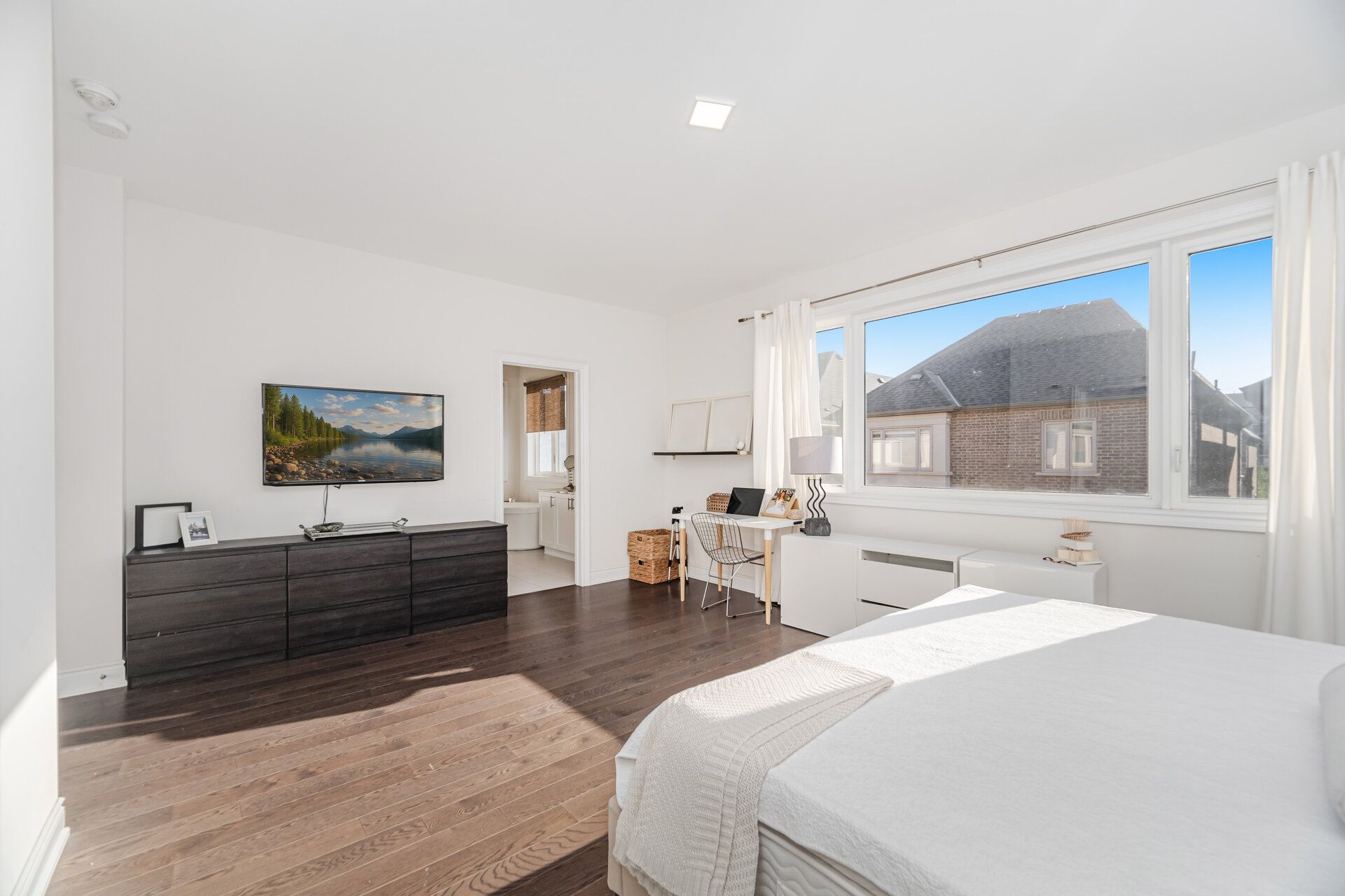 • Luxurious master ensuite with marble vanities and a soaking tub.