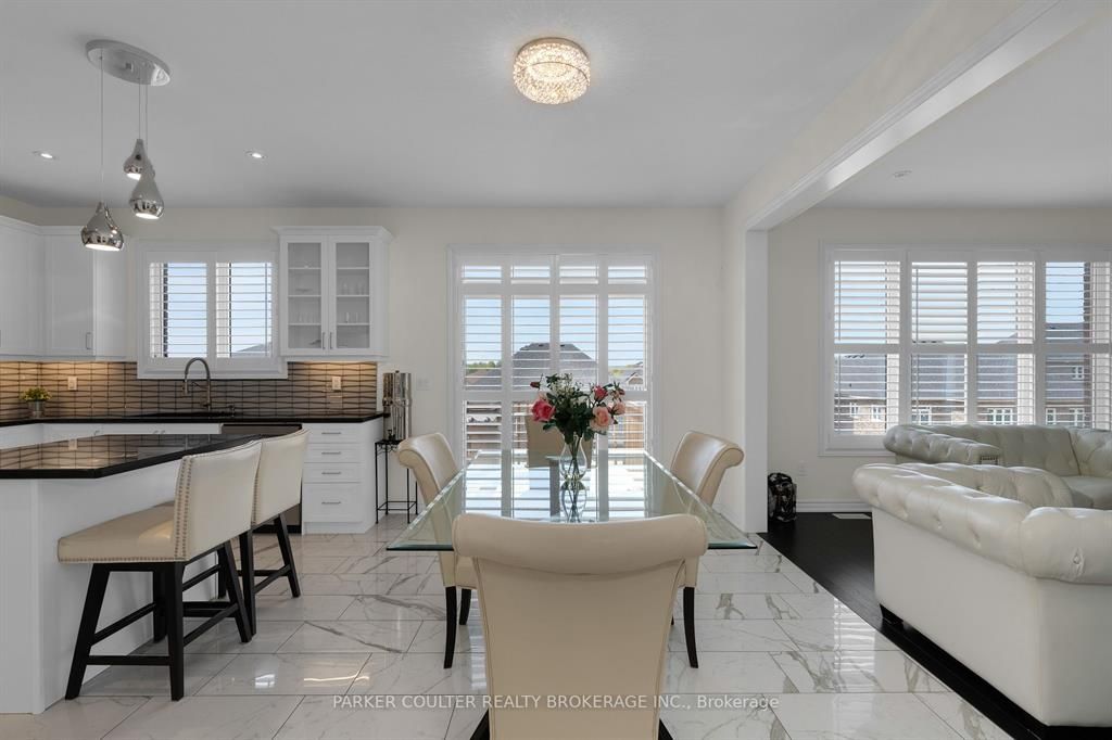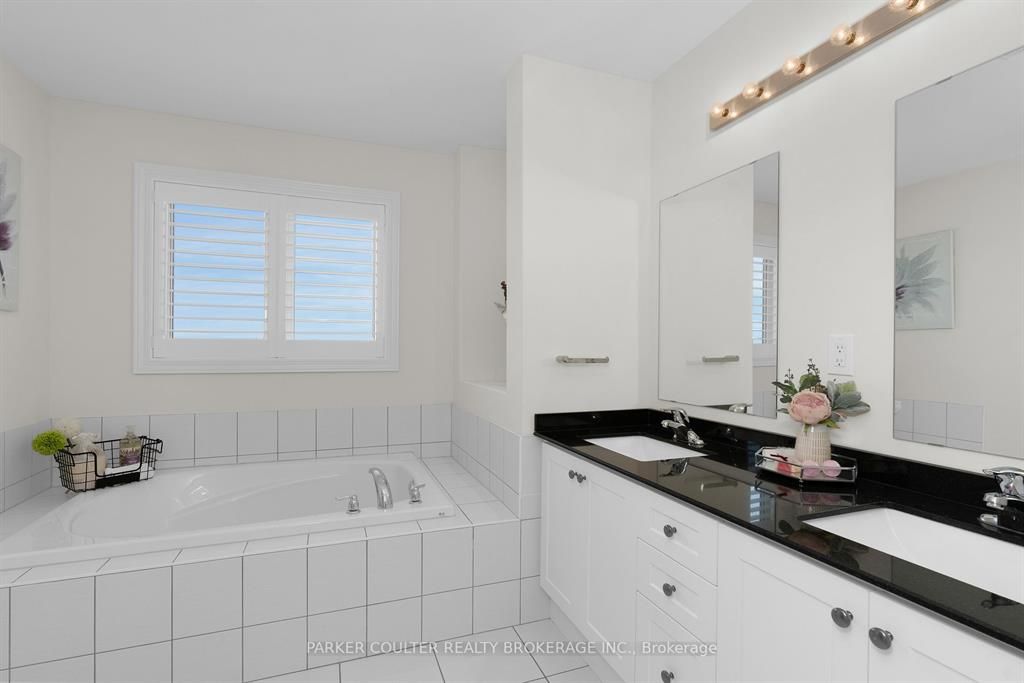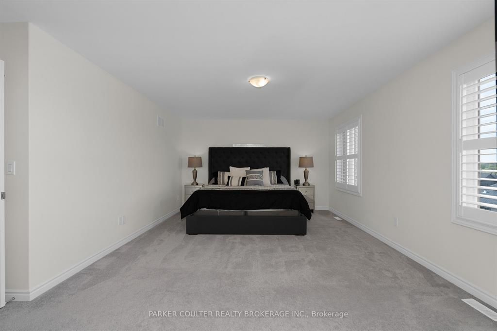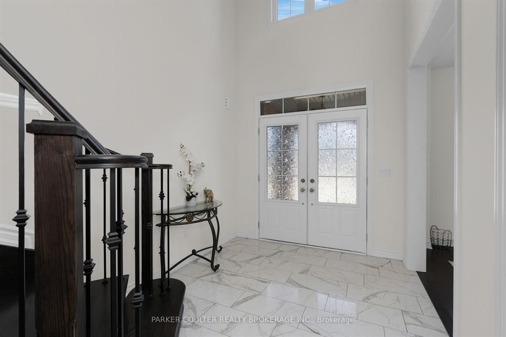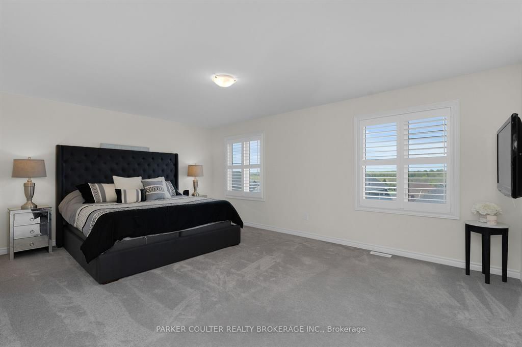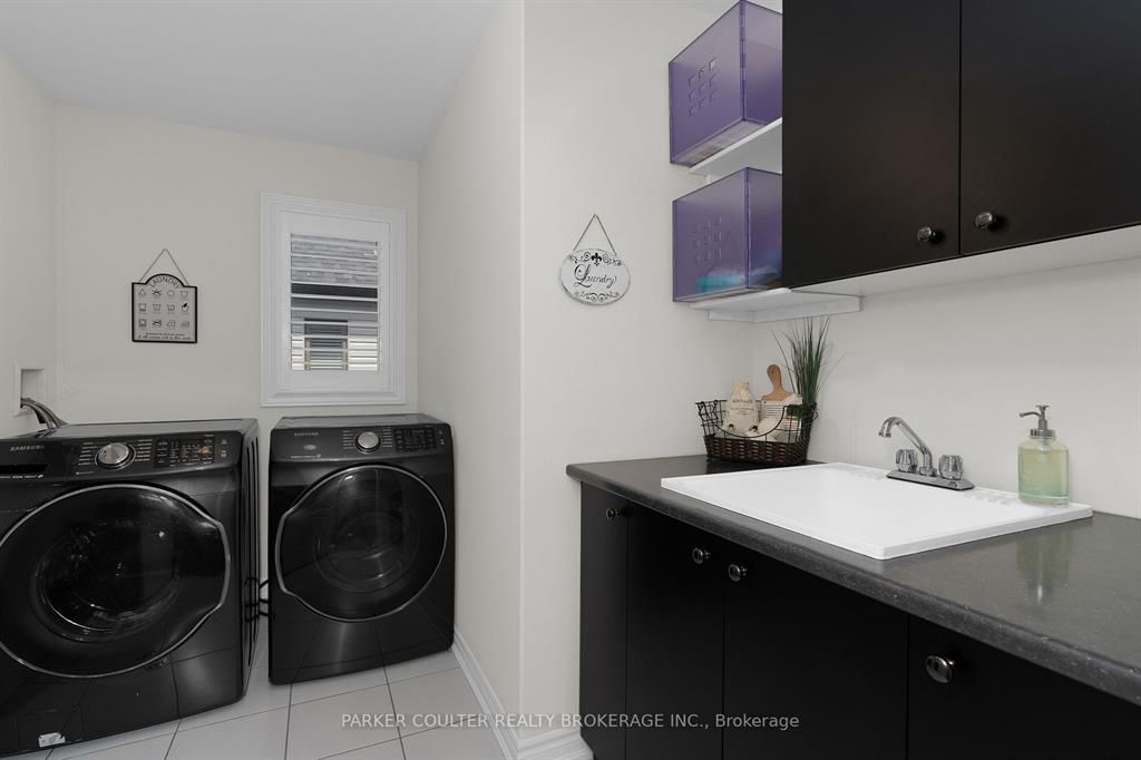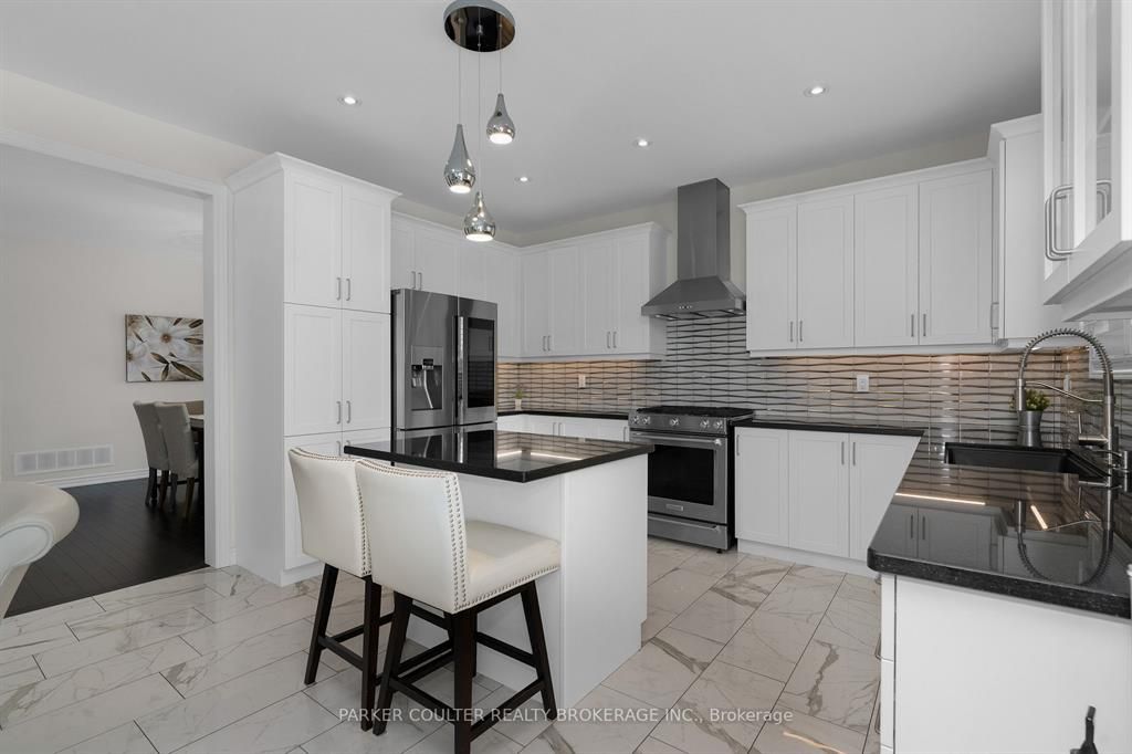 Immaculate two-storey home showcasing upgraded finishes throughout. This stunning property features upgraded light fixtures, a dual fuel gas range, samsung home hub refrigerator, interior and exterior pot lights, statutorio tile and engineered hardwood flooring, granite countertops, an undermount granite sink, and under-cabinet lighting in the kitchen. The main level is highlighted by a gas fireplace with an upgraded black marble surround, hardwired internet, 9 ft ceilings, a custom oak staircase with metal spindles, california shutters, and an oversized two-car garage complete with additional receptacles, an internet port, and a rough-in for an electric car charger. The second floor offers added convenience with a dedicated laundry room. The primary bedroom features his and her walk-in closets and a luxurious 5-piece ensuite. Additional highlights include a walkout basement with a full kitchen, a second primary bedroom with ensuite and walk-in closet, a basement laundry room, and a cold cellar. Located on orion boulevard in orillia, this home is set within a sought-after, family-friendly neighbourhood with easy access to parks, schools, shopping, and everyday amenities. Enjoy the balance of quiet residential living while being just minutes from lake simcoe, downtown orillia, and major commuter routes.