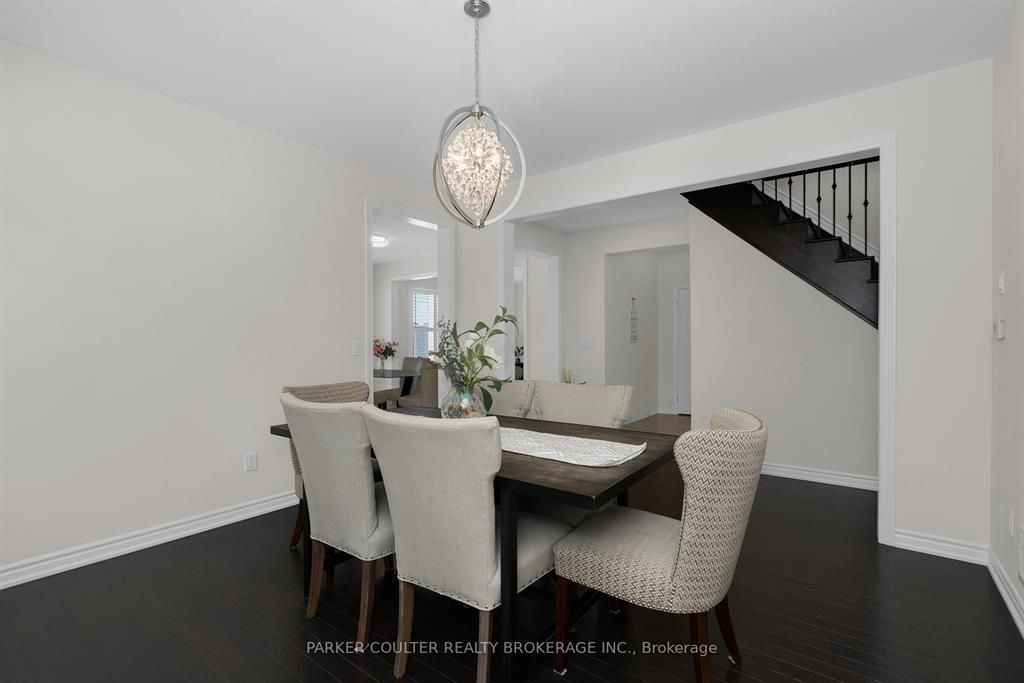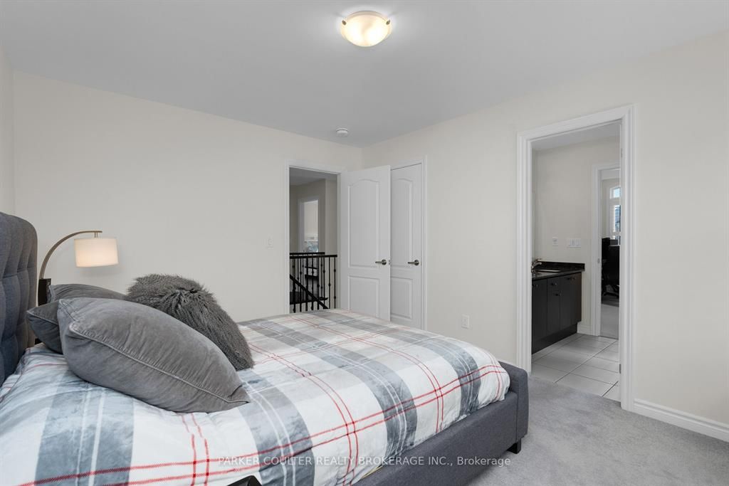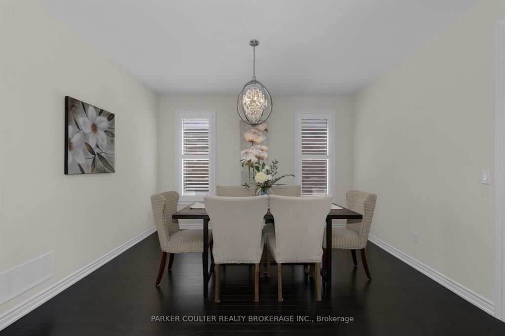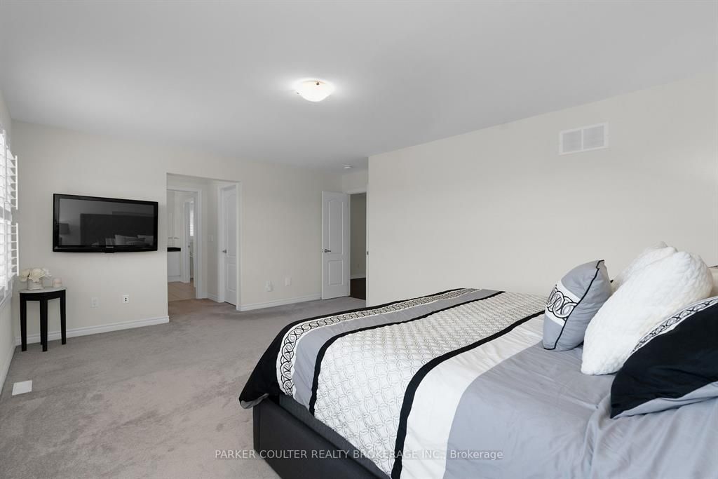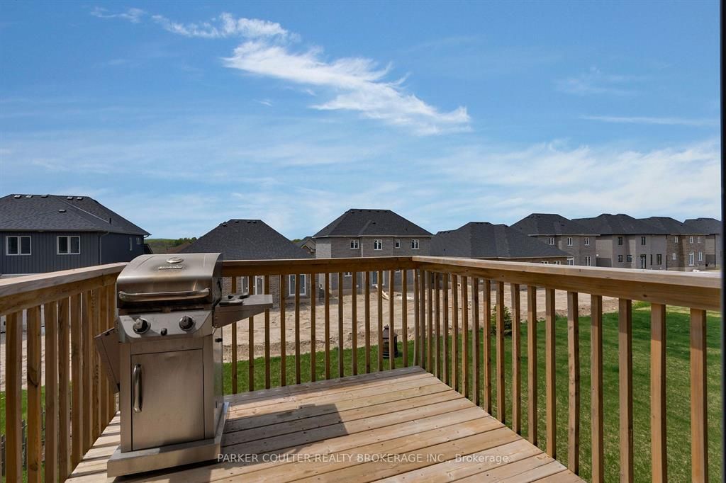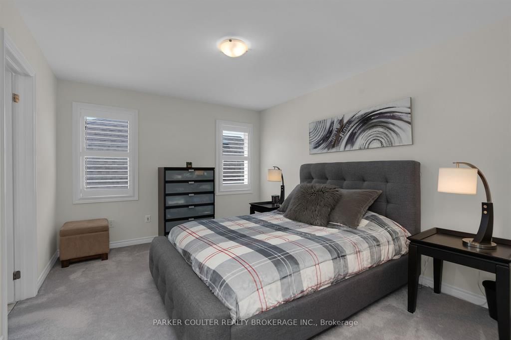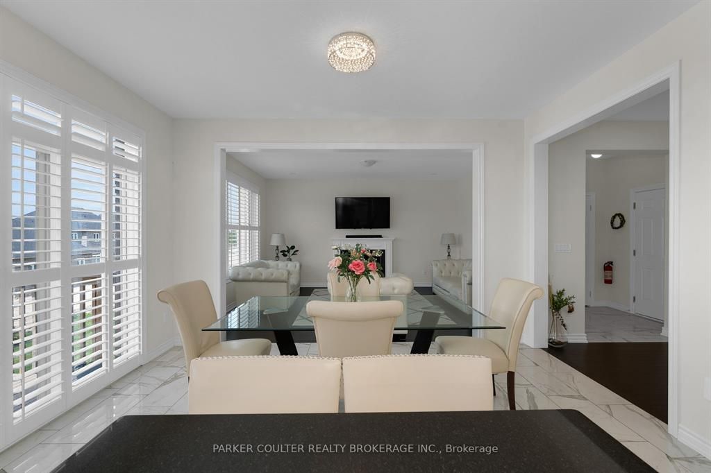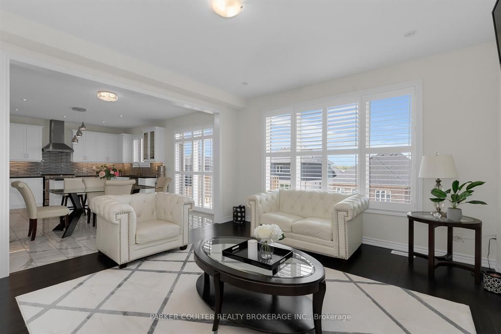 Immaculate two-storey home showcasing upgraded finishes throughout. This stunning property features upgraded light fixtures, a dual fuel gas range, samsung home hub refrigerator, interior and exterior pot lights, statutorio tile and engineered hardwood flooring, granite countertops, an undermount granite sink, and under-cabinet lighting in the kitchen. The main level is highlighted by a gas fireplace with an upgraded black marble surround, hardwired internet, 9 ft ceilings, a custom oak staircase with metal spindles, california shutters, and an oversized two-car garage complete with additional receptacles, an internet port, and a rough-in for an electric car charger. The second floor offers added convenience with a dedicated laundry room. The primary bedroom features his and her walk-in closets and a luxurious 5-piece ensuite. Additional highlights include a walkout basement with a full kitchen, a second primary bedroom with ensuite and walk-in closet, a basement laundry room, and a cold cellar. Located on orion boulevard in orillia, this home is set within a sought-after, family-friendly neighbourhood with easy access to parks, schools, shopping, and everyday amenities. Enjoy the balance of quiet residential living while being just minutes from lake simcoe, downtown orillia, and major commuter routes.