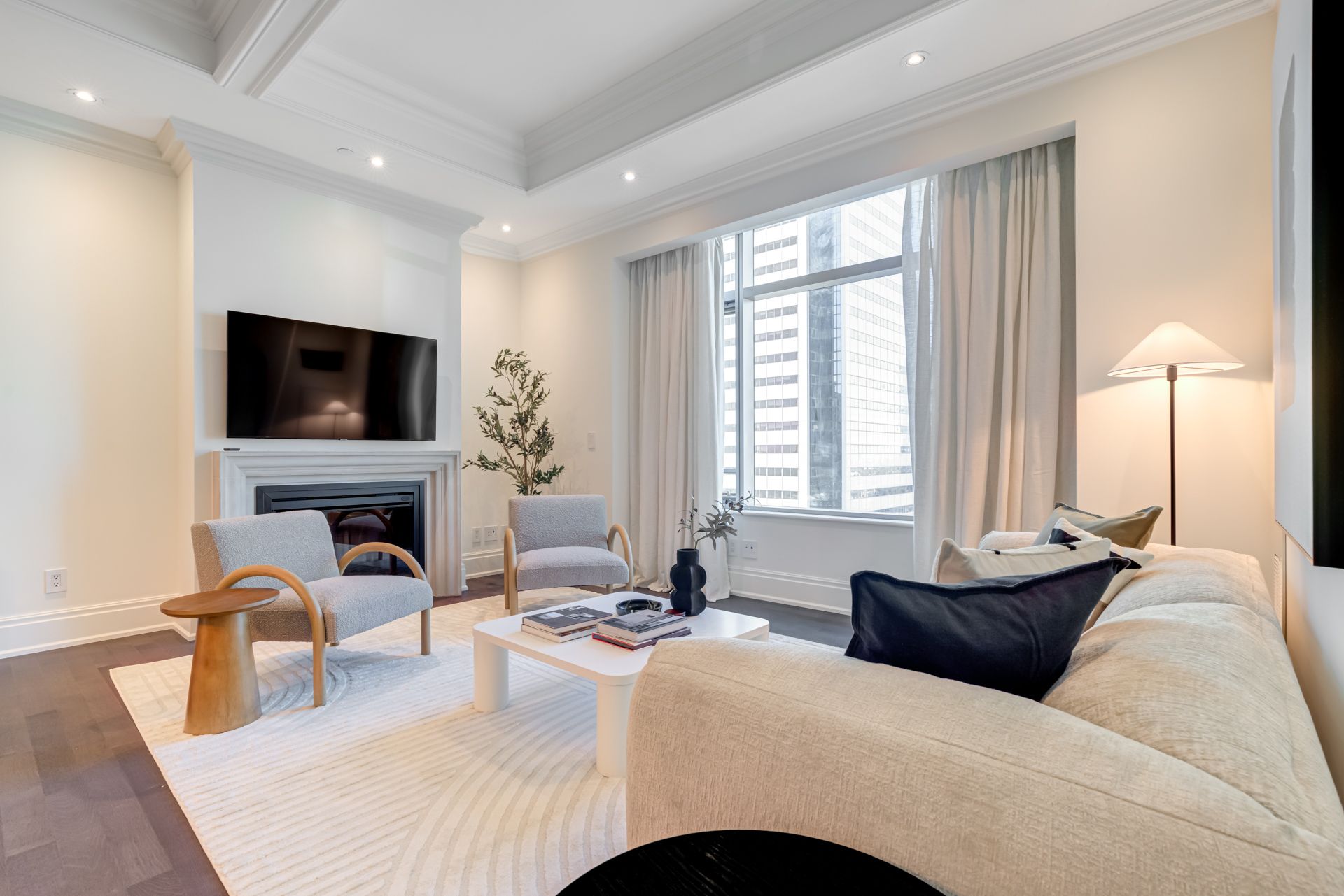 Exquisite, newly furnished by professional design team 2 bed, 2 bath at the luxurious st regis residences. Settle in & enjoy breathtaking unobstructed west facing city views from the 36th floor. One of the best floor plans in the building. Furnished & designed w/ neutral and classic finishes incl 10. 5 ft coffered ceilings, detailed trim work, miele appliances, custom cabinetry, fireplace & more. Enjoy this exclusive lifestyle with world class amenities and service at your fingertips. Parking is valet - for additional $477 plus hst/ month. In the heart of downtown - steps to toronto's harbourfront, bloor street - yorkville shopping, c. N. Tower, rogers centre & scotiabank arena. Steps to the p. A. T. H. Connection into the financial district, eaton centre & union station.